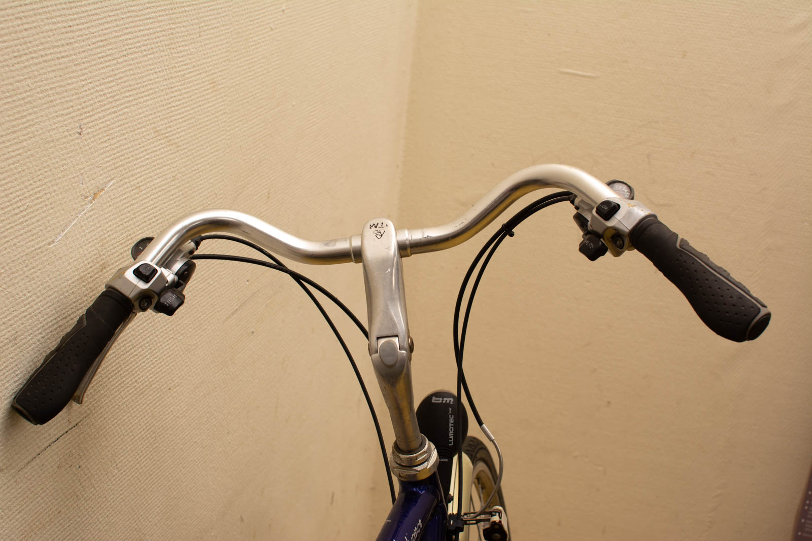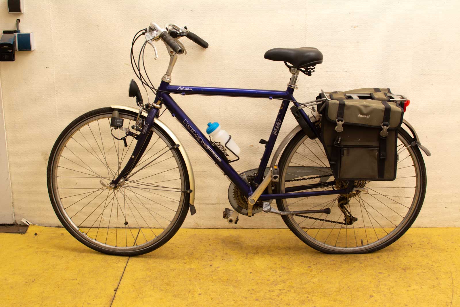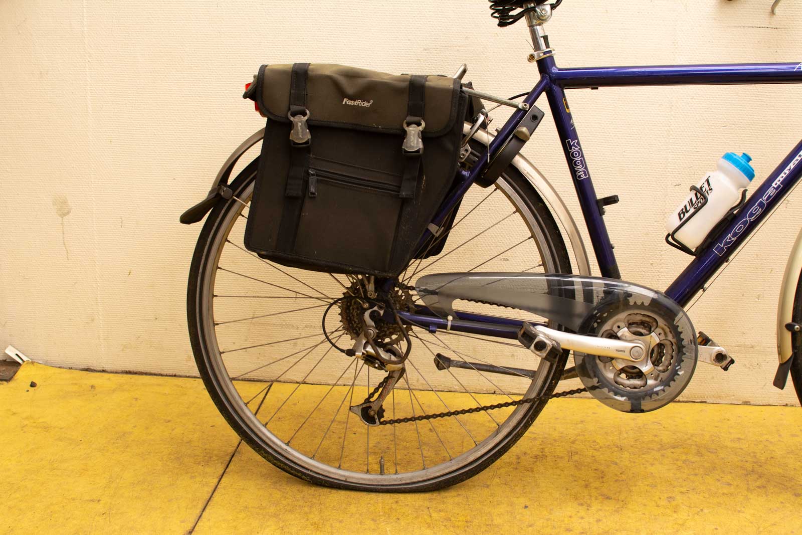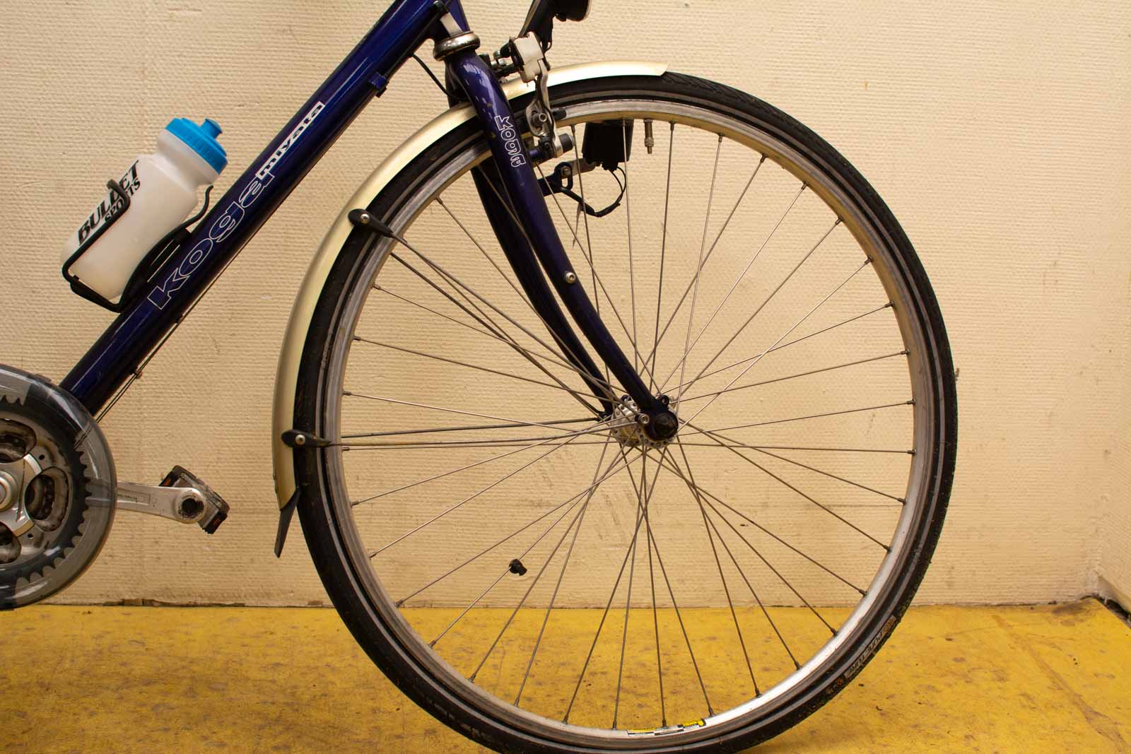kleur paars/blauw de fiets moet even nagekeken worden heeft een fiets slot met sleutel hoog van de grond tot de zadel 93 cm van wiel tot wiel gemeten 175