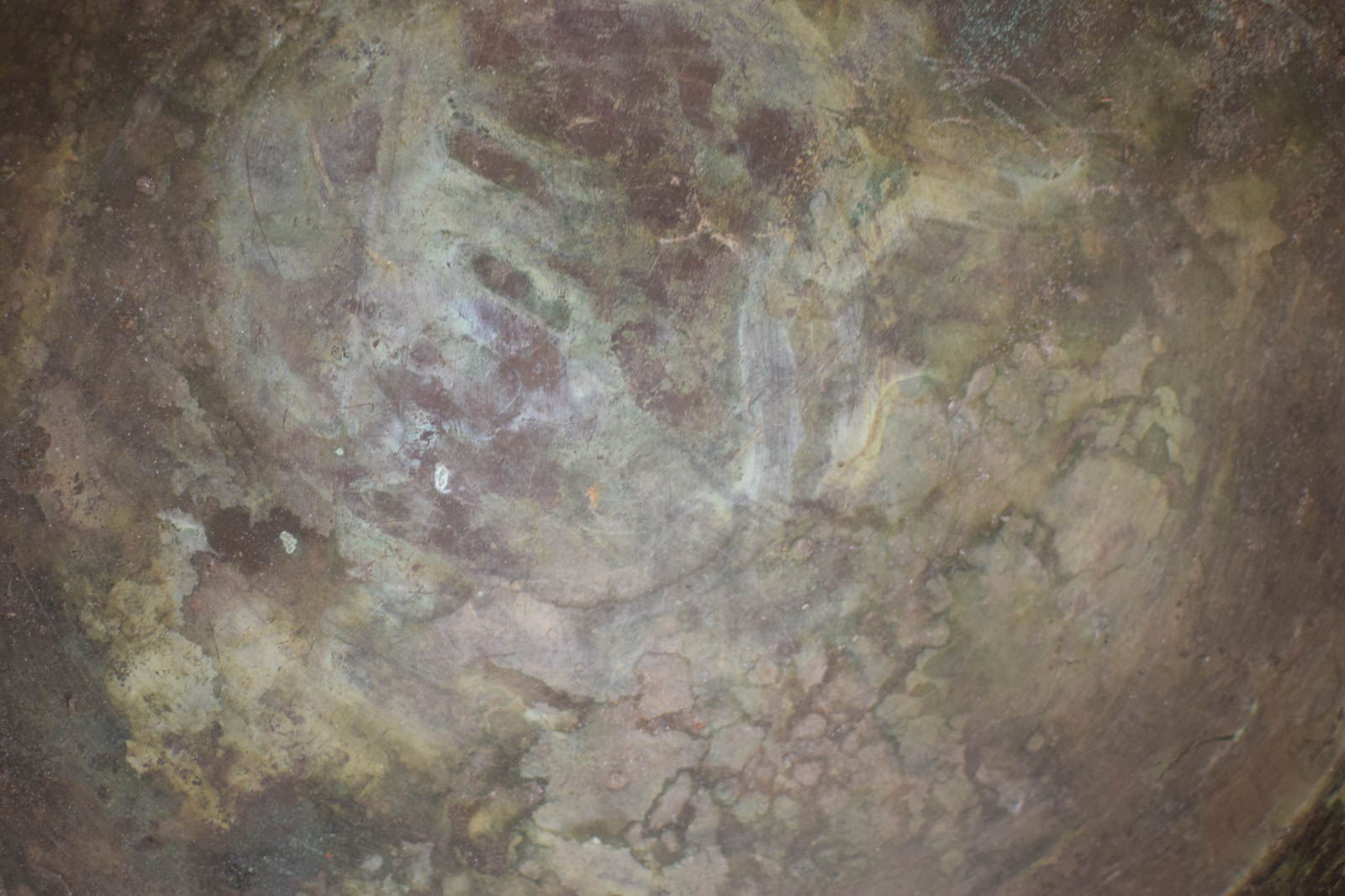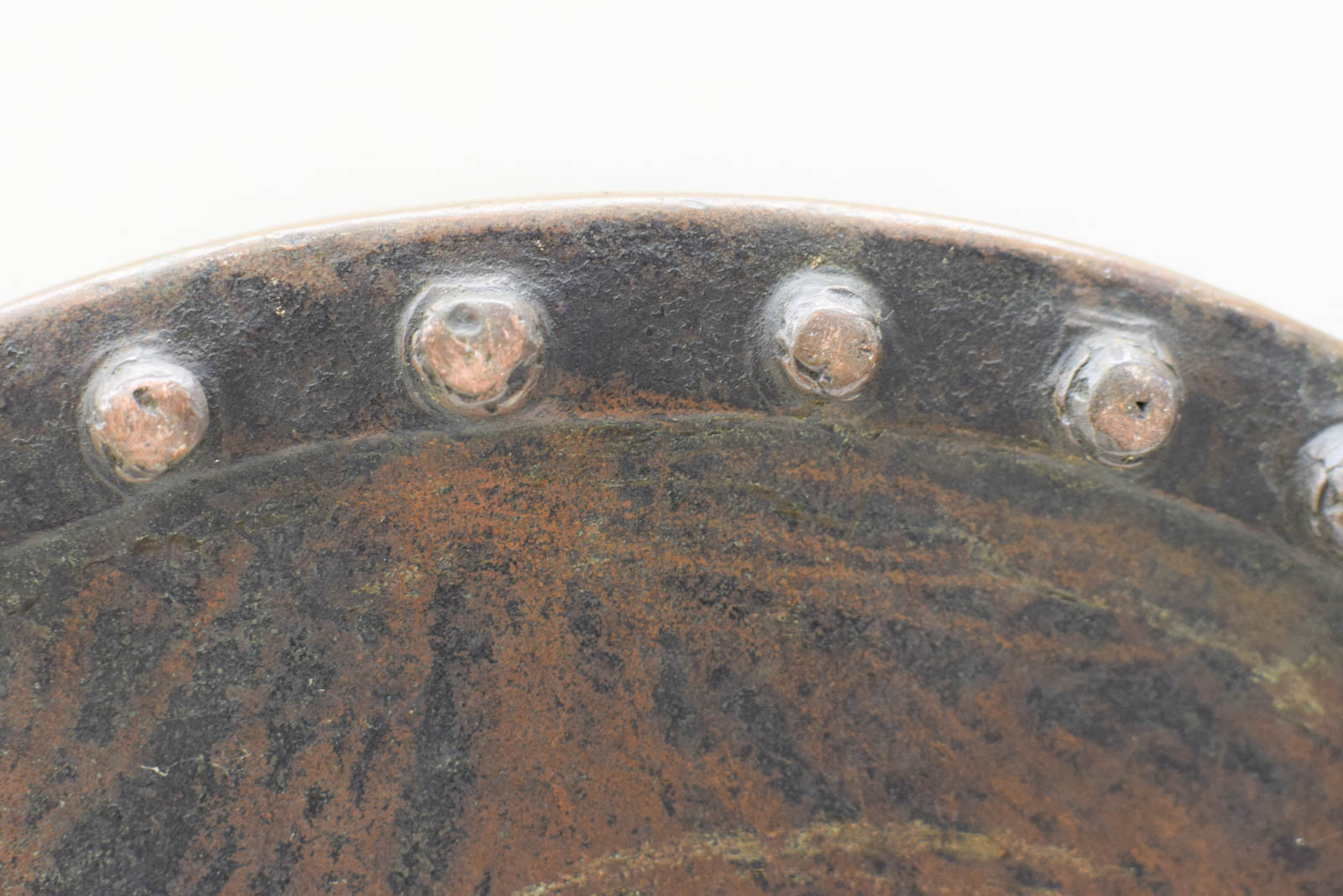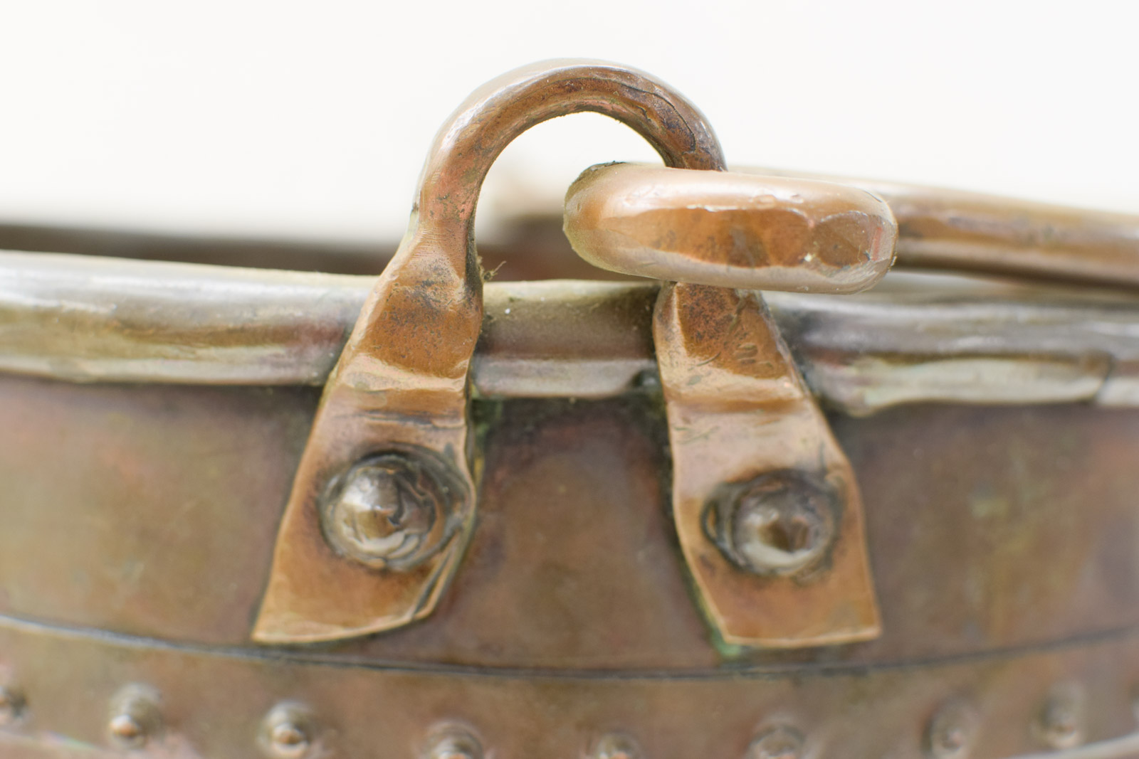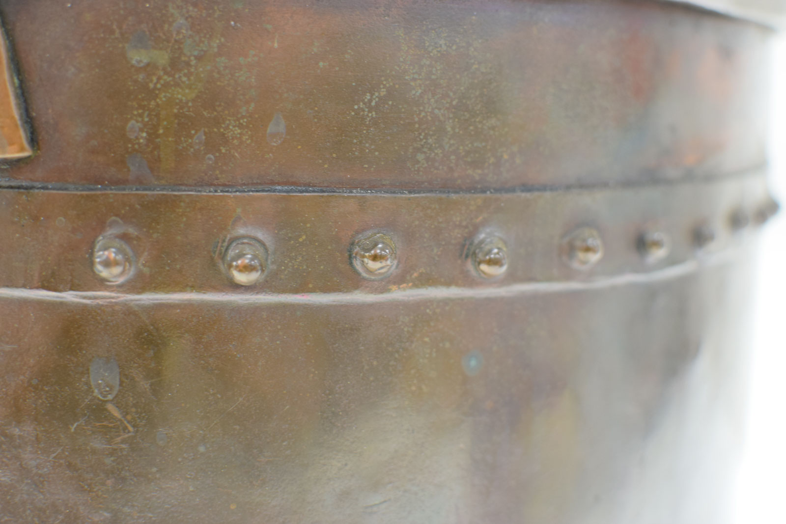 heeft popnagels de hak is gebruikt en heeft gebruikssporen en groene aanslag diameter bovenkant opening 36 cm hoogte gemeten zonder hendel 24cm