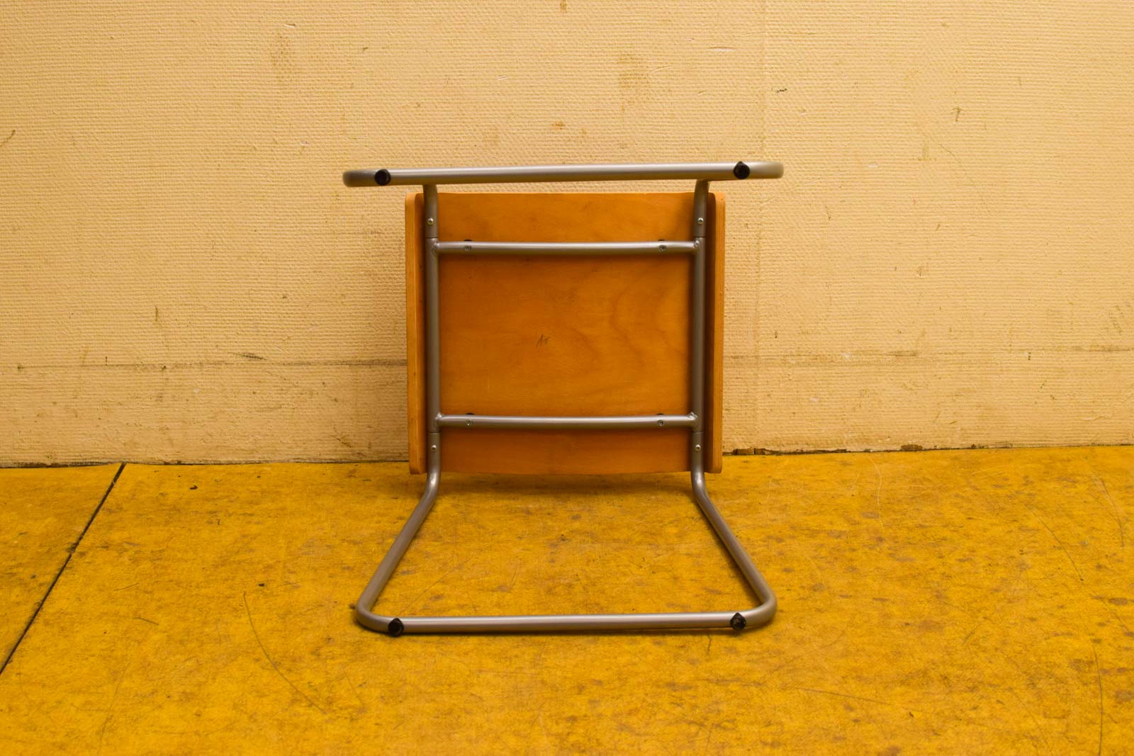 De combinatie van hout en metaal past goed in een industriële, vintage of minimalistisch ingerichte ruimte. Een praktisch tweedehandsmeubel dat nog jaren goed dienst kan doen.