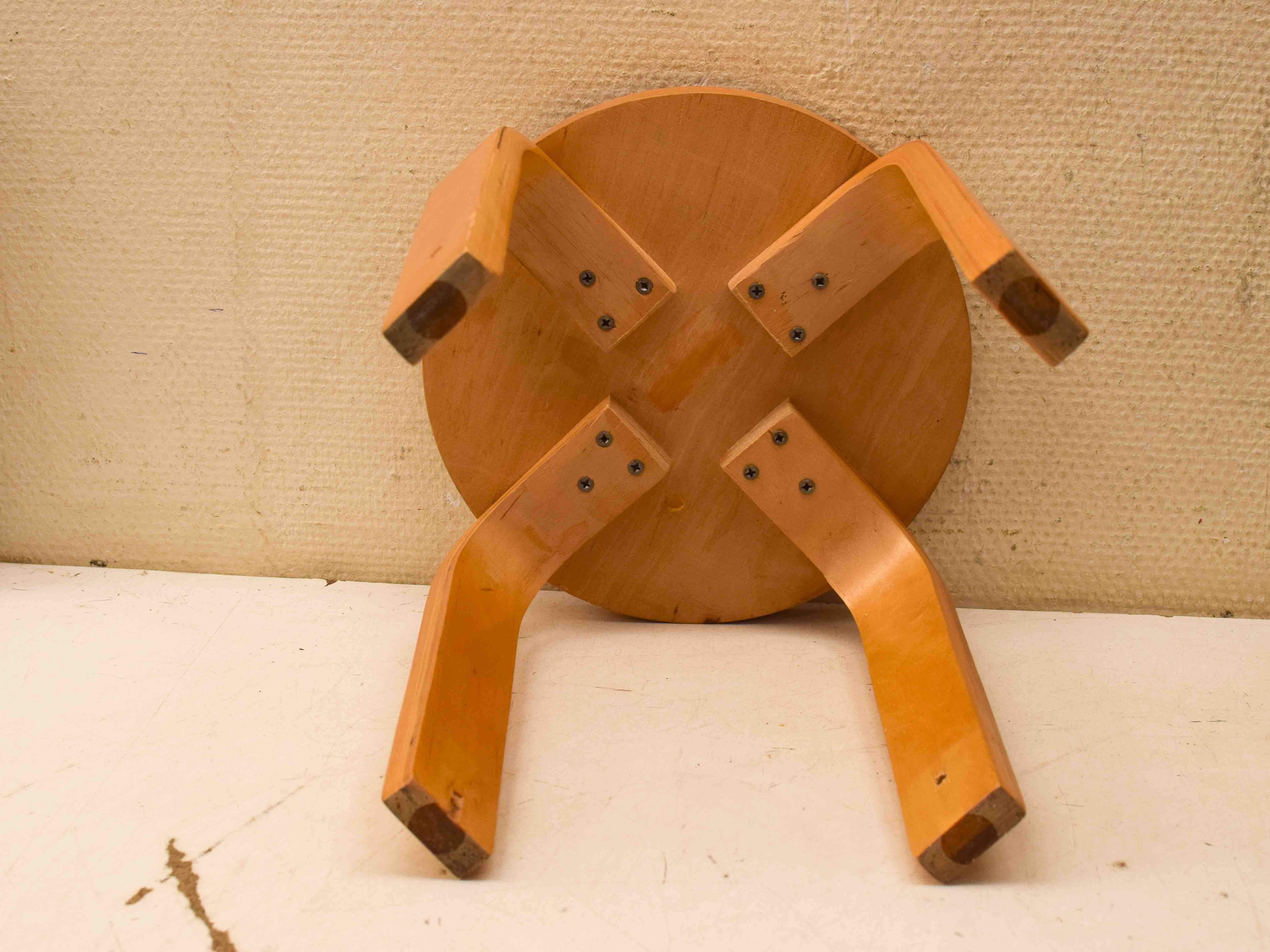 heeft aan de rand een beschadiging verder ziet het krukje er nog goed uit diameter bovenkant blad 25 cm hoog 29,5 cm