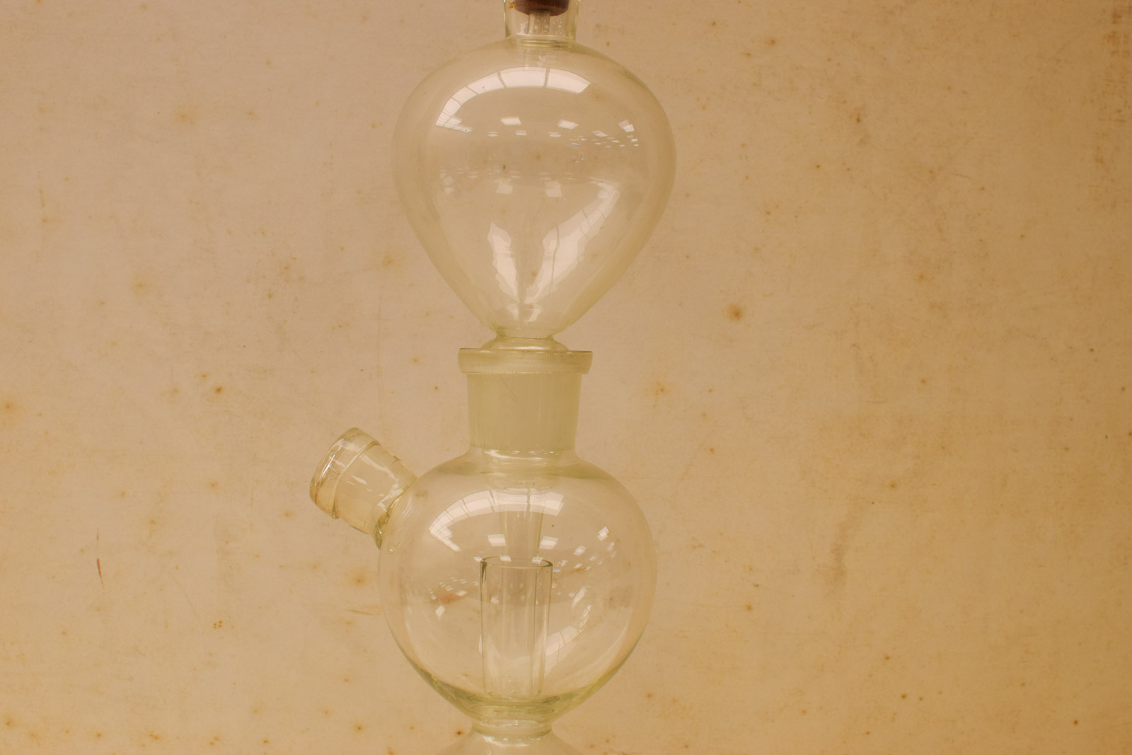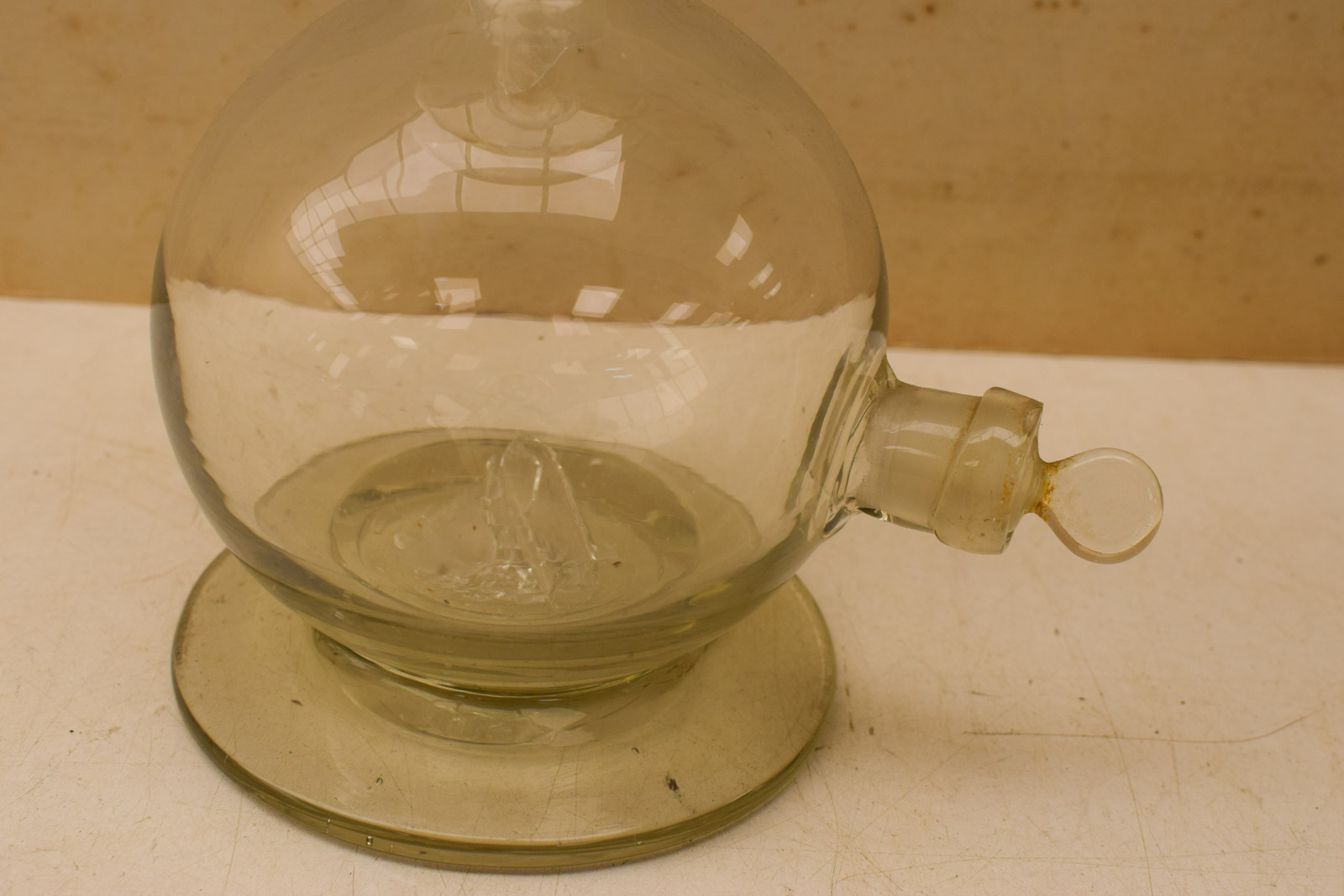 het glas heeft een beschadiging is een stukje glas onderin de bol hoog 59,5 cm met de post eigen risico