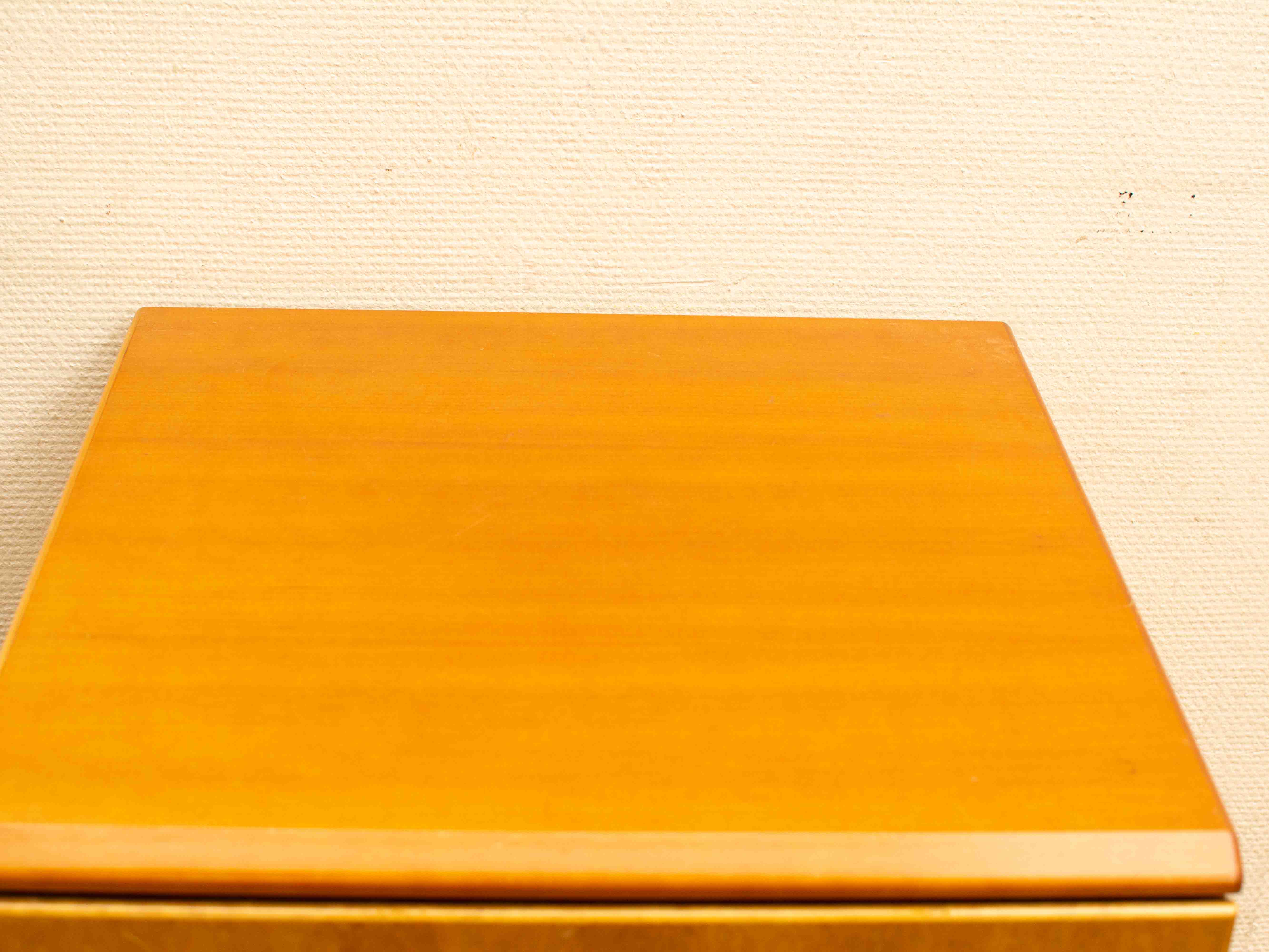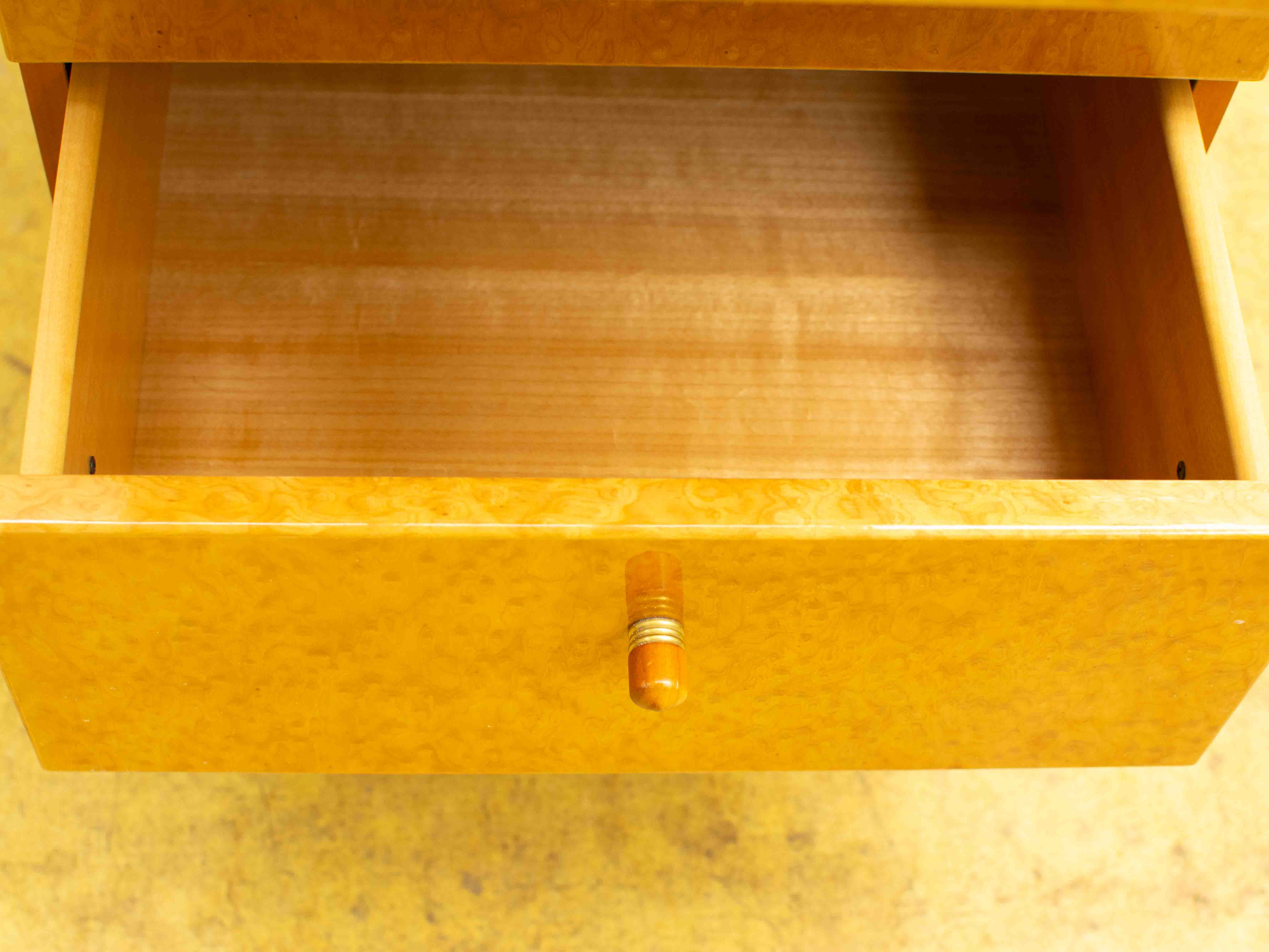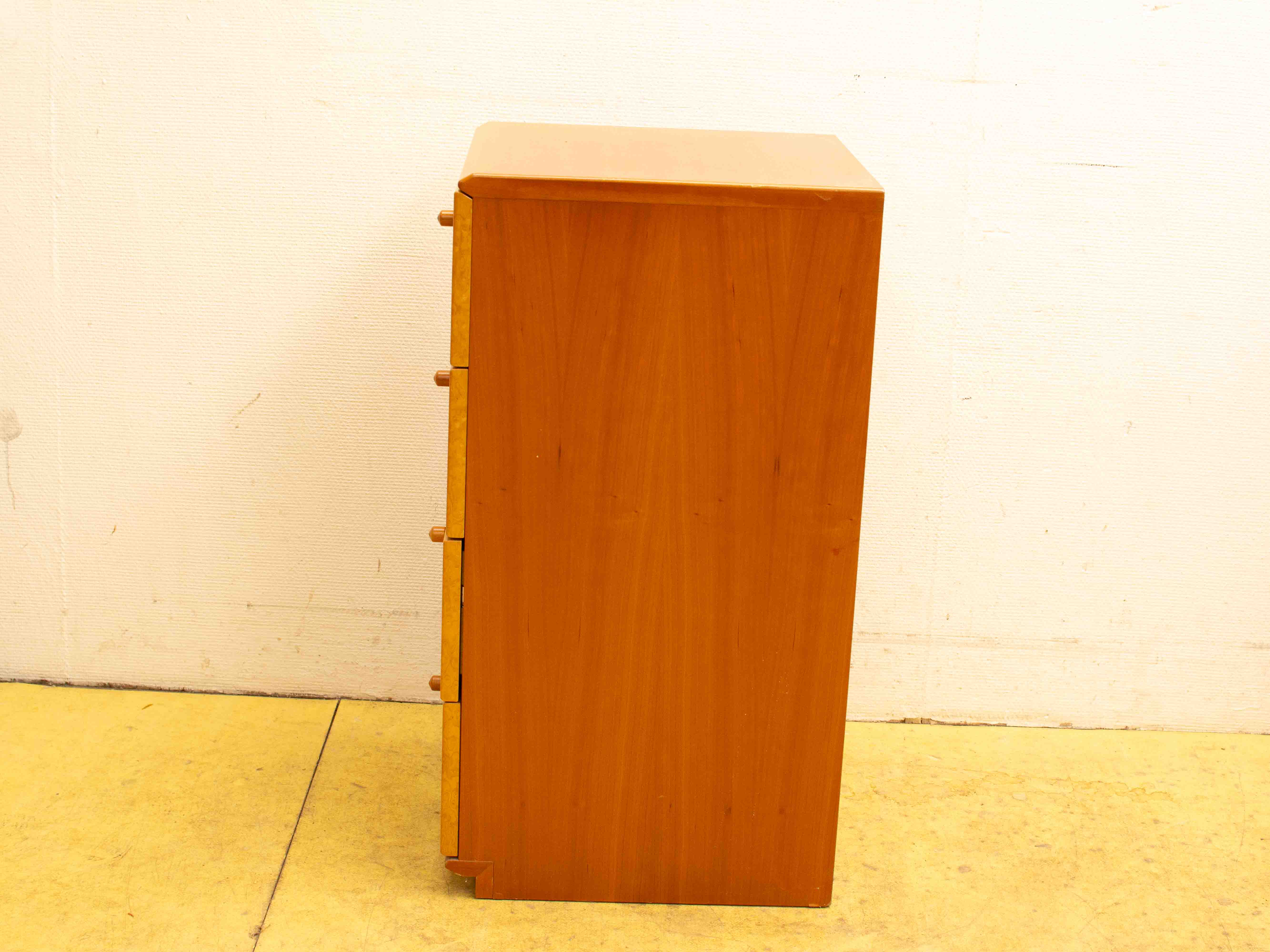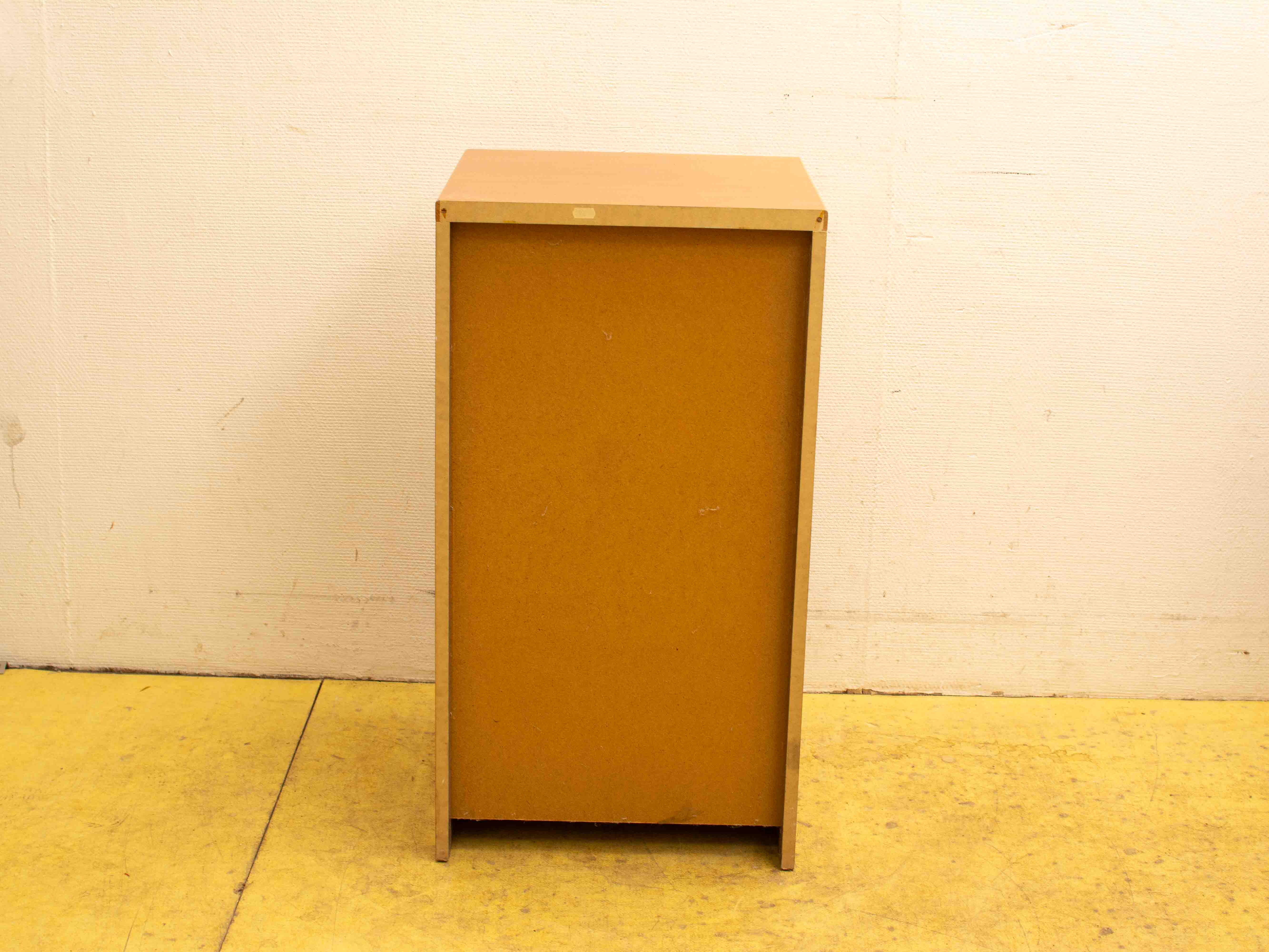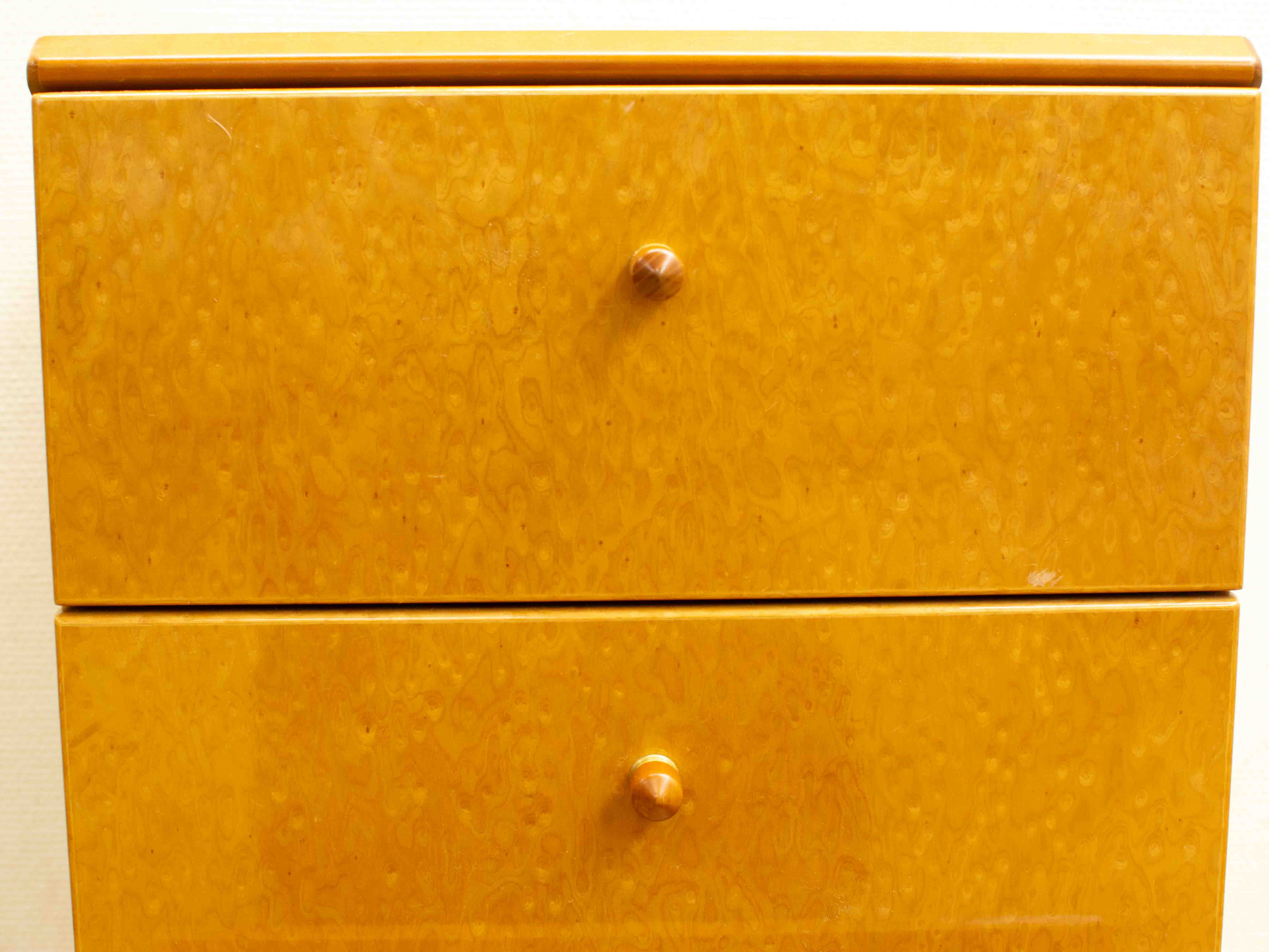 aan 1 zijkant van de ladenkast is verkleuring de kast heeft een glimmende voorkant