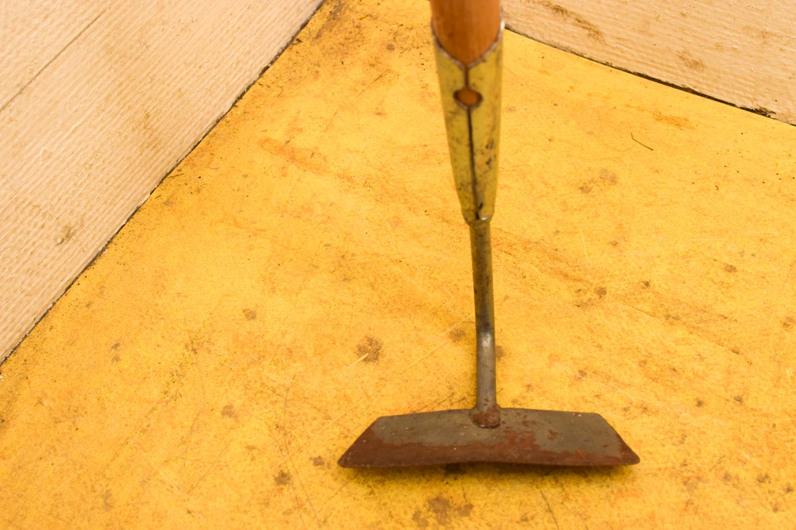 de schoffel is gebruikt en heeft roest