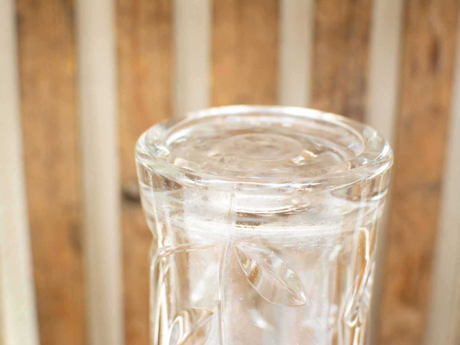 de vaas heeft een motiefje van van takken met blad diameter bovenkant 14 cm