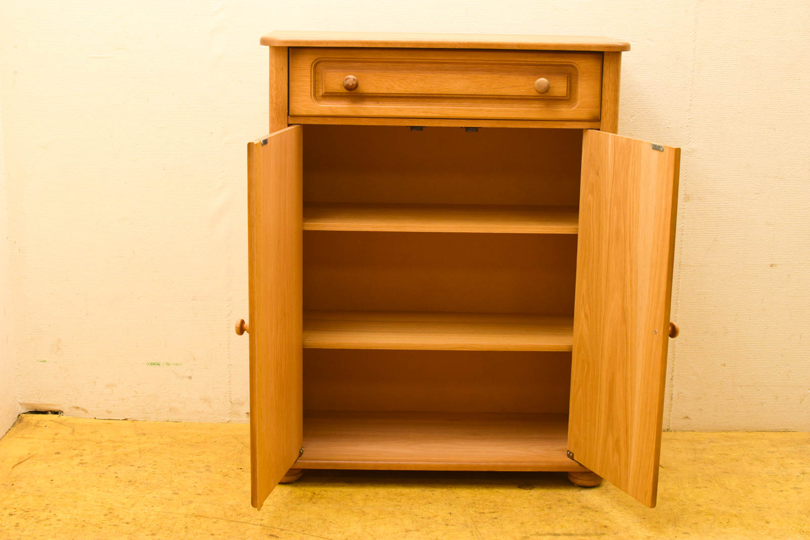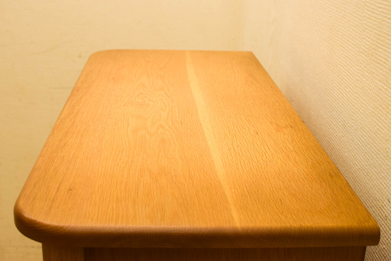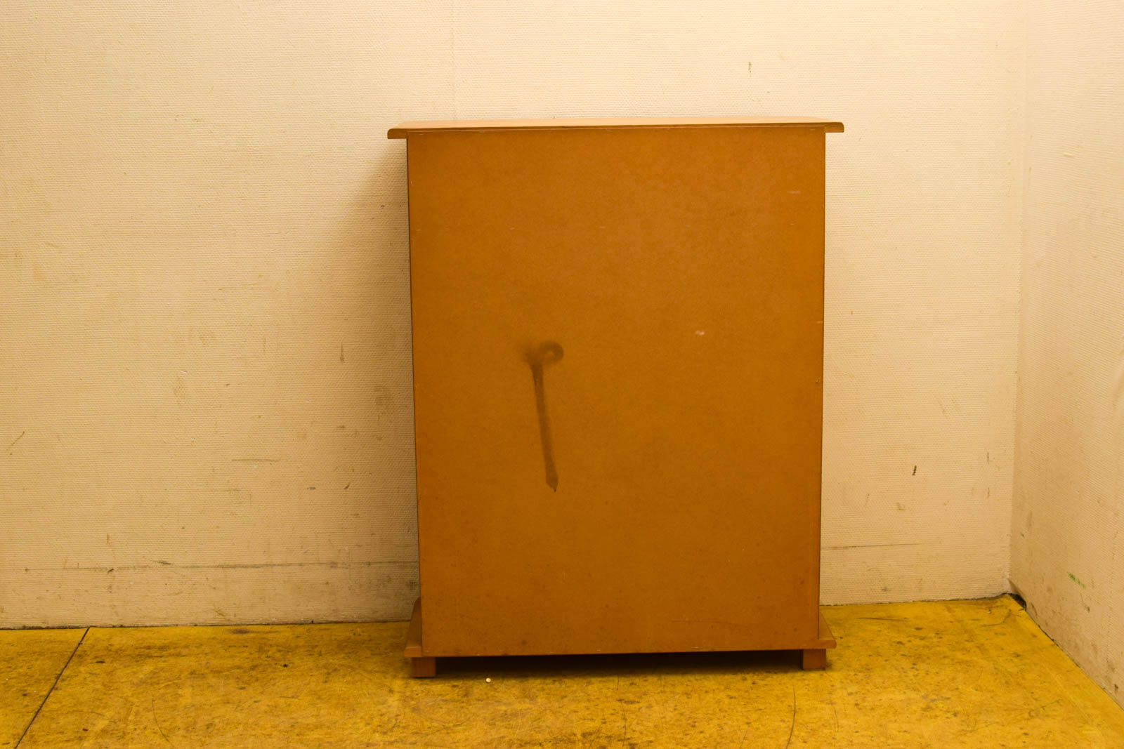de kast heeft lichte gebruikssporen en de bovenblad heeft een streep en verkleuring