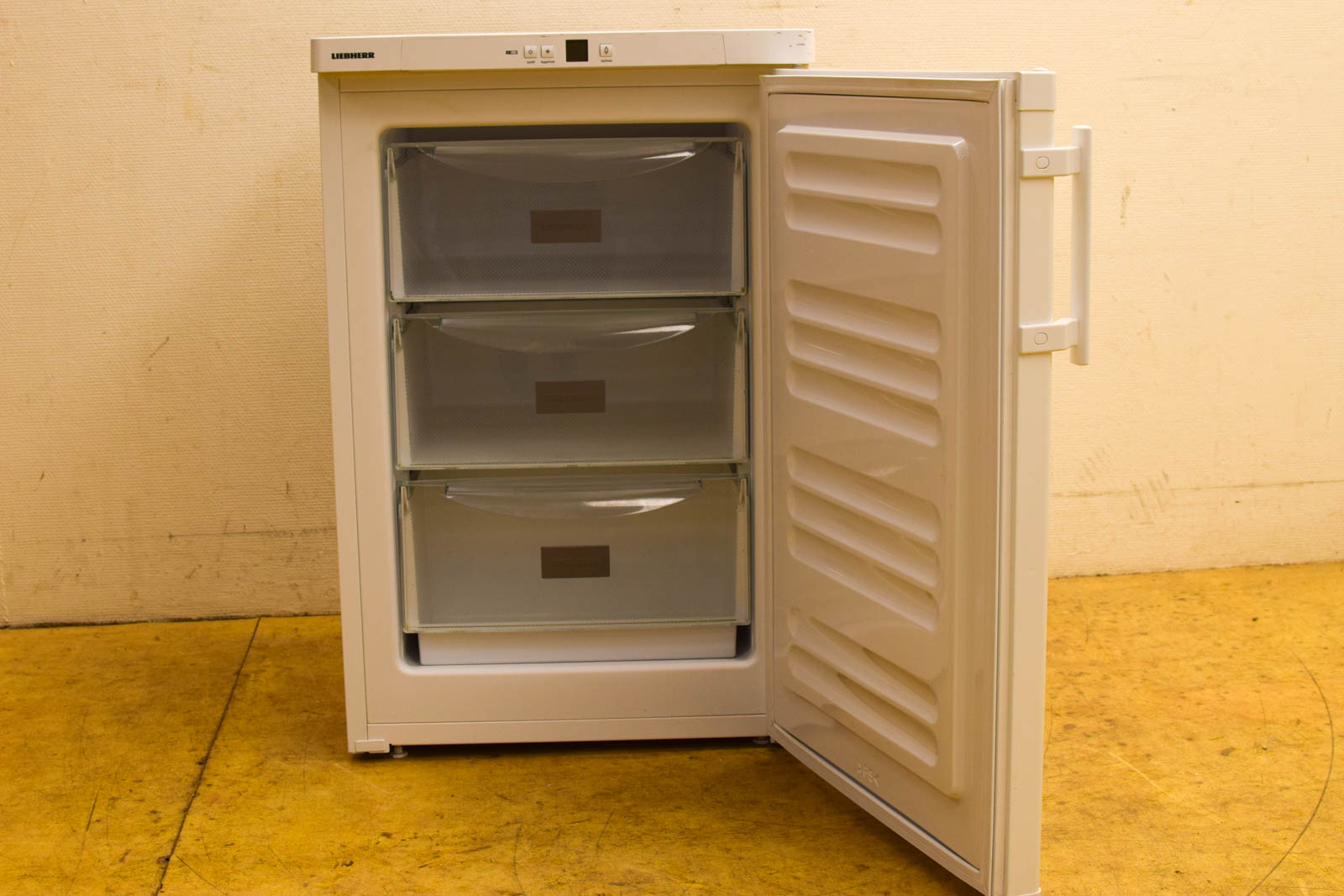 de vriezer heeft gebruiksporen , 1 voetje ontbreekt , 1 plastic bak heeft een beschadeging