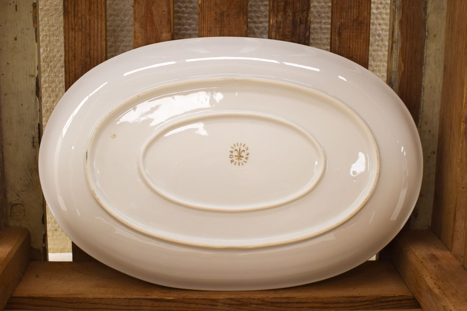 de binnenkant van de schaal heeft een lichtgroene kleur de buitenkant wit heeft lichte krasjes maar is nog heel