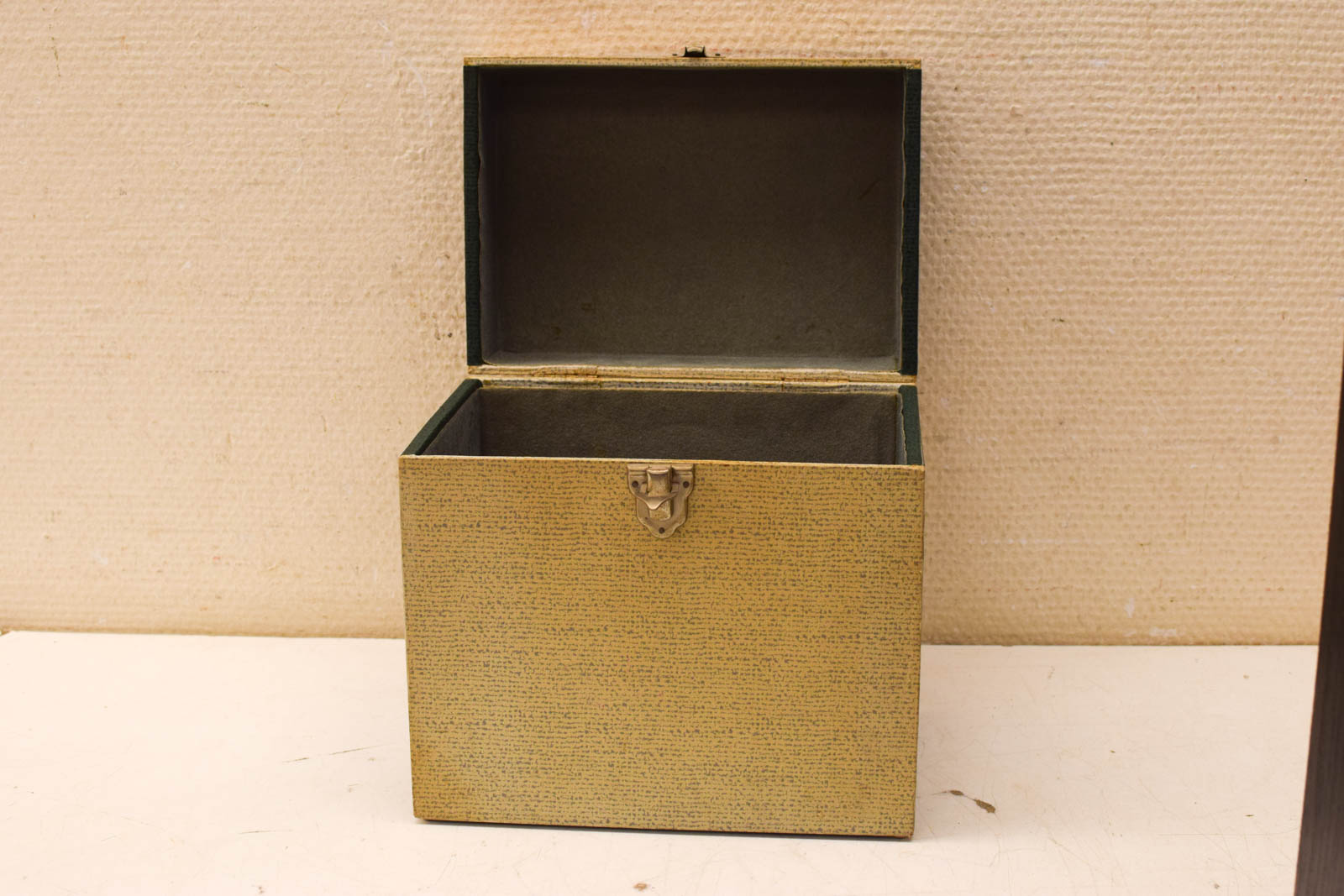 de koffer is verkleurd breed 20,5 cm diepte 14,5 cm hoog 21 cm