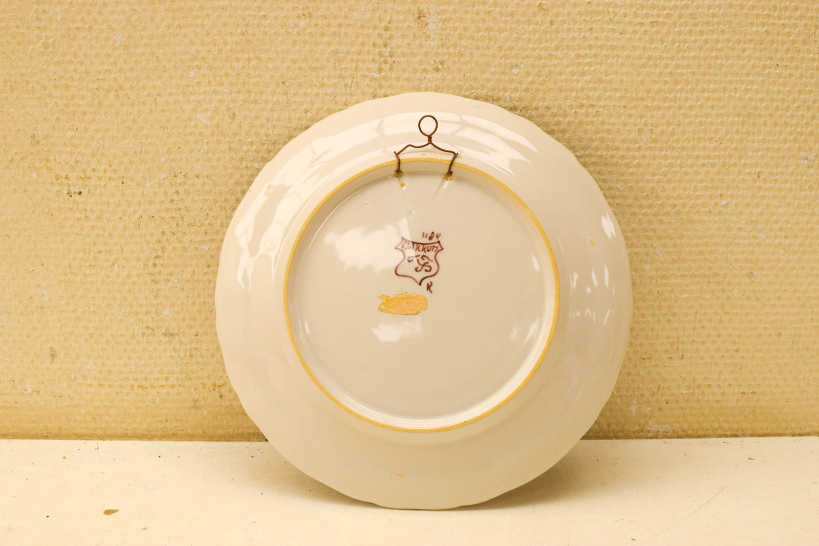 Het bord is heel en in redelijke staat. Je ziet enkele gebruikssporen op het oppervlak, wat je van een tweedehands stuk mag verwachten, maar niets wat afbreuk doet aan het geheel. Het heeft zijn originele ophang-ijzertje aan de achterkant.