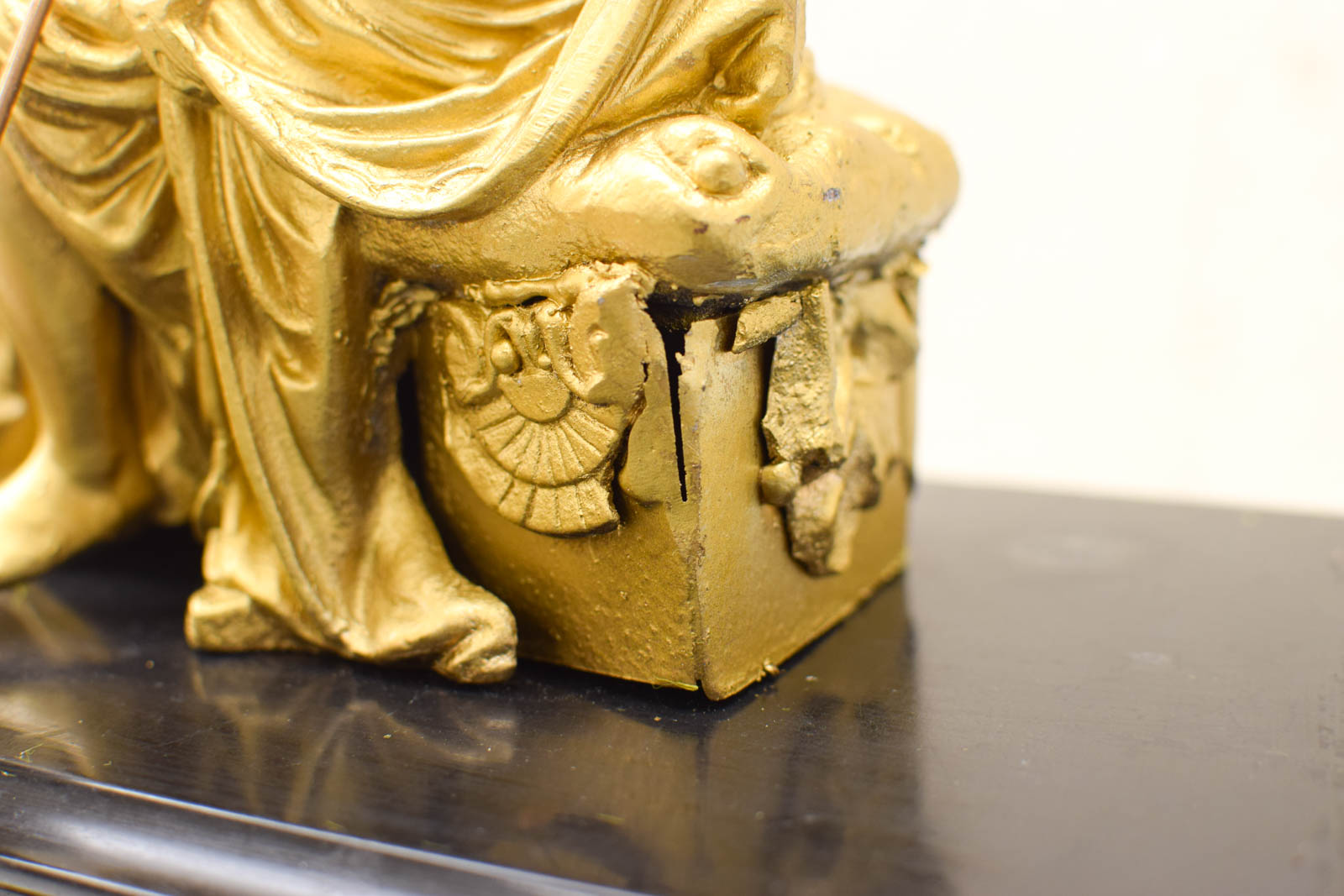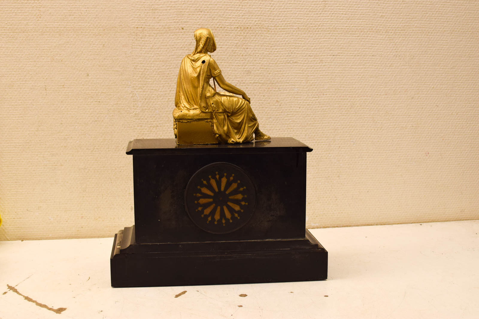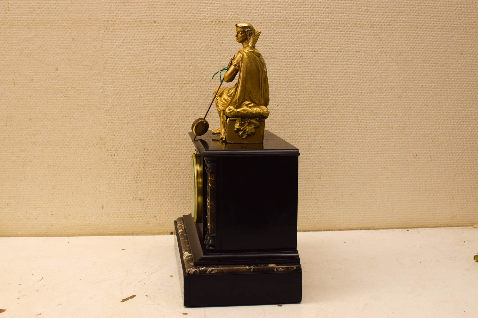 de klok loopt is een slinger bij geen sleutel de buitenkant van de schouwklok heeft een beschadiging zie foto breed 35,5 cm