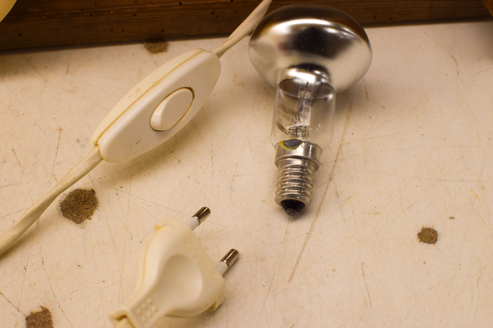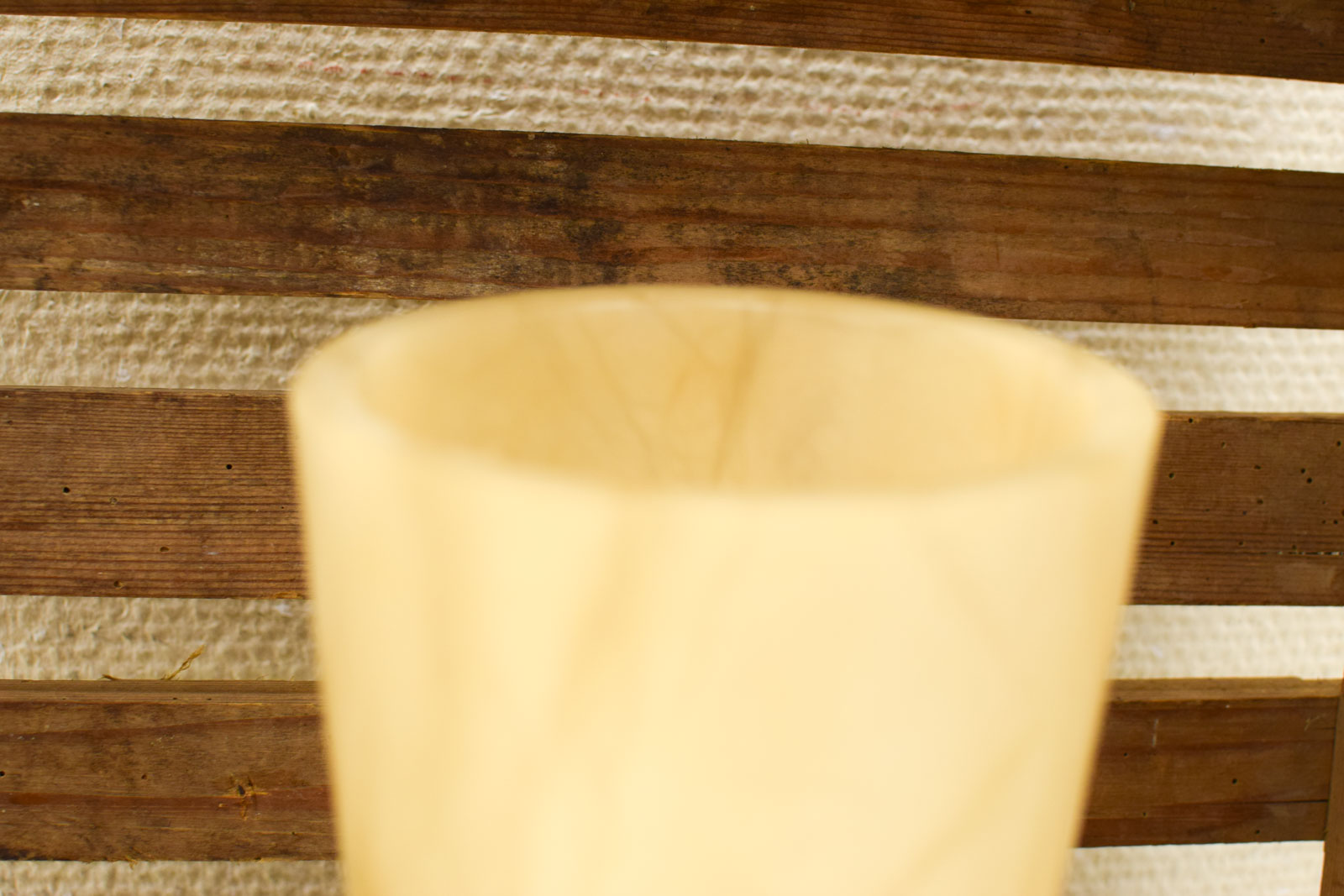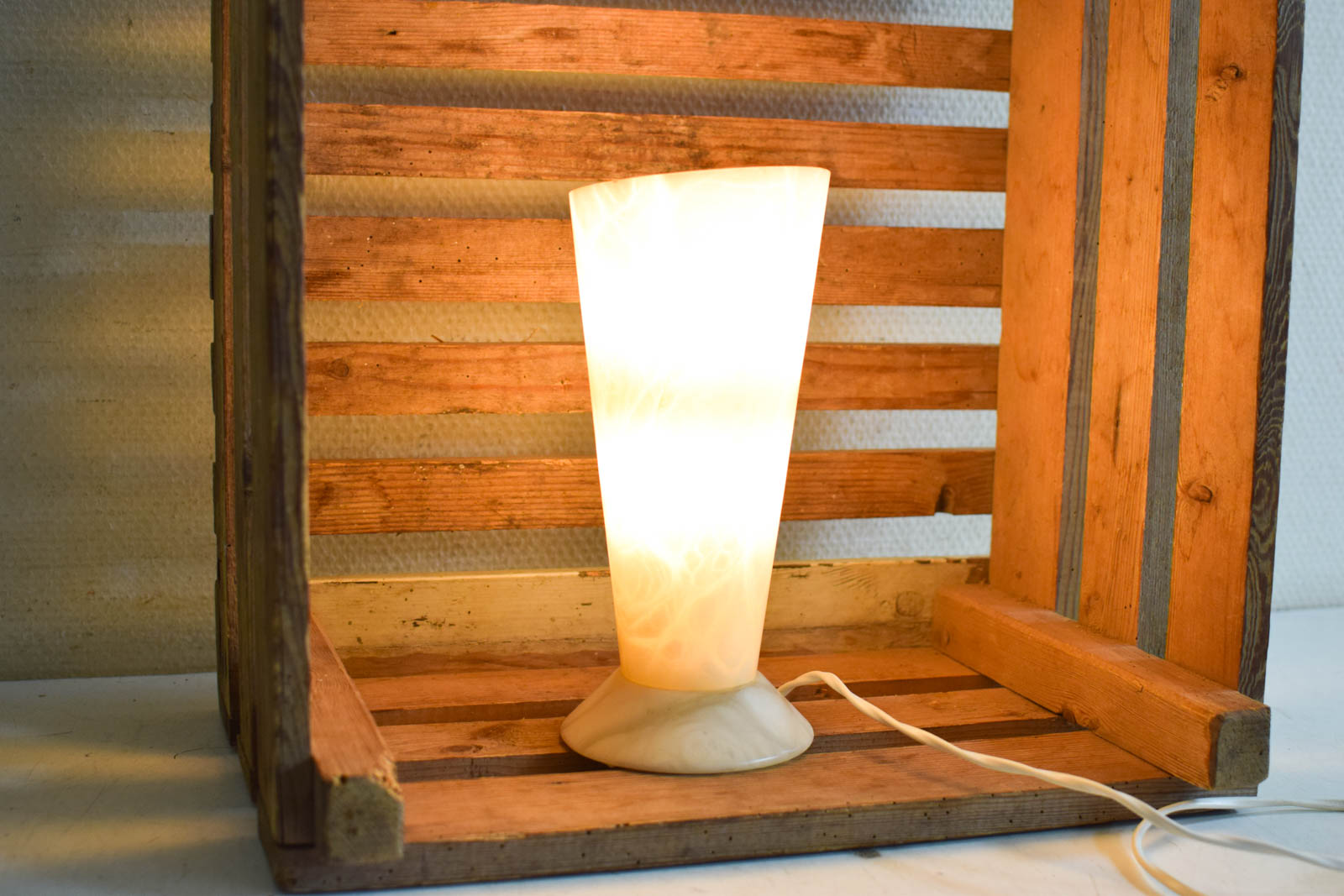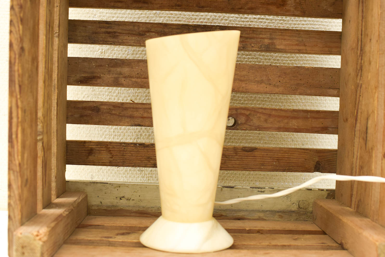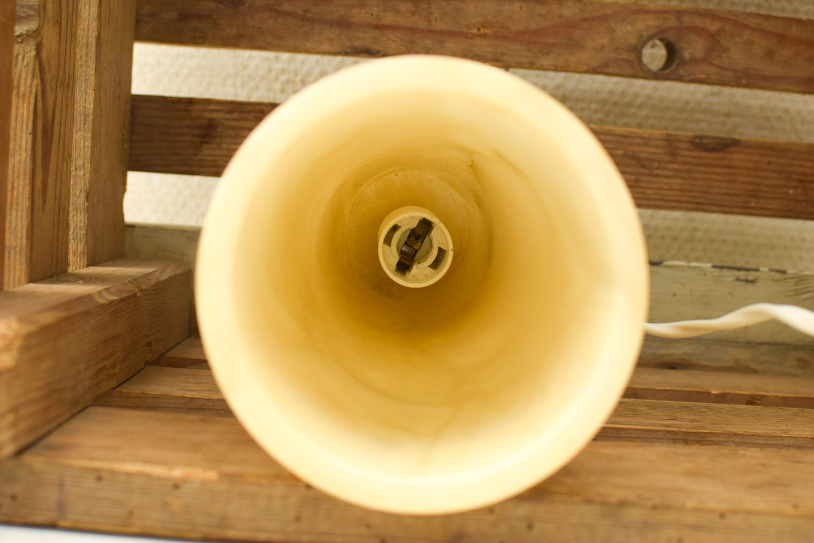 de bovenkant loopt wat schuin af lamp is nog heel maar lijkt wat verkleurd