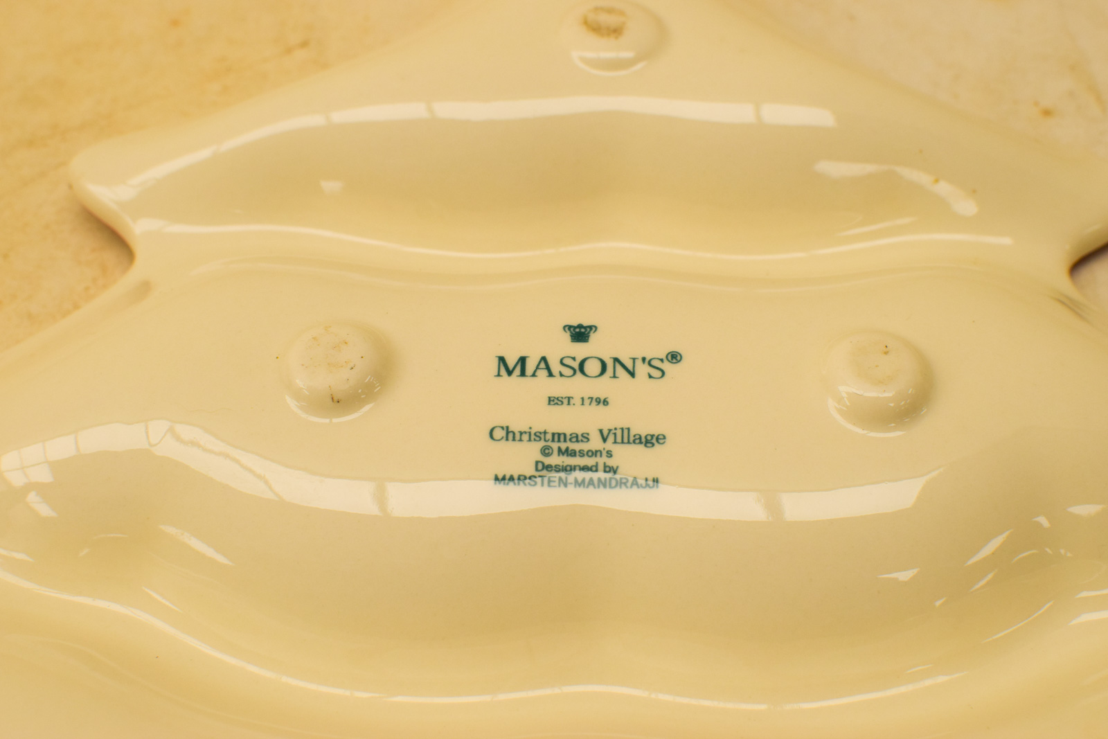 Deze schaal ziet er nog redelijk uit, maar vertoont enkele gebruikssporen die passen bij de leeftijd van het stuk. Ideaal voor wie kerstdecoratie met functie zoekt of een mooie toevoeging wil aan een Masons-collectie.