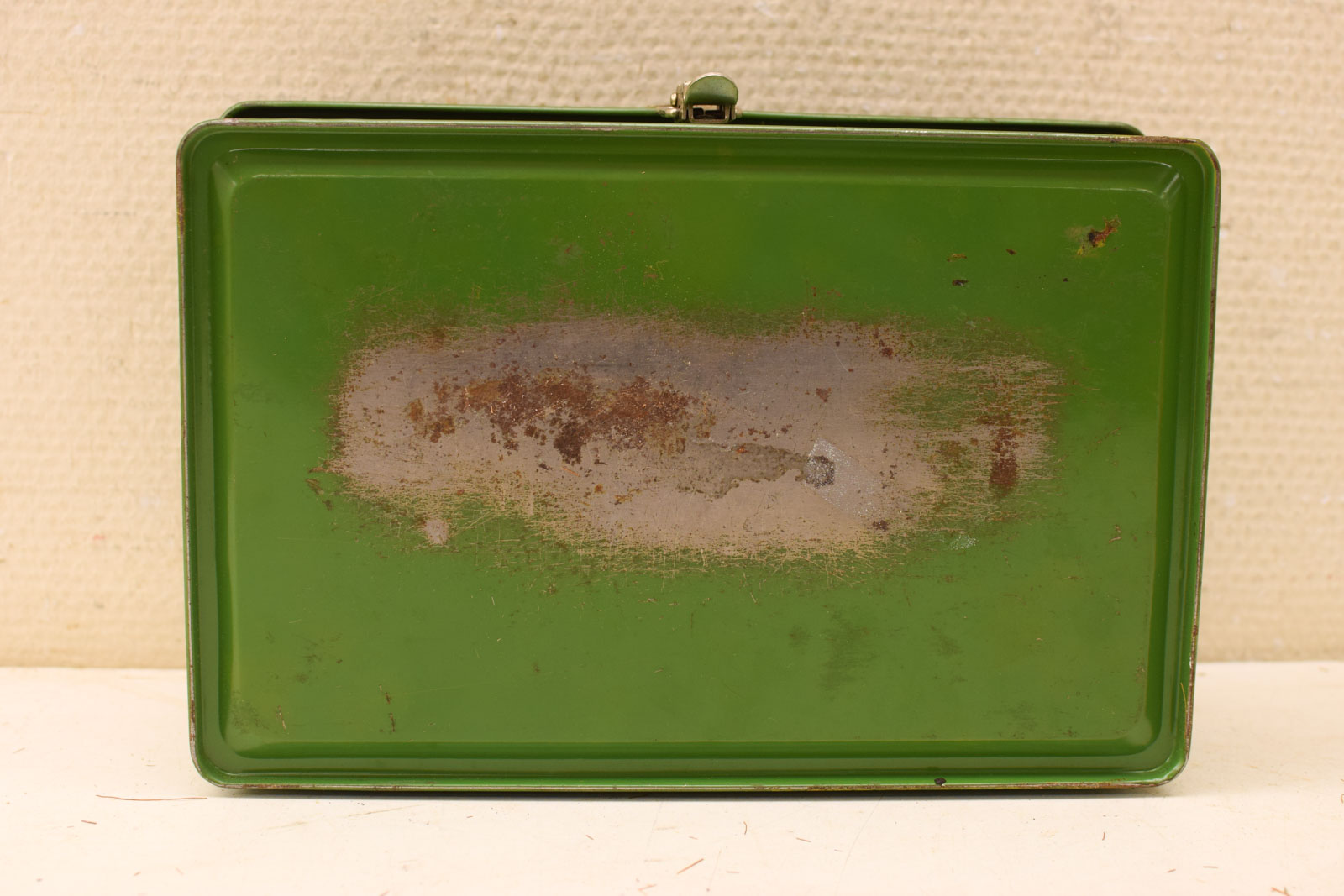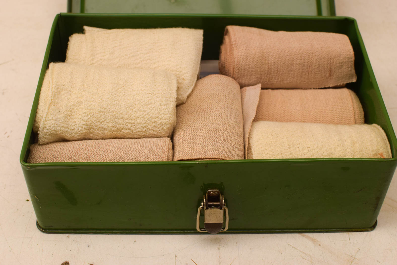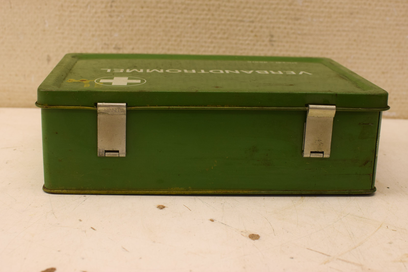 er is nog verband in maar is gebruikt de verbandtrommel heeft roest en gebruikssporen