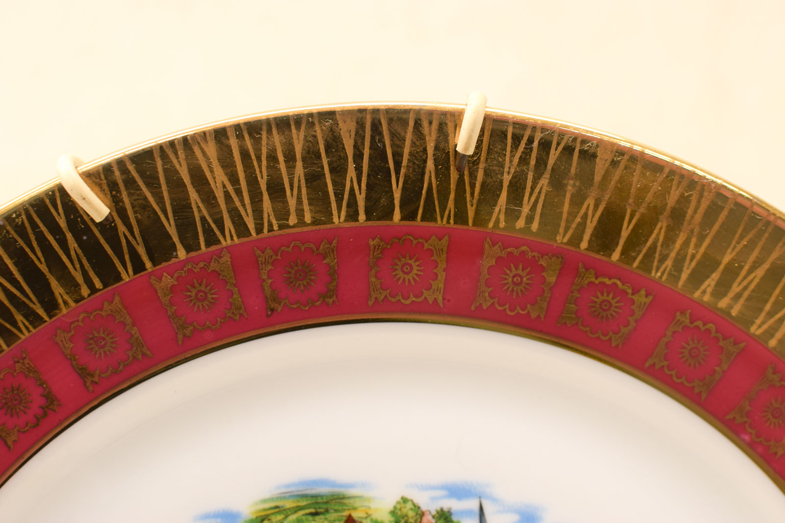 het bord heeft lichte krasjes maar is nog heel en ziet er verder nog redelijk uit diameter van het bord 26,5 cm