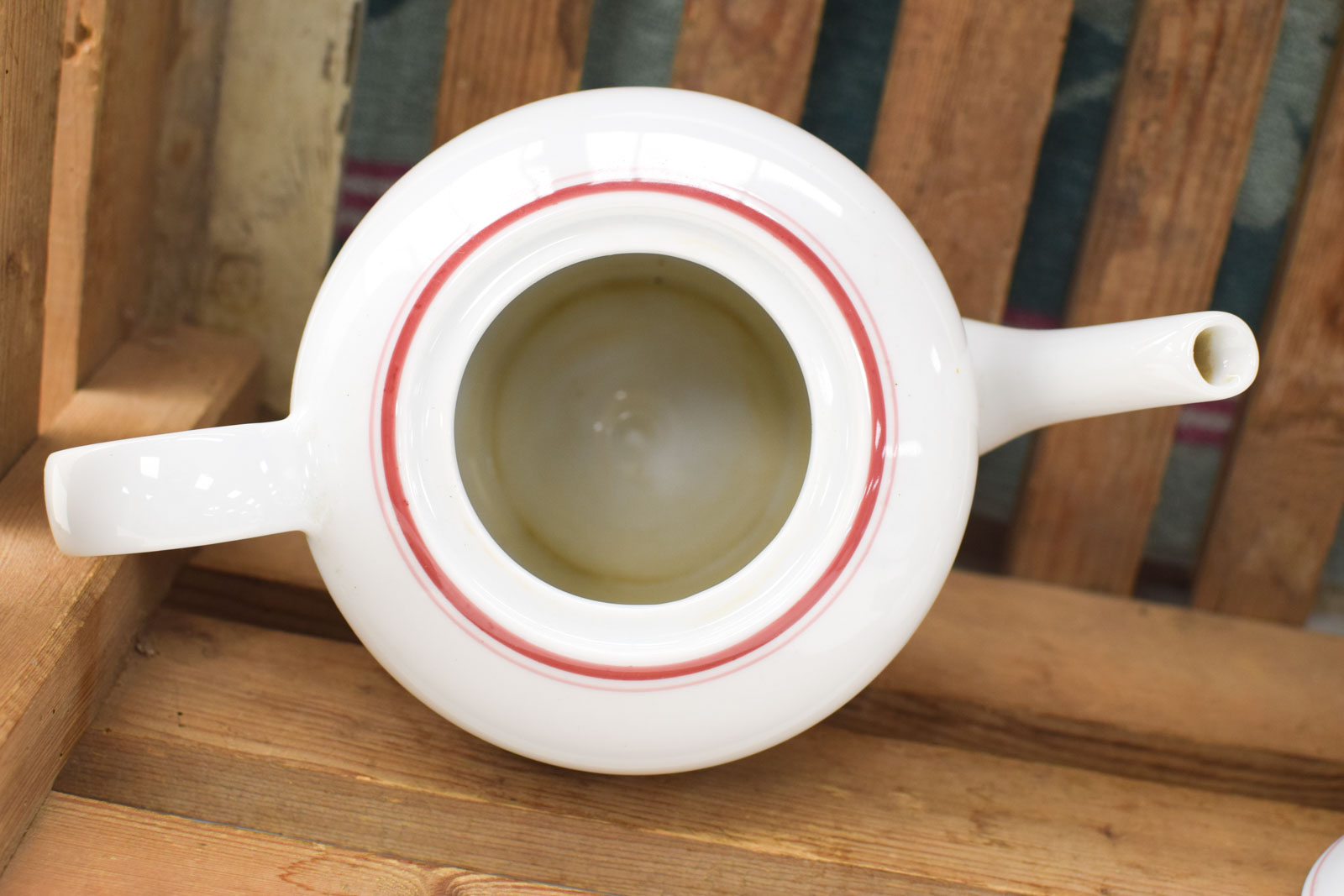 de theepot heeft bruine aanslag aan de binnenkant gemeten van oor tot tuit 23,5 cm gemeten zonder deksel hoog 12,5 cm