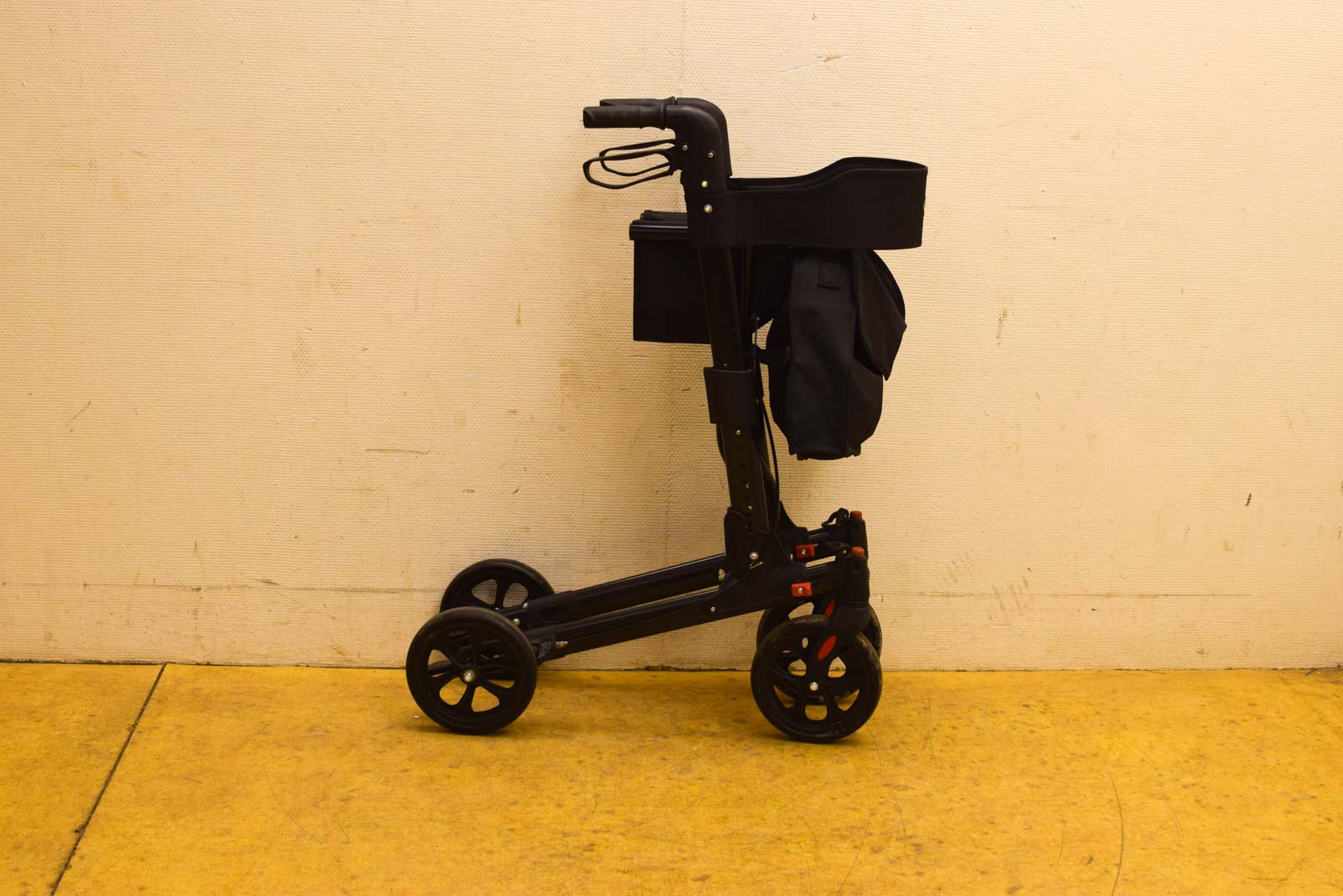 de handvaten zijn in hoogte verstelbaar de achterwielen gemeten breed 60 cm de remmen moeten nagekeken worden