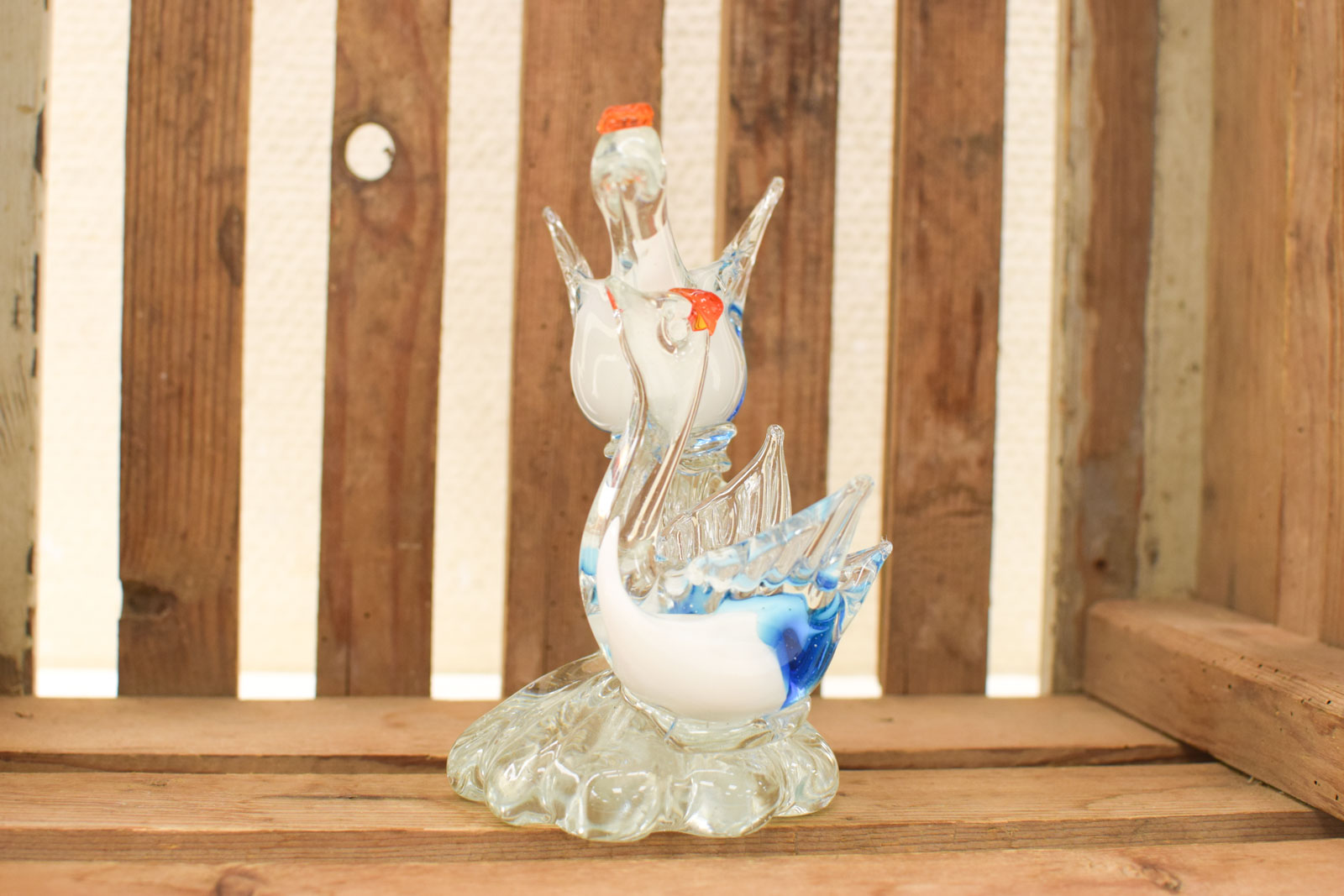 de bovenste vogel gemeten breed 15 cm helemaal gemeten hoog 14 cm het glas is heel