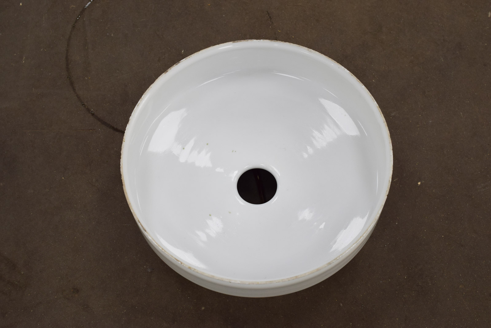 met bovenstuk zie foto diameter bovenkant opening 18 cm diameter onderkant opening 40 cm hoog 19 cm heeft vlekjes aan de binnenkant