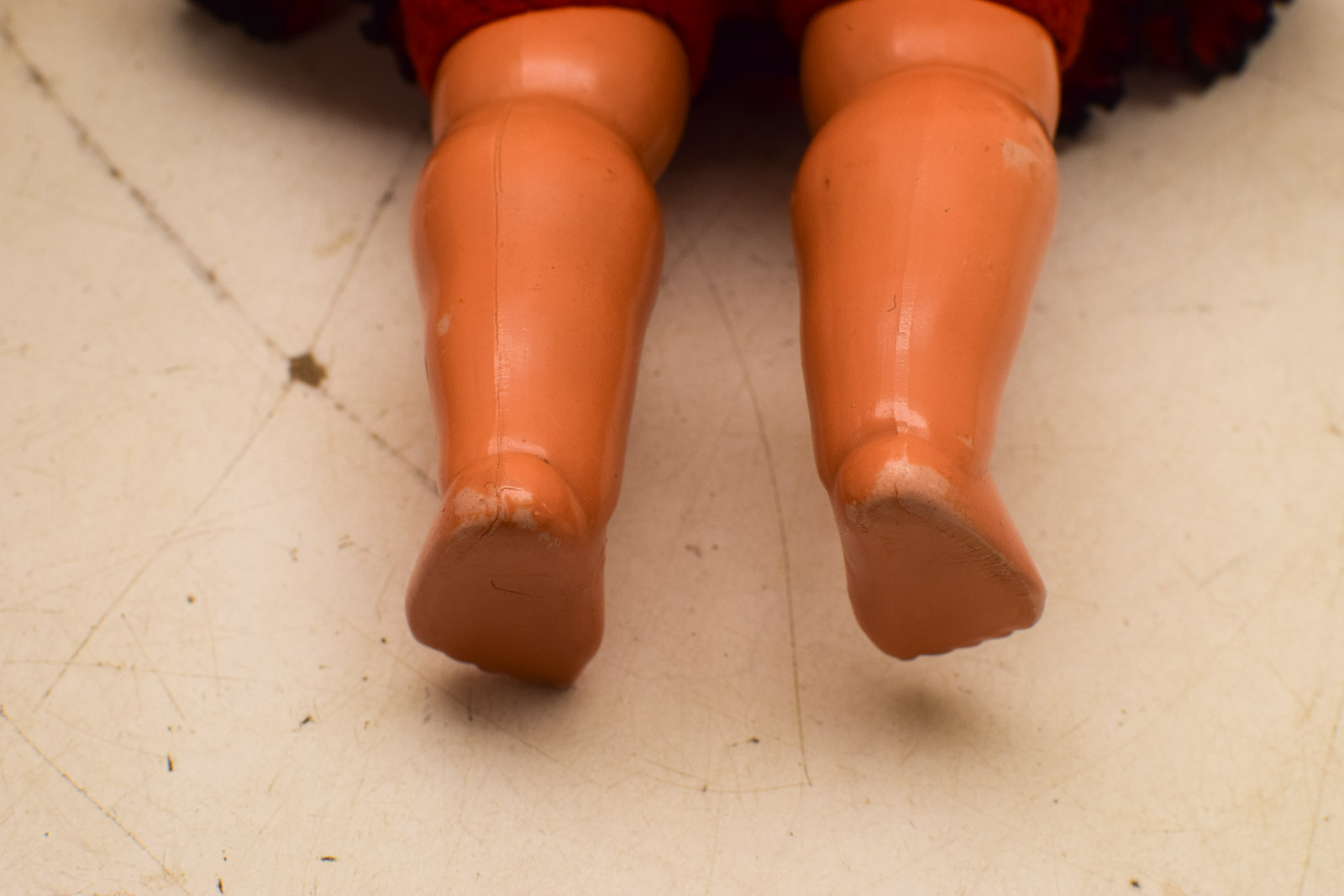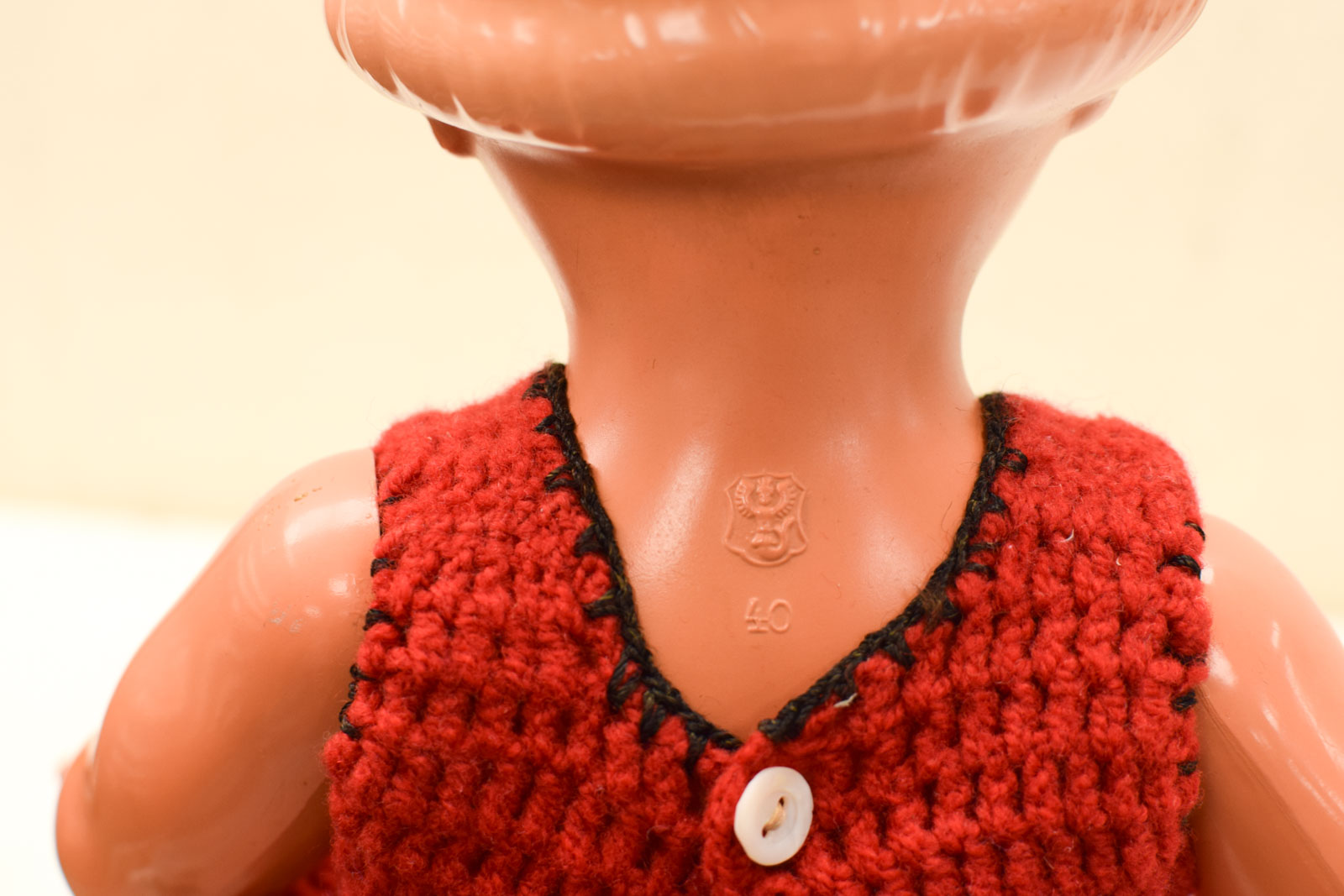 heeft een merkje zie foto de pop heeft gebruikssporen vooral bij de handjes en beentjes en voetjes