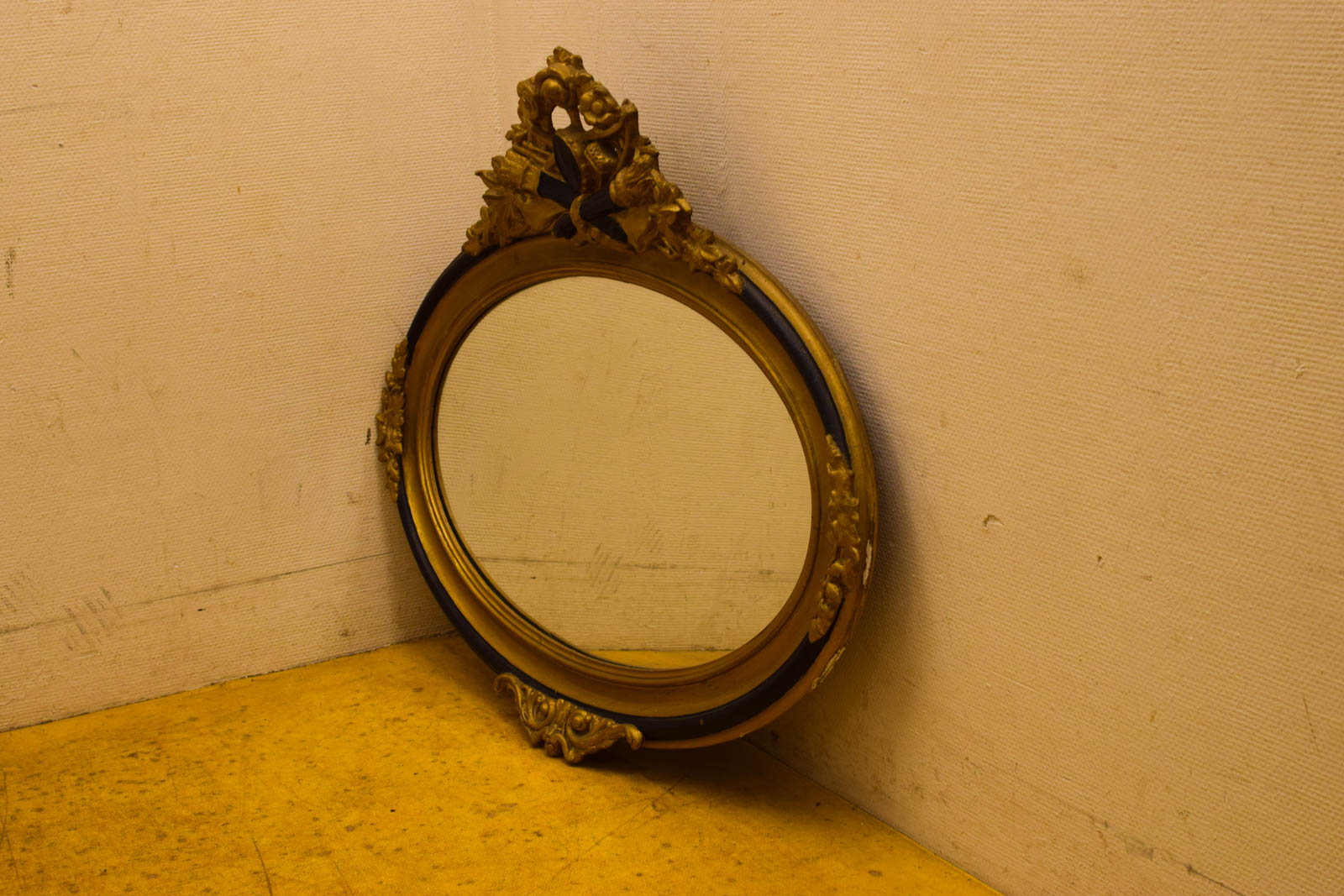 de spiegel ziet er nog netjes uit de spiegel is breed 95 cm helemaal gemeten hoog 84 cm de lijst heeft gebruikssporen