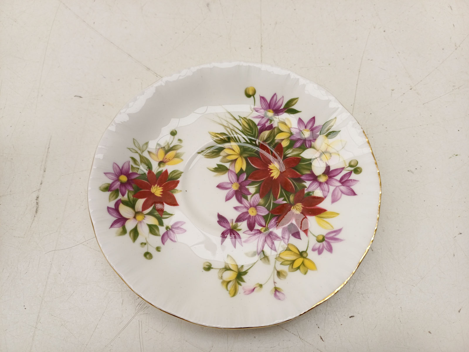 diameter bovenkant van het kopje 7,5 cm hoog 6,5 cm diameter van het schaaltje 12 cm heeft slijtage op het geverfde randje en lichte krasjes