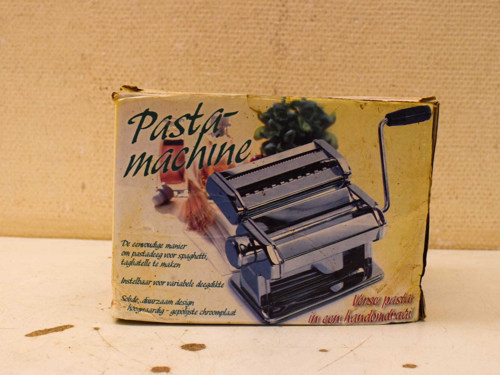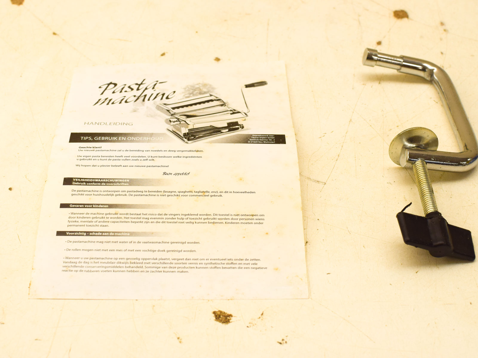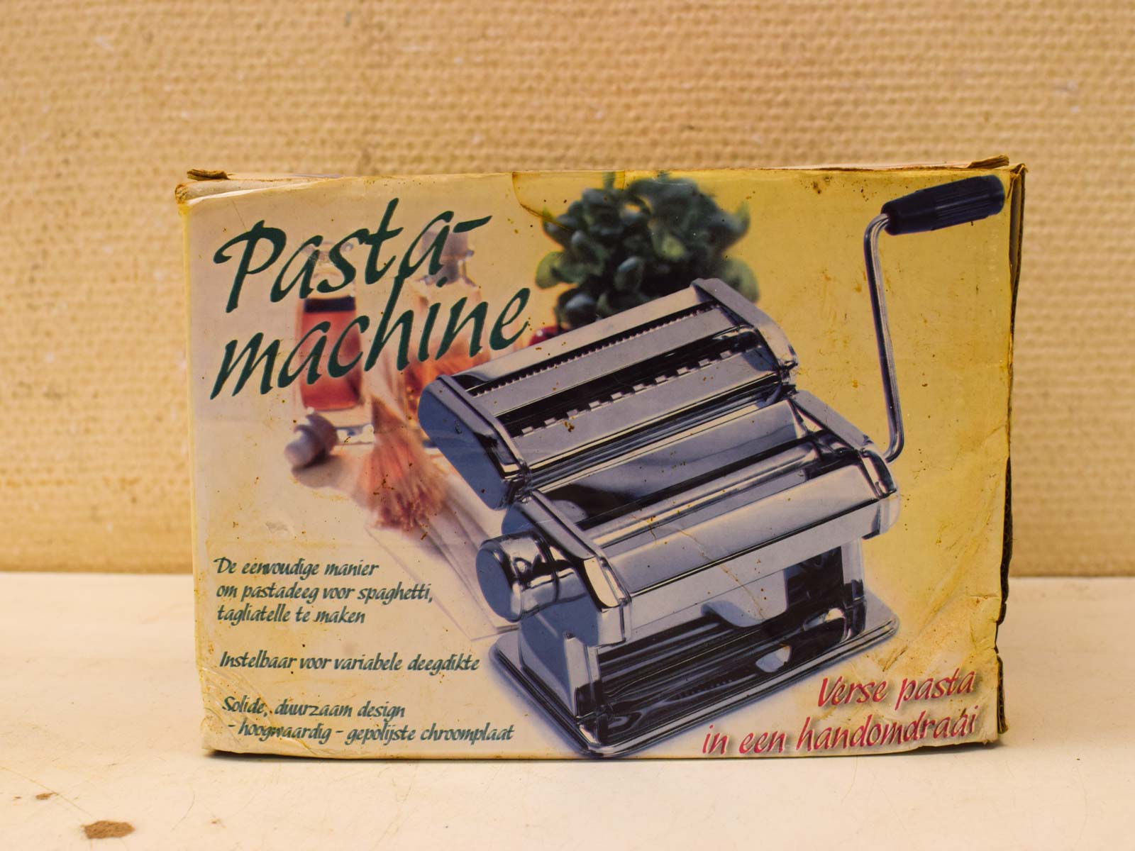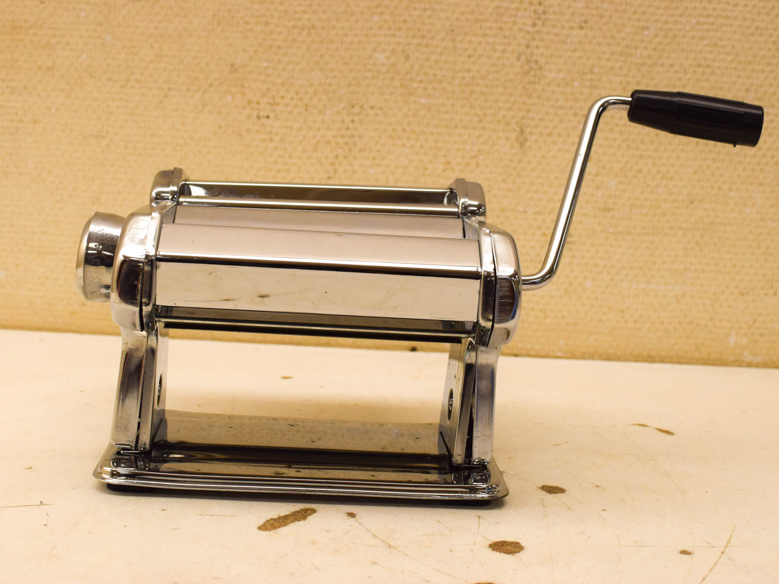 De pasta machine heeft een clamping systeem om hem vast te zetten op het werkblad en beschikt over twee roles: een voor het uitrollen van het deeg en een voor het snijden. Met de handslinger draai je het deeg door de rollen. Dit zijn klassieke, eenvoudige machines die al decennialang populair zijn in thuiskeukens omdat ze betrouwbaar en gemakkelijk schoon te maken zijn.