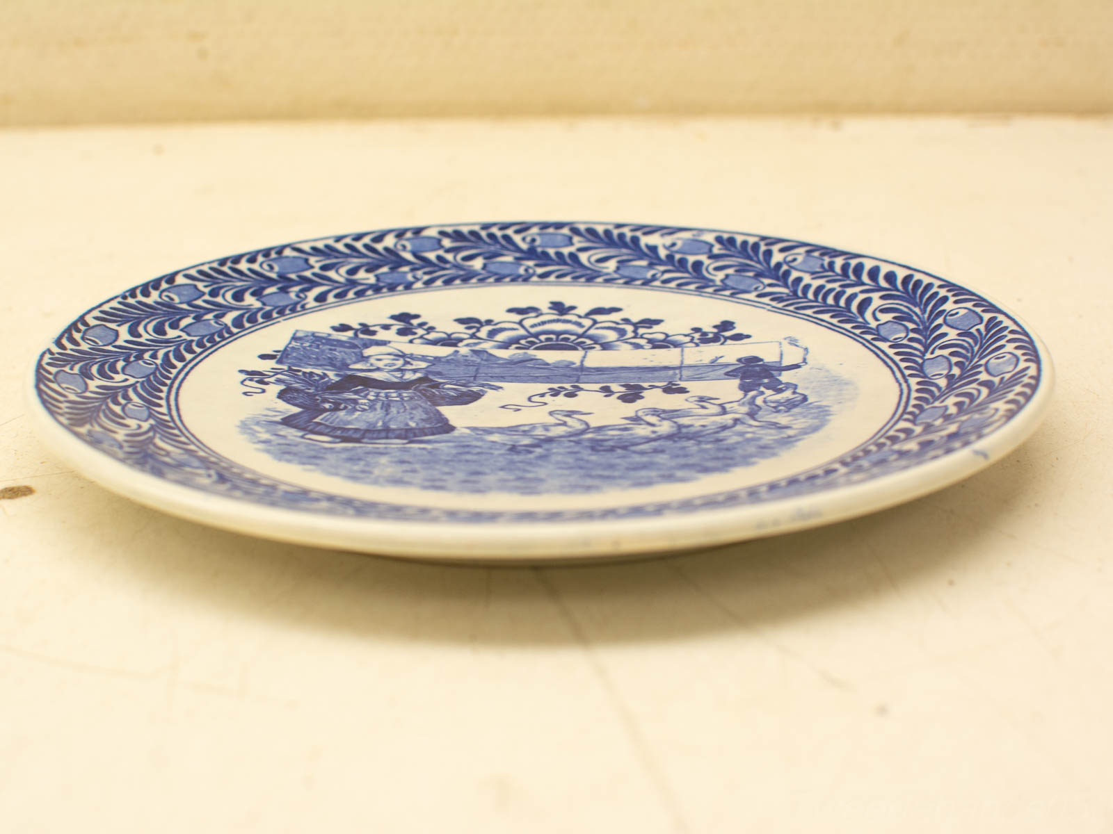 prent van een stel in klederdracht met hun ganzen diameter van het bord 22 cm