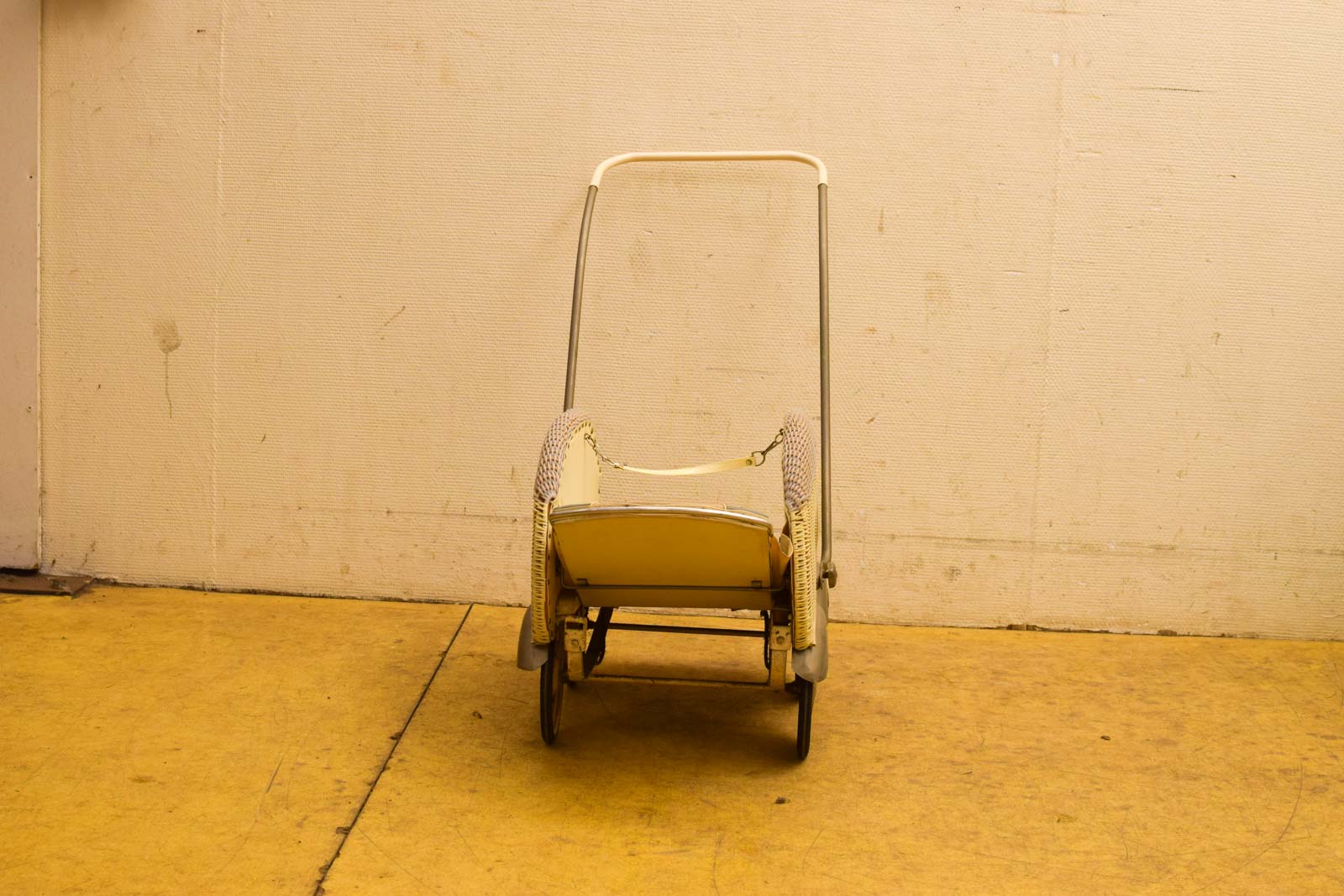 met de poppenwagen is mee gespeeld heeft gebruikssporen en roest de poppenwagen rijdt stroef en piept de bak gemeten breedte 49,5 cm diep 29,5 cm gemeten van grond met hendel hoog 68 cm