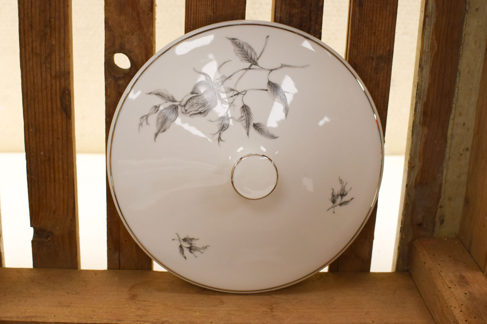 Porseleinen afdekschaal met prent van een roos 50162