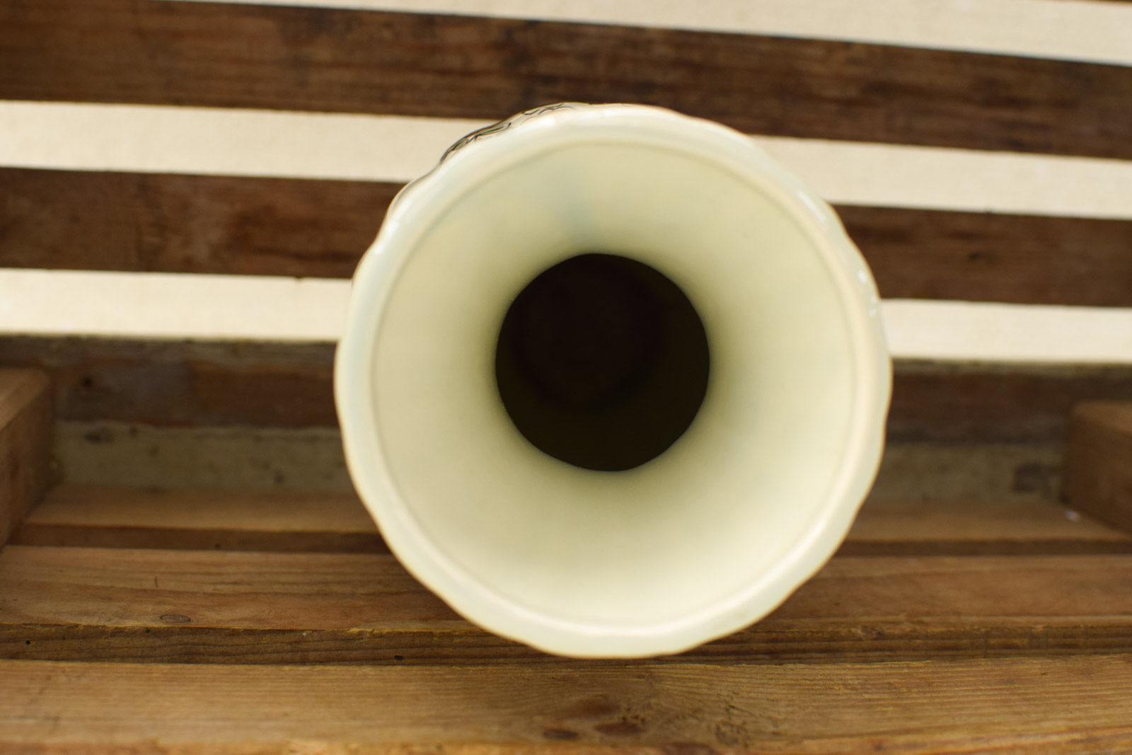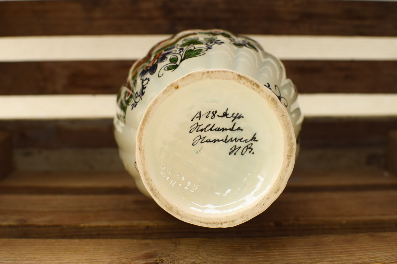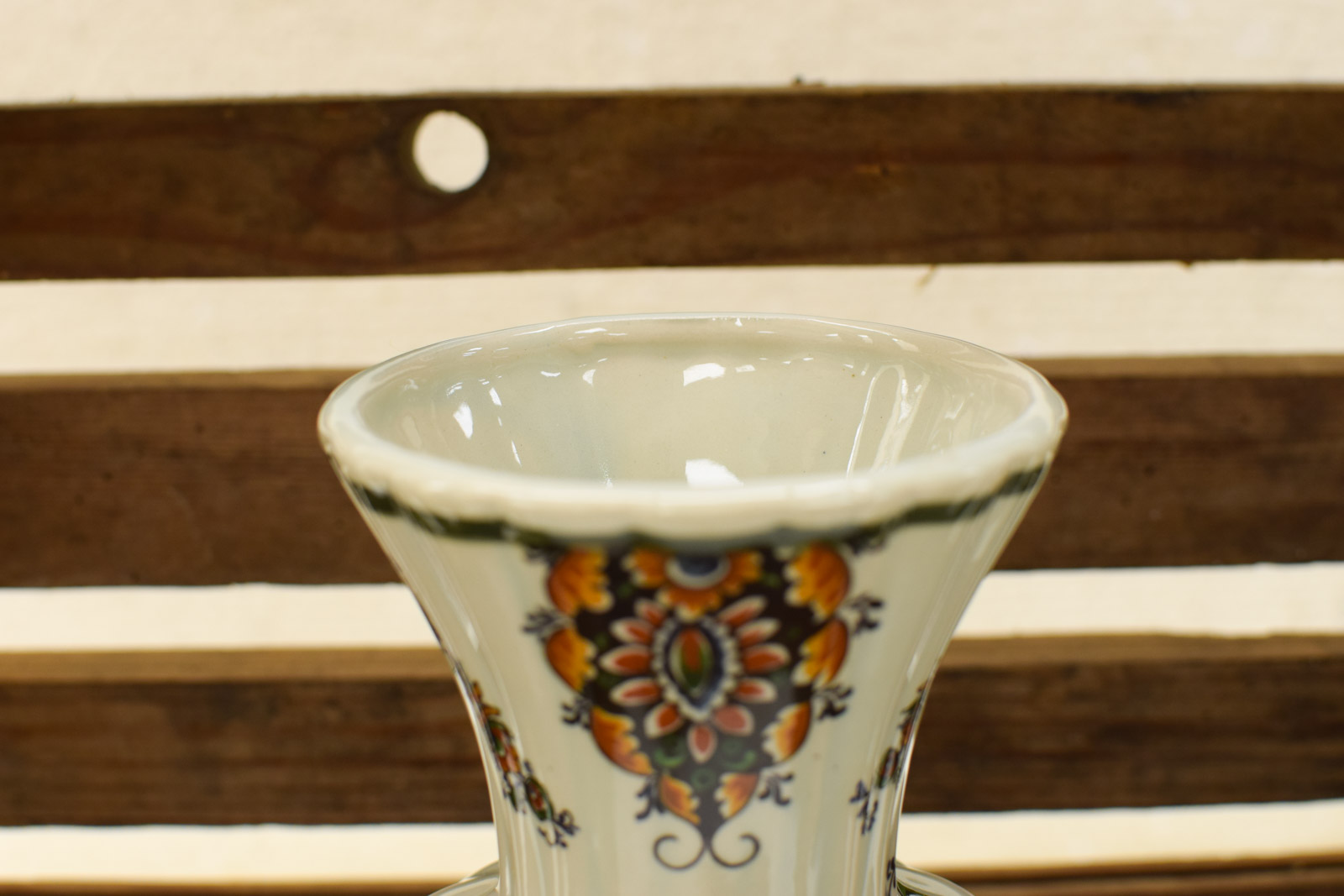 diameter bovenkant opening 9,5 cm hoog 24 cm de vaas heeft aanslag aan de binnenkant ziet er verder nog netjes uit