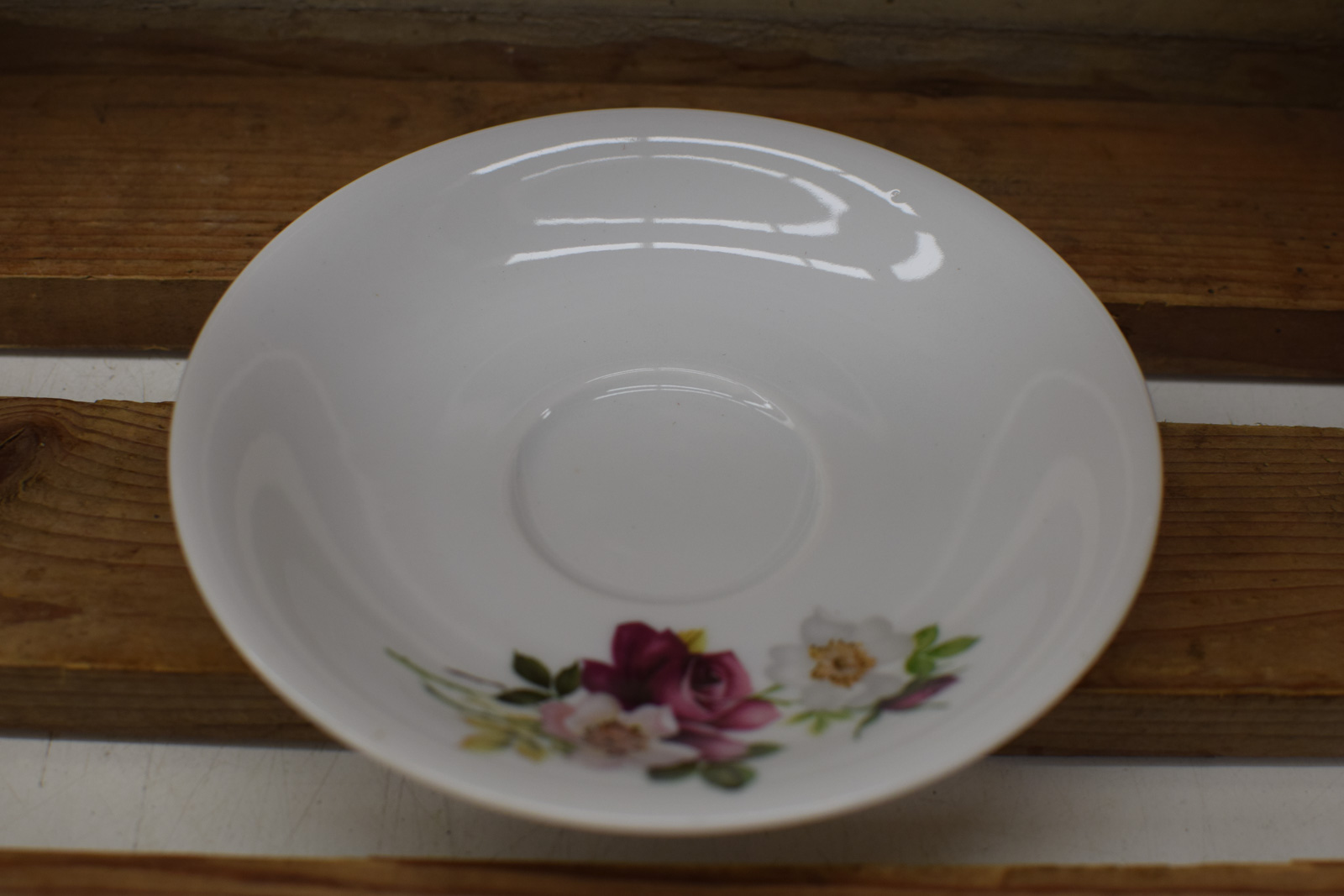 diameter bovenkant van het kopje 7,5 cm hoog 6,5 cm diameter van het schaaltje 14 cm het servies heeft krasjes maar is nog heel
