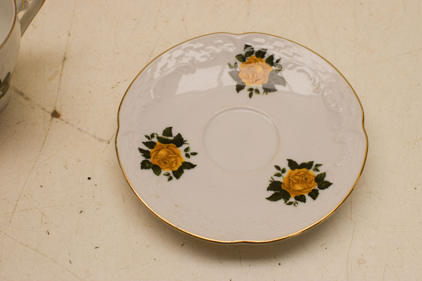 het kopje gemeten diameter bovenkant opening 7,5 cm hoog 6,5 cm diameter van het schaaltje 13 cm heeft krasjes