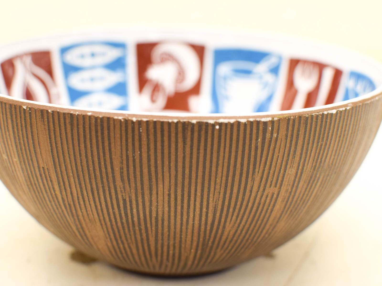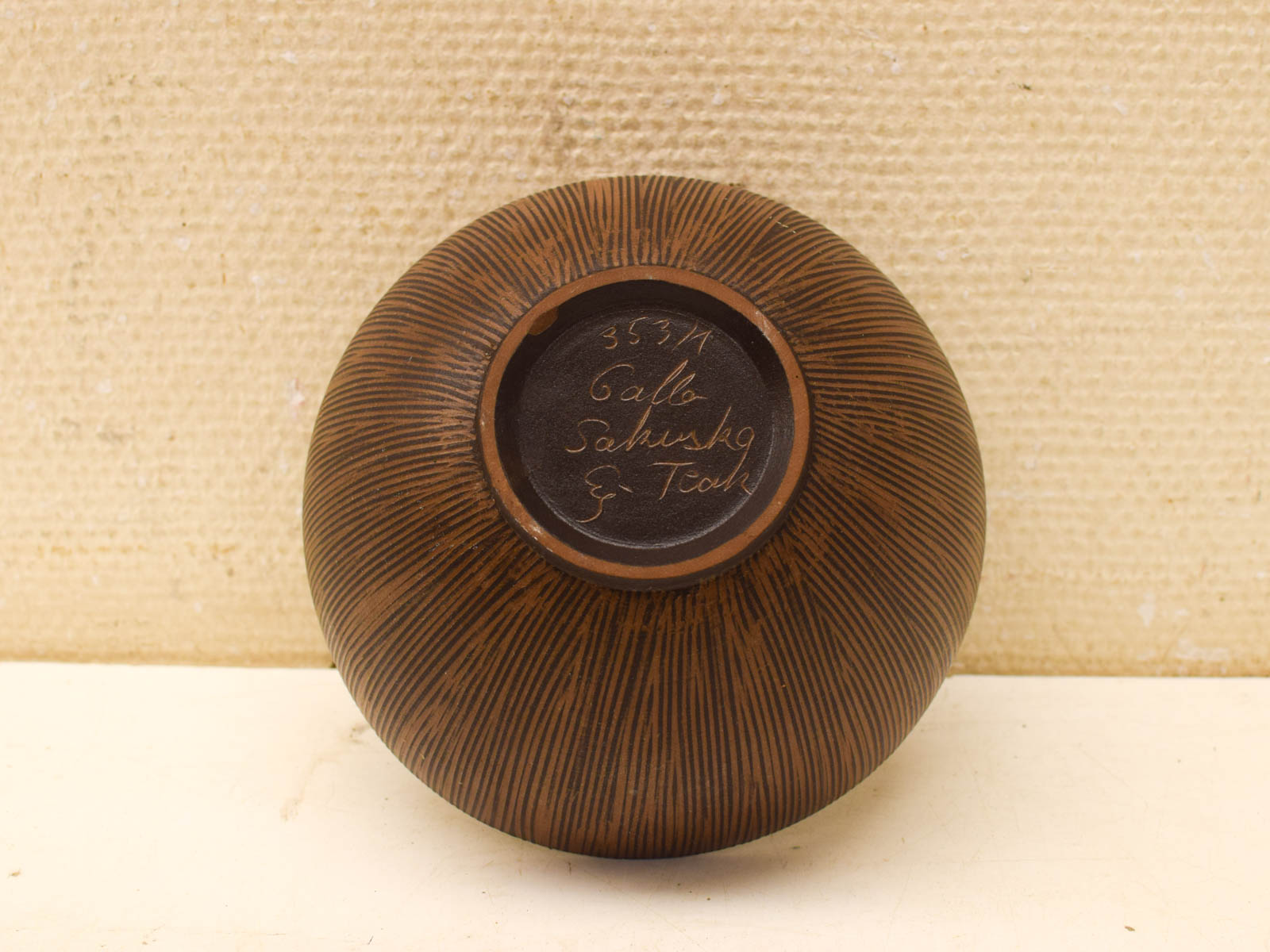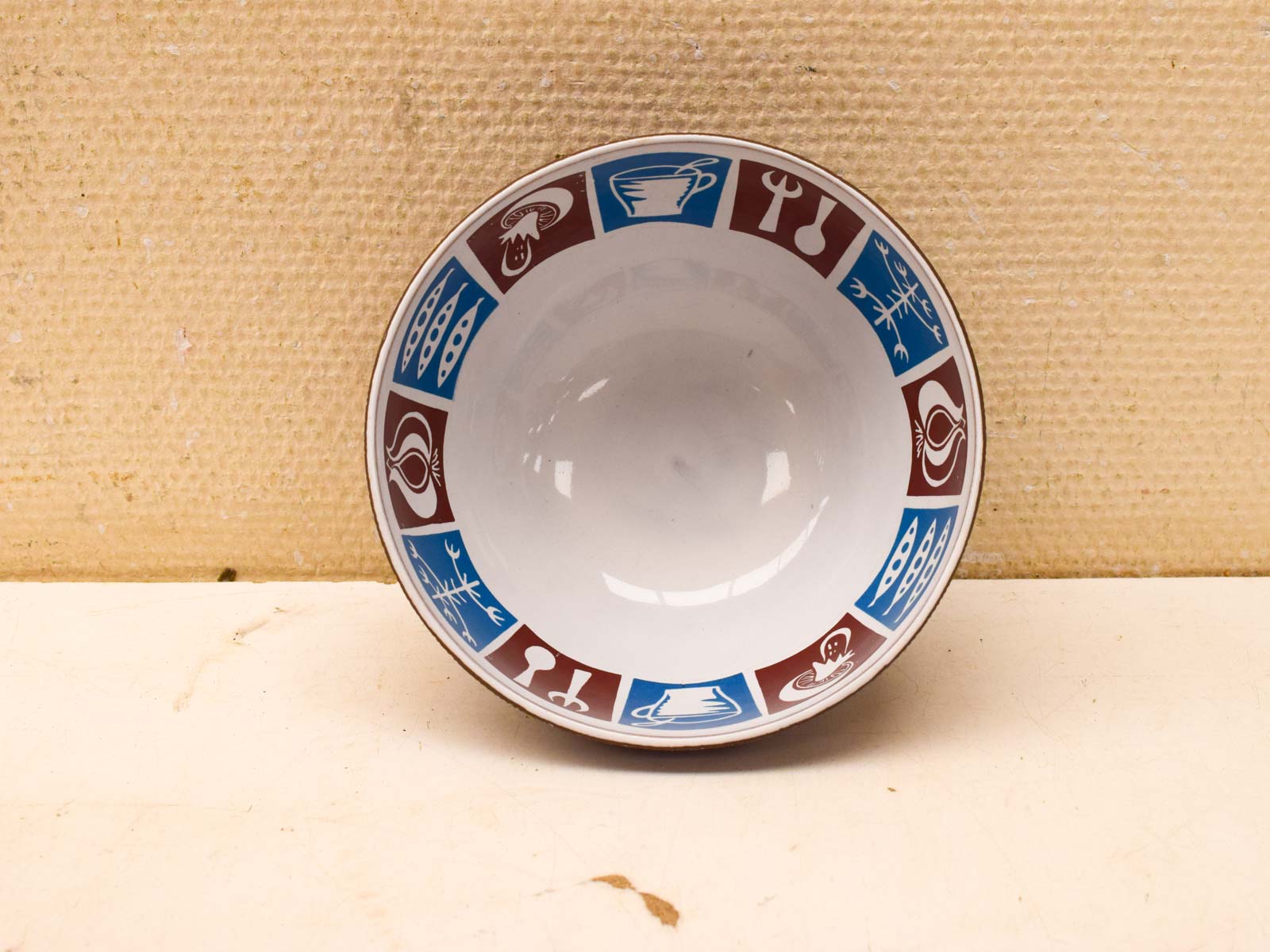 Heeft bij de rand wat slijtage op het verf maar ziet er verder nog redelijk uit