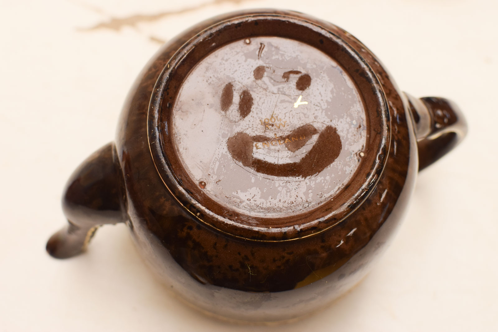 op de onderkant staat 1004 AW L England gemeten van oor tot tuit 18 cm gemeten zonder deksel hoog 10 cm
