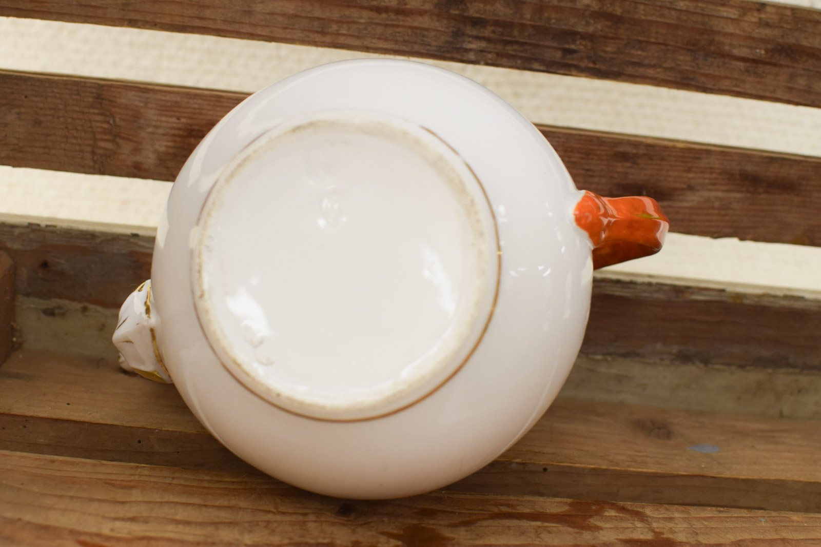 gemeten van oor tot tuit 19 cm gemeten zonder deksel hoog 11 cm de theepot heeft slijtage van het verf