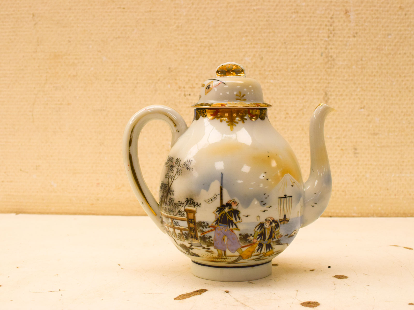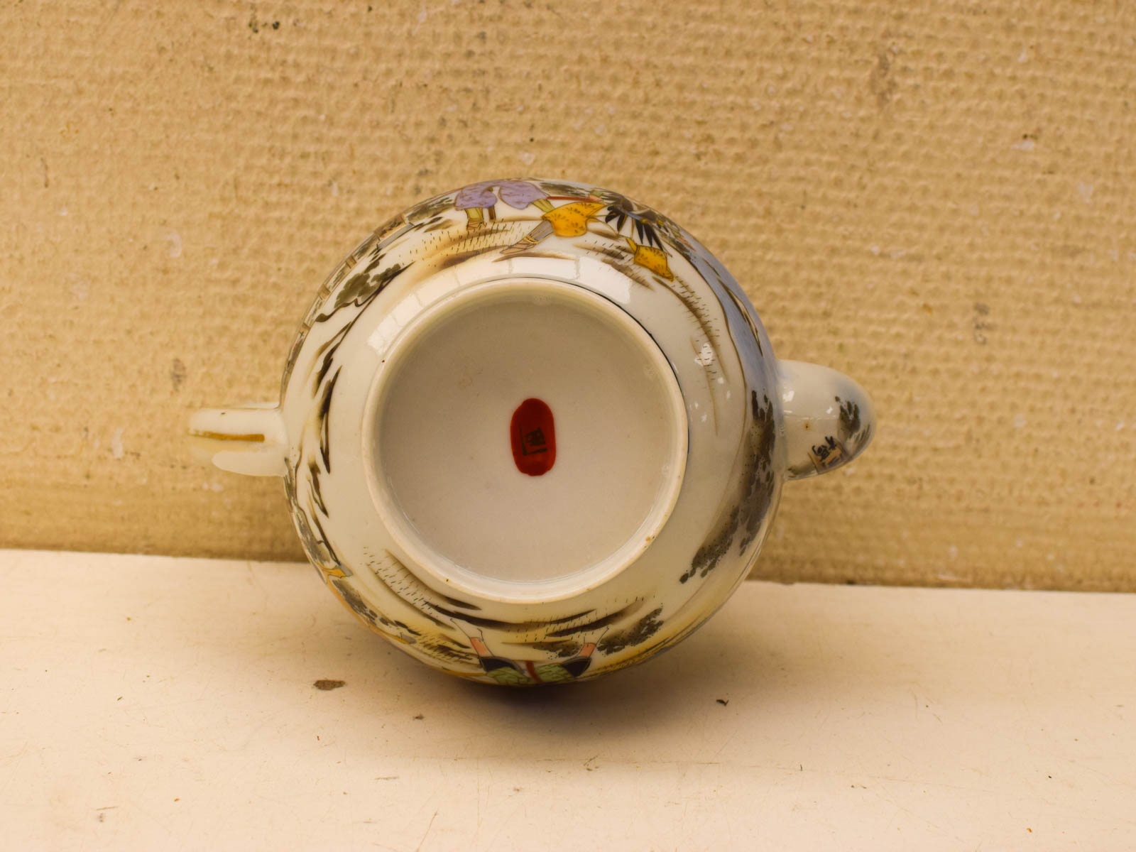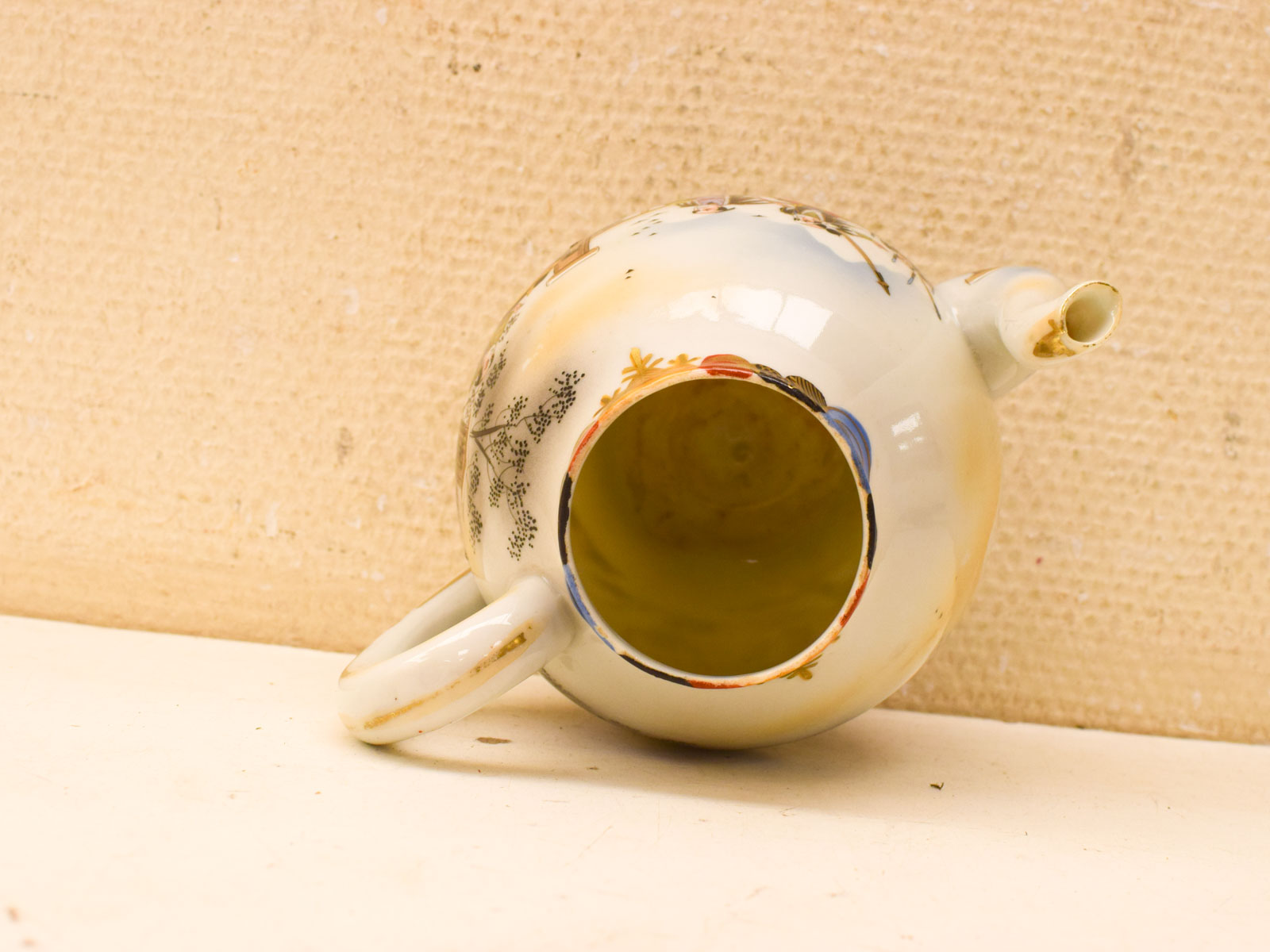Heeft aanslag aan de binnenkant en slijtage op het erf gemeten van oor met tuit 19 cm hoogte gemeten zonder deksel 15 cm