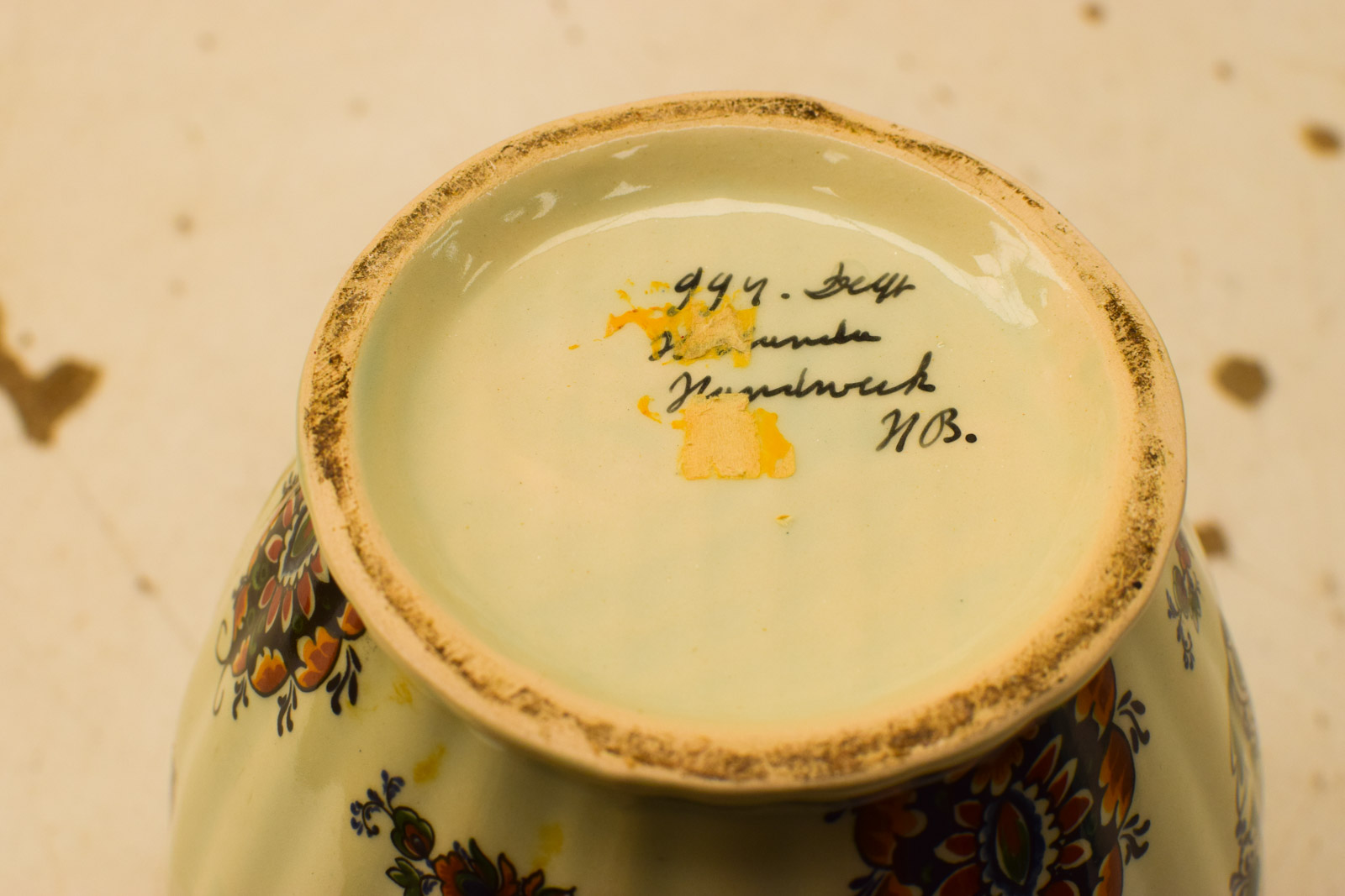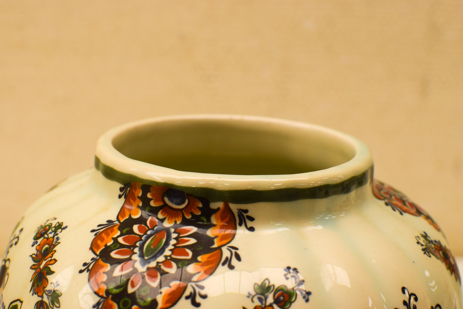 diameter bovenkant opening 9 cm gemeten zonder deksel hoog 19,5 cm de vaas heeft wat vlekjes maar is nog heel en ziet er nog redelijk uit