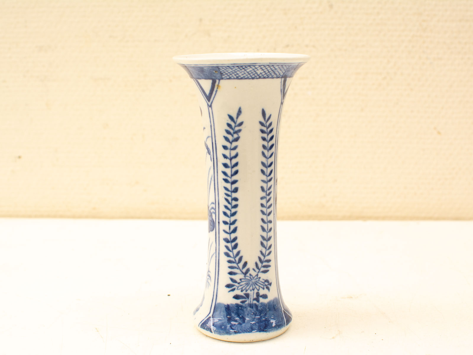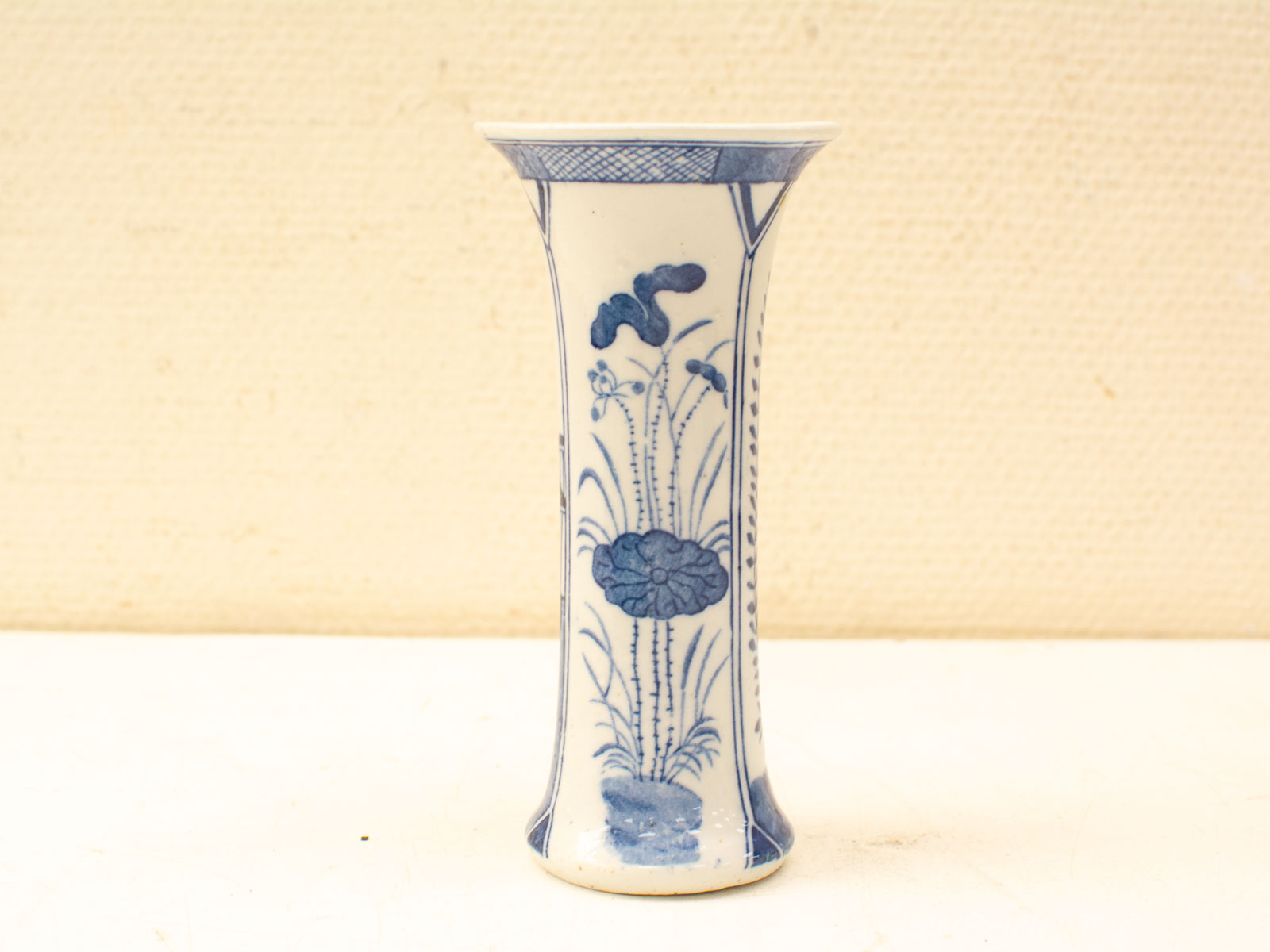 het vaasje heeft vlekken en binnen in aanslag hoog 17,5 cm diameter bovenkant 8,5 cm