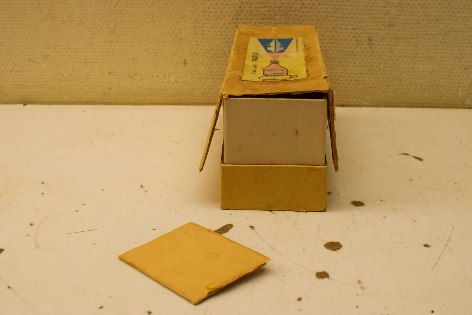 is gebruikt en heeft gebruikssporen en verkleuring het doosje is beschadigd en verkleurd het lampje gaat aan