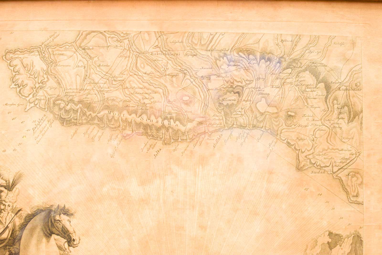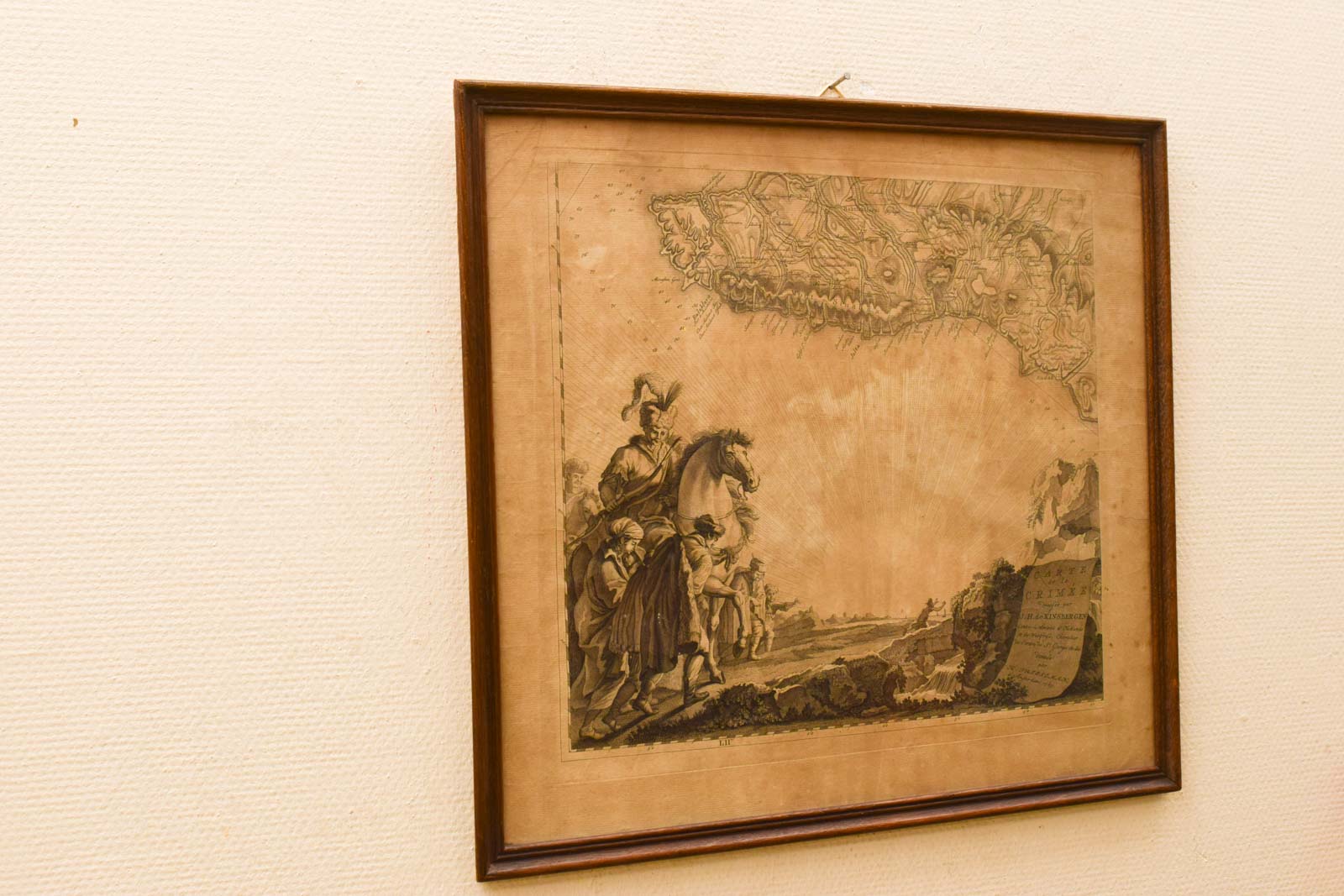 de prent is verkleurd en heeft vlekken de lijst heeft lichte gebruikssporen