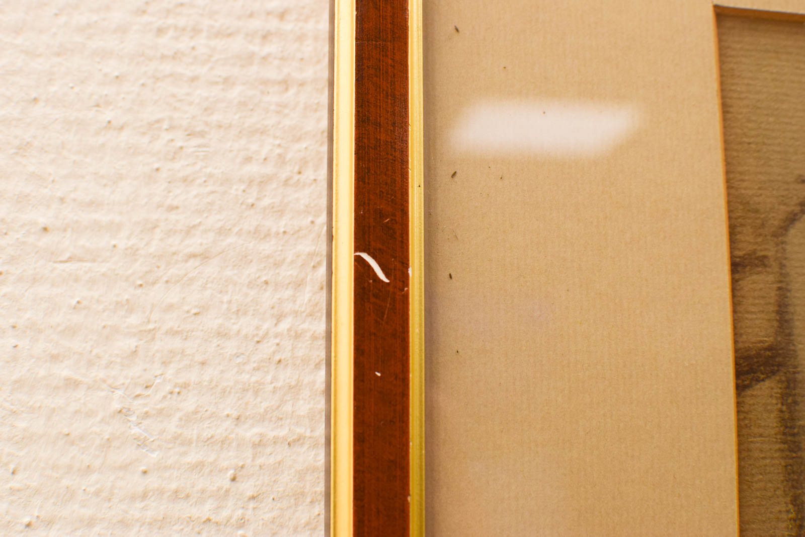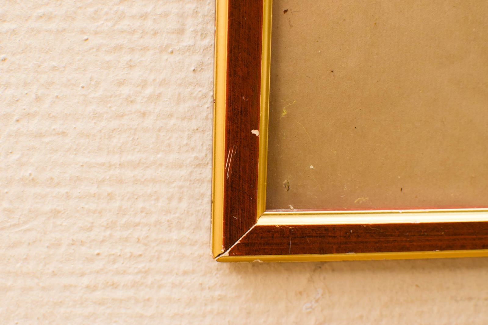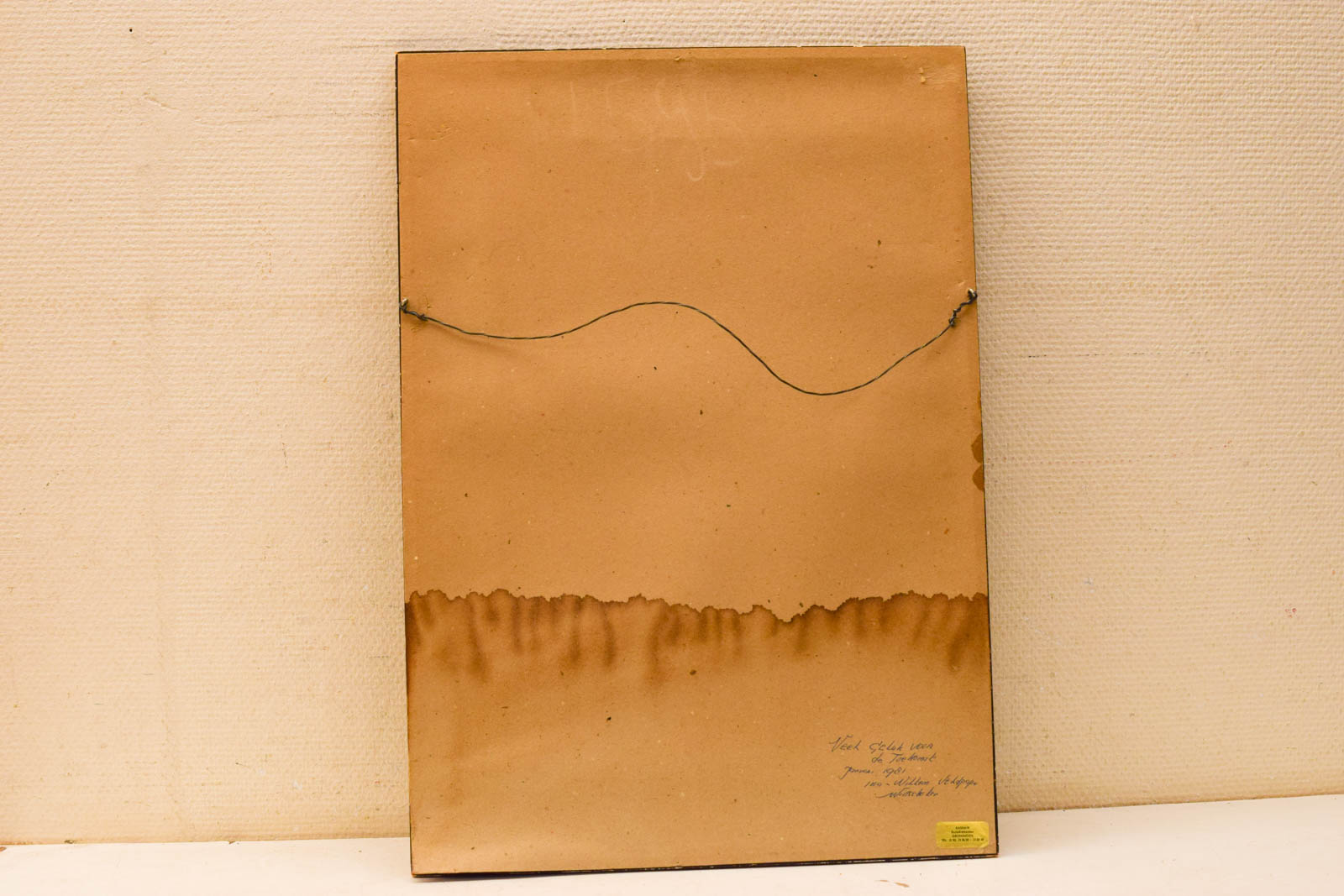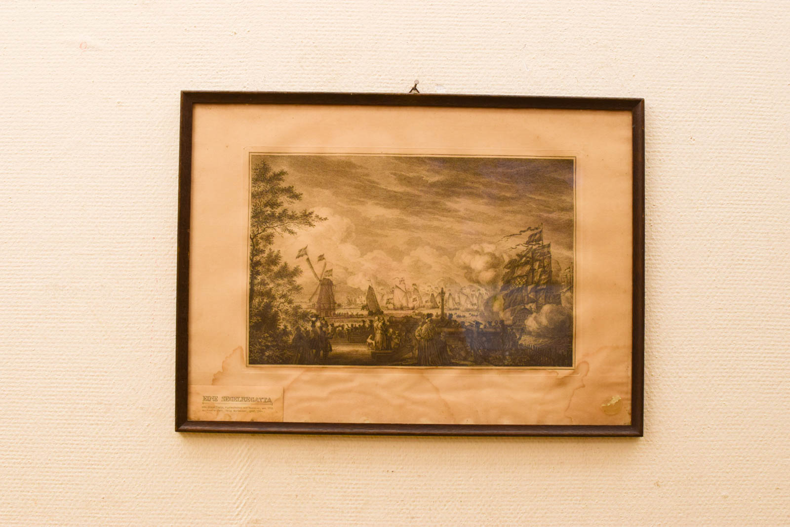het lijstje heeft gebruikssporen en heeft een vochtschade de prent is verkleurd breedte 43,5 cm hoog 61,5 cm