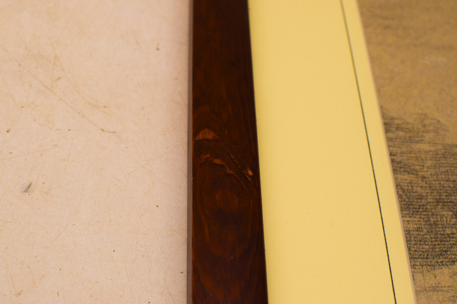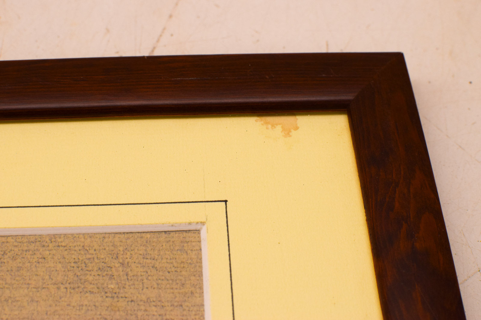 Let op: de tekening vertoont verkleuringsplekken en een vlek bovenaan in de lijst. Er zijn lichte beschadigingen zichtbaar, maar het werk is nog intact. Dit draagt bij aan het vintage karakter van de prent en maakt het een authentieke toevoeging voor wie van klassieke landschapsfotografie en dierenstudies houdt.