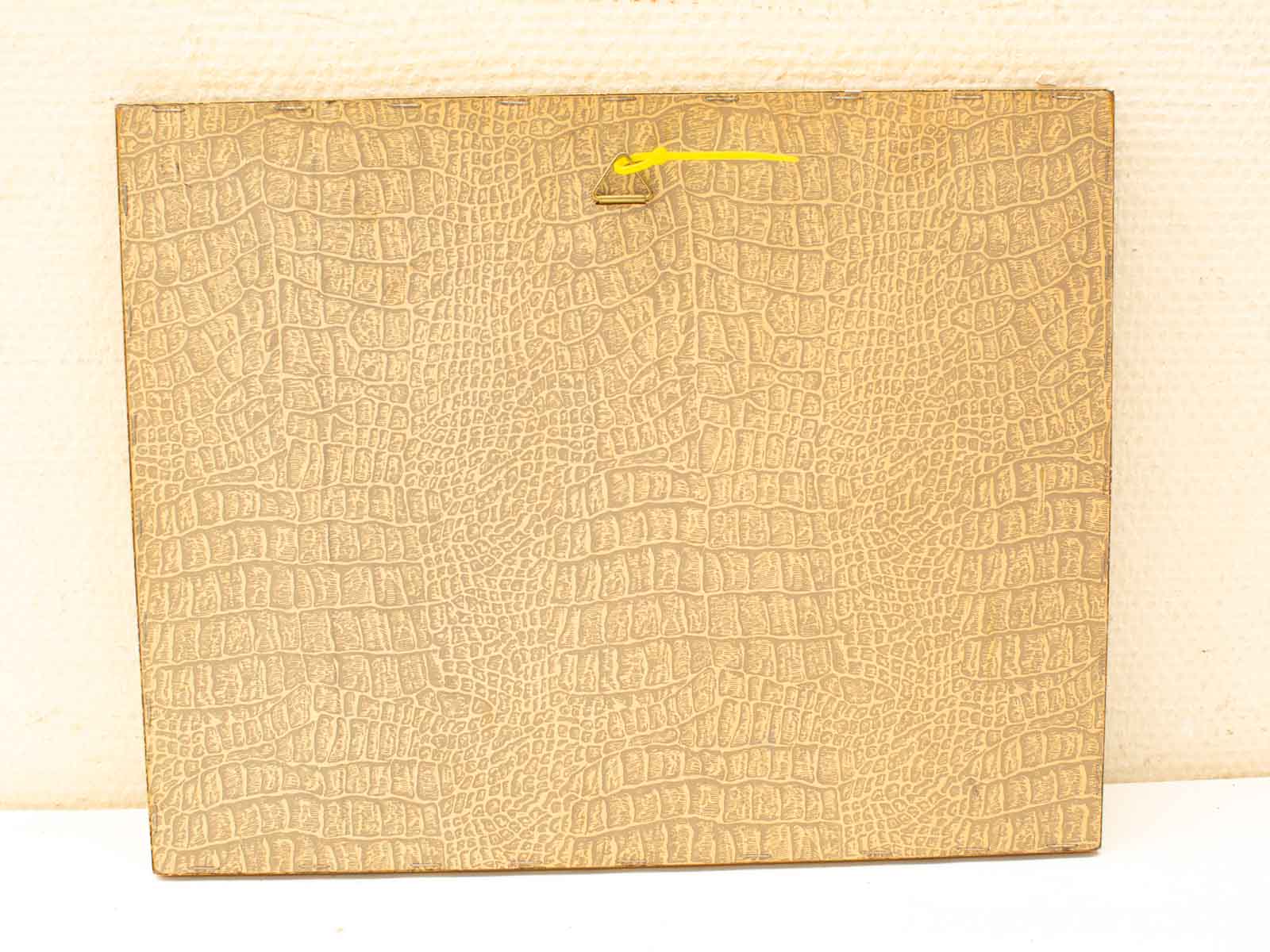 in het schilderijtje zitten een paar spelden in de hoek van de lijst zit een beschadeging verder ziet het er nog goed uit hoog 27,5 cm