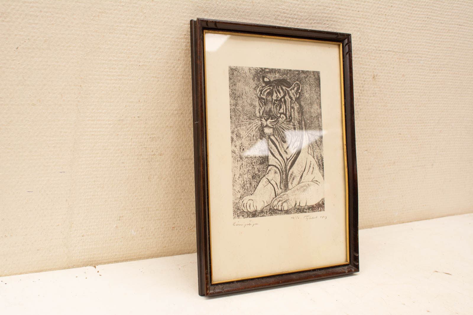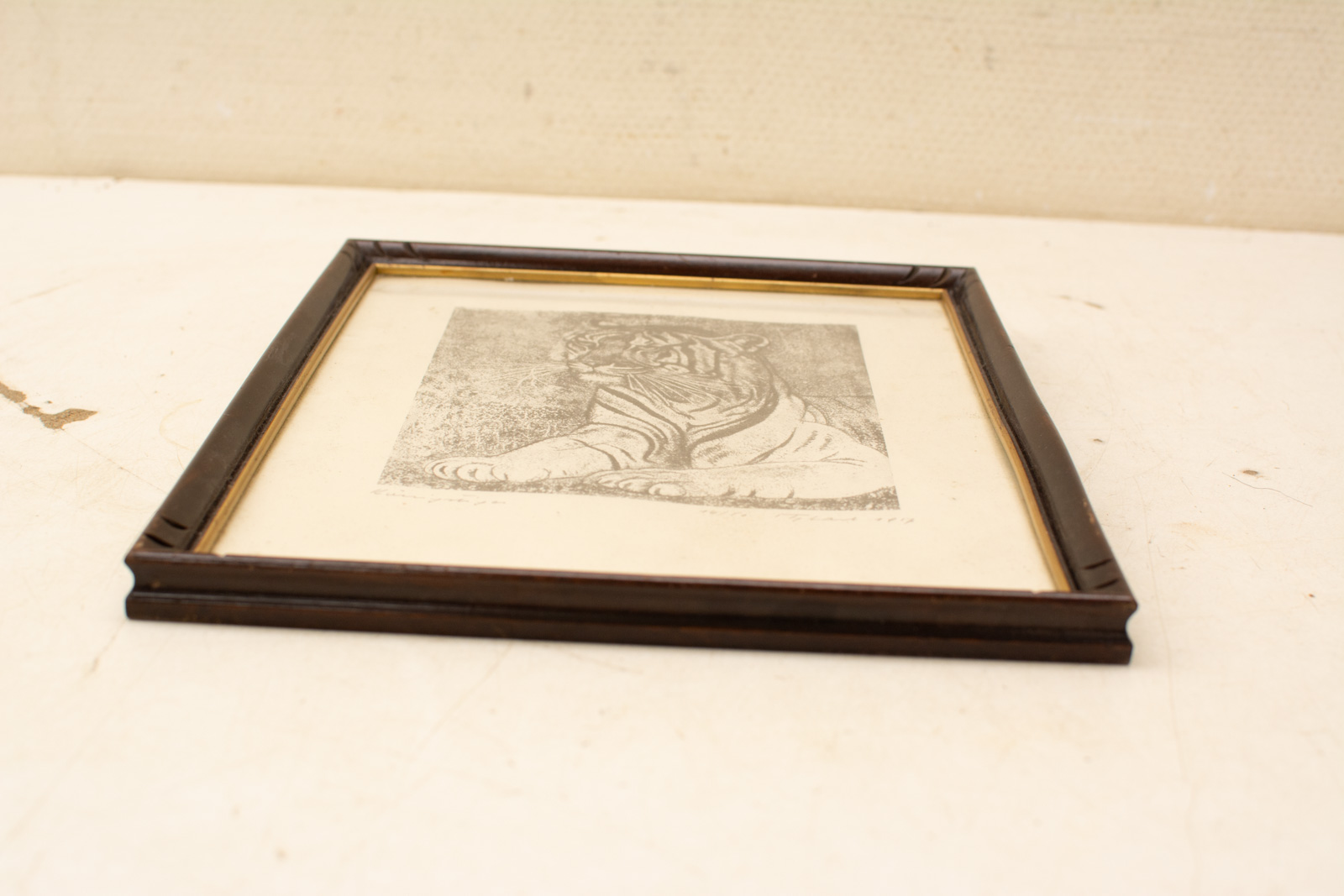 het lijstje heeft gebruiksporen de prent is verkleurd