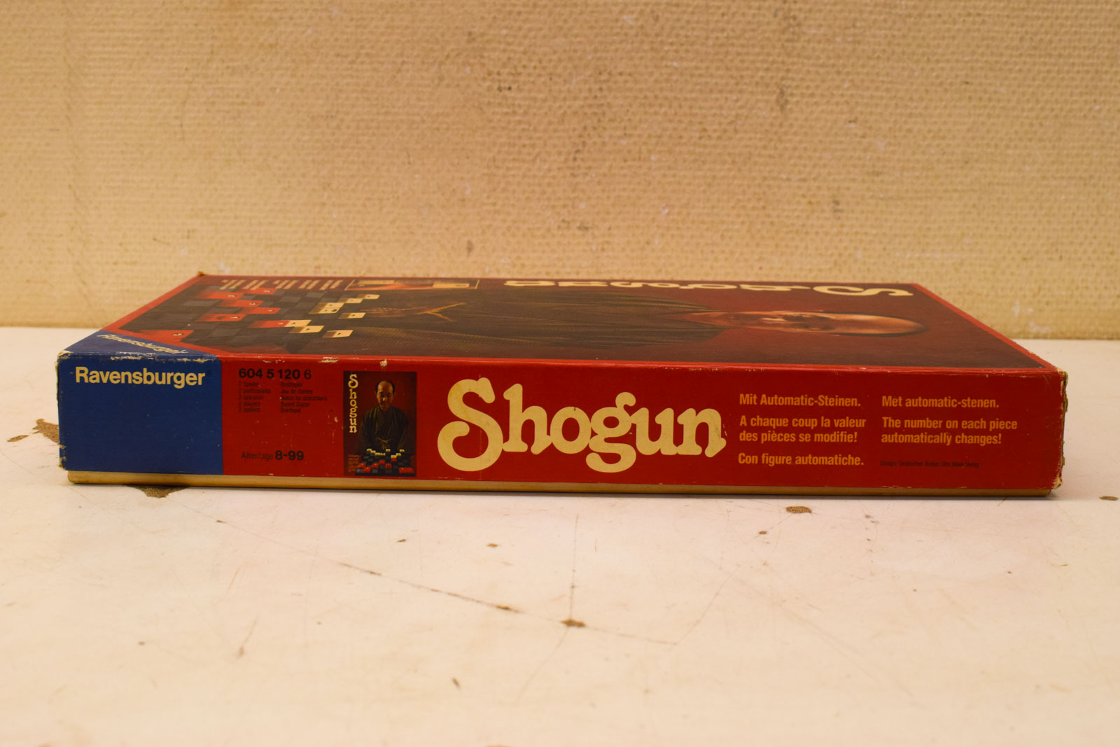 De doos vertoont de gebruikelijke slijtage van een bordspel dat regelmatig gebruikt is. Je ziet deuken, krassen en verkleuringen op de verpakking, maar dit zijn normale sporen van het gebruik door de tijd. De stenen zelf zijn in goede staat en functioneren naar behoren. Dit is een stukje bordspelgeschiedenis: Shogun is een classieker voor wie van strategische spelletjes houdt en van het analoge, tactische soort zonder digitale elementen.