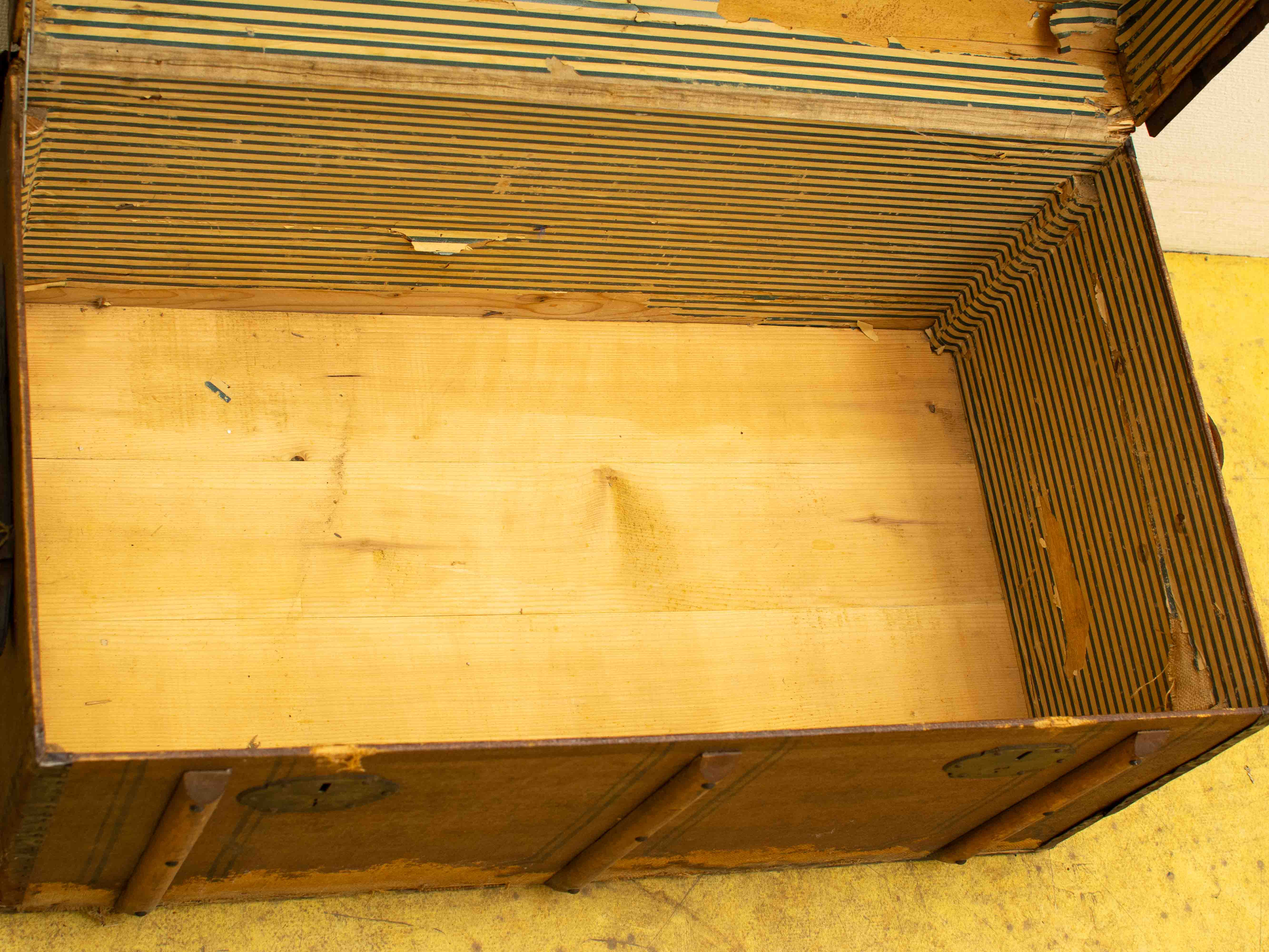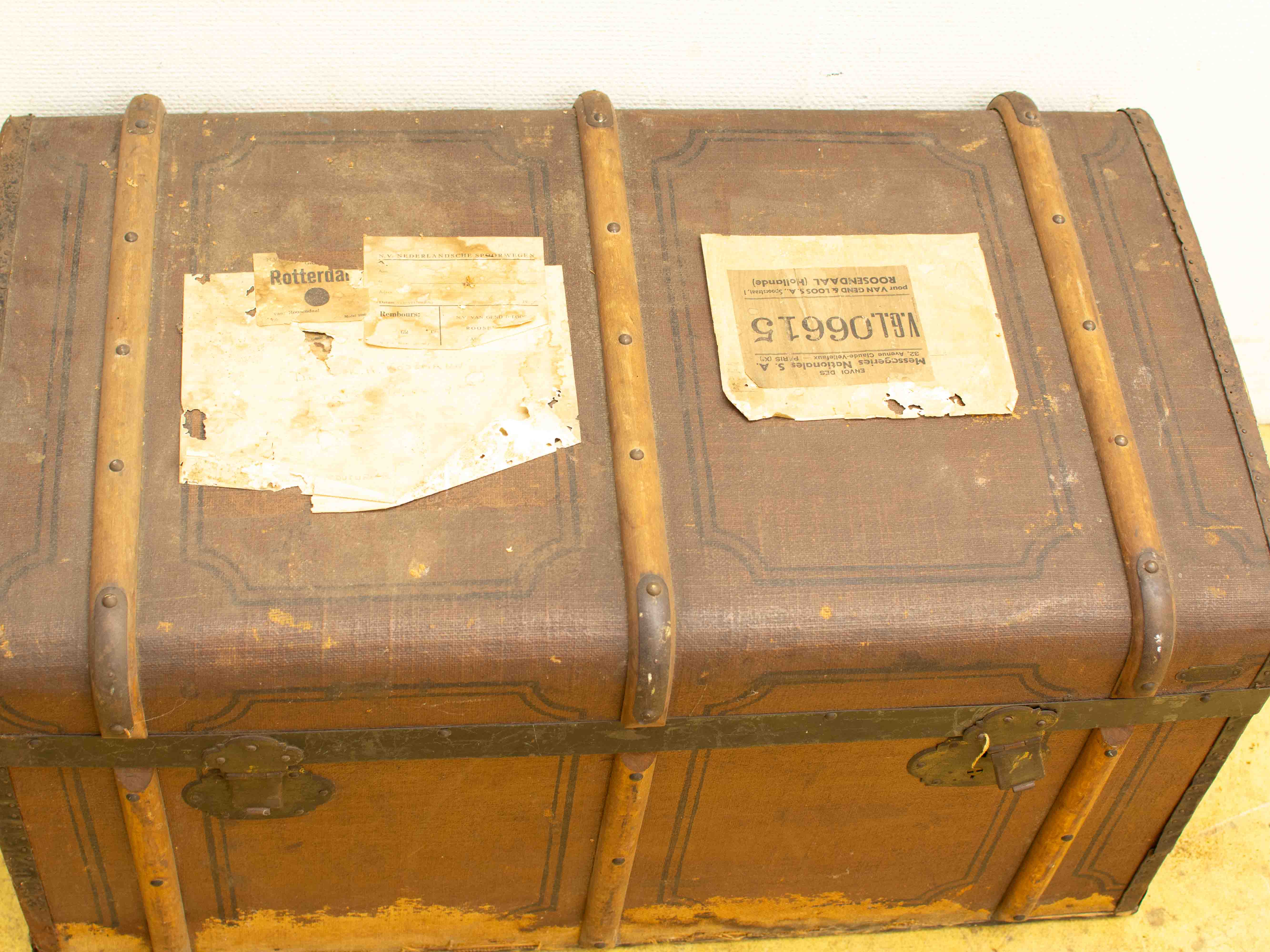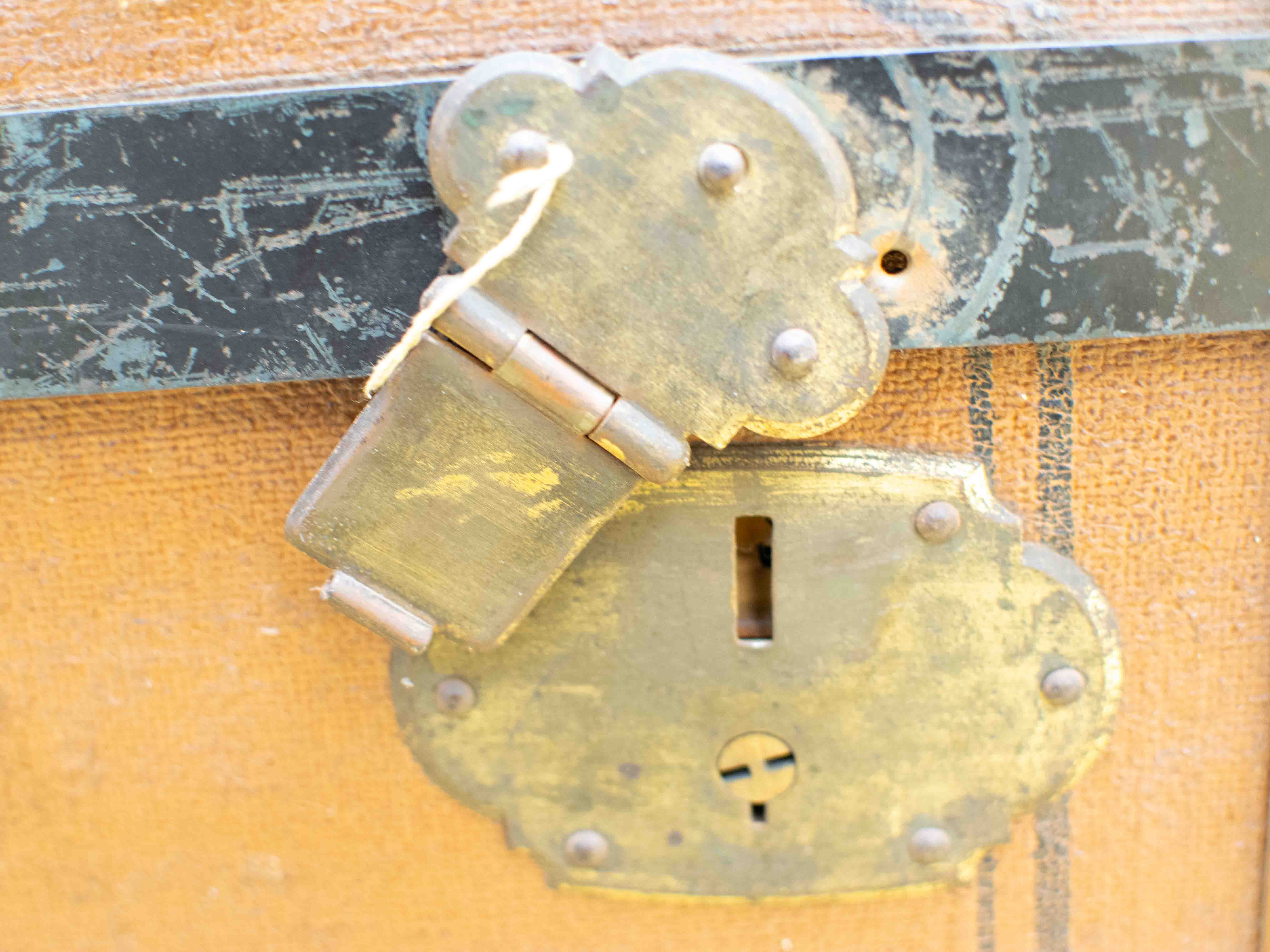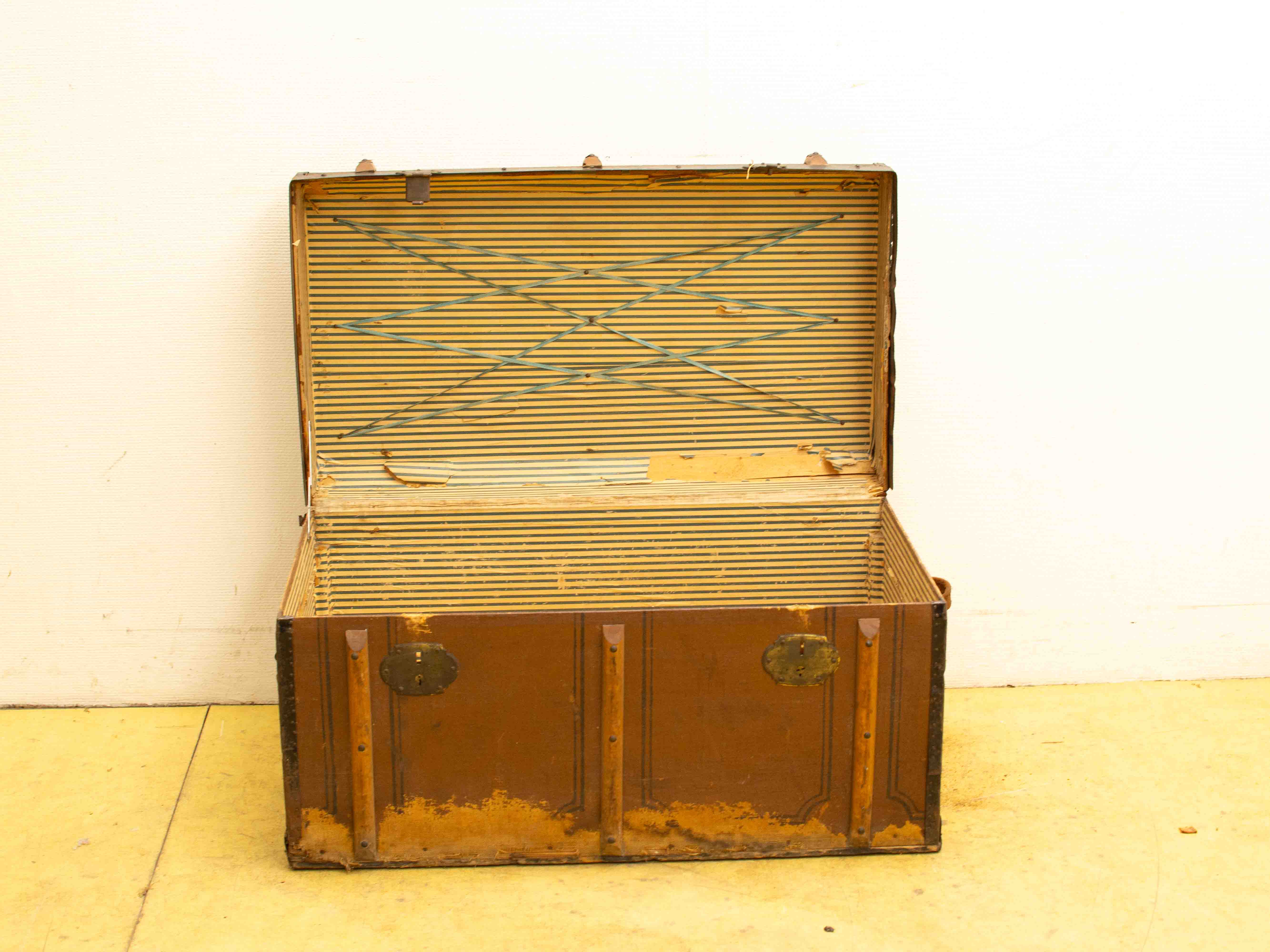 zit geen sleutel bij de kist heeft gebruikssporen binnenmaat van de kist breed 88 cm diepte 49 cm hoog 34 cm
