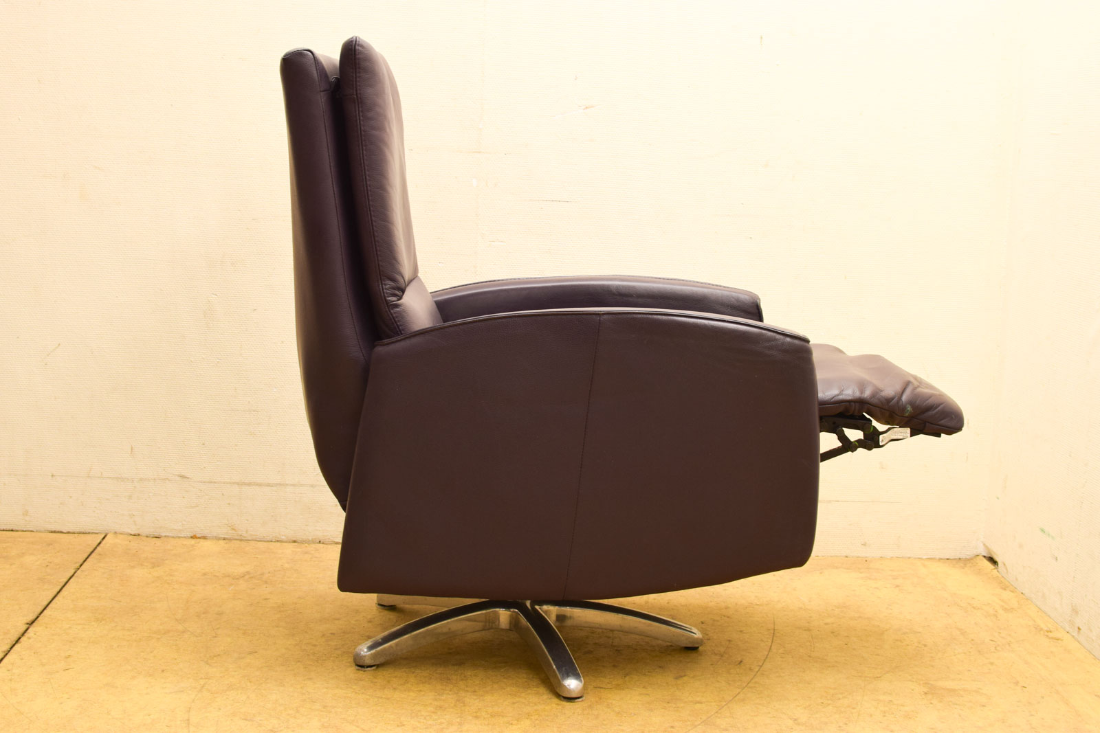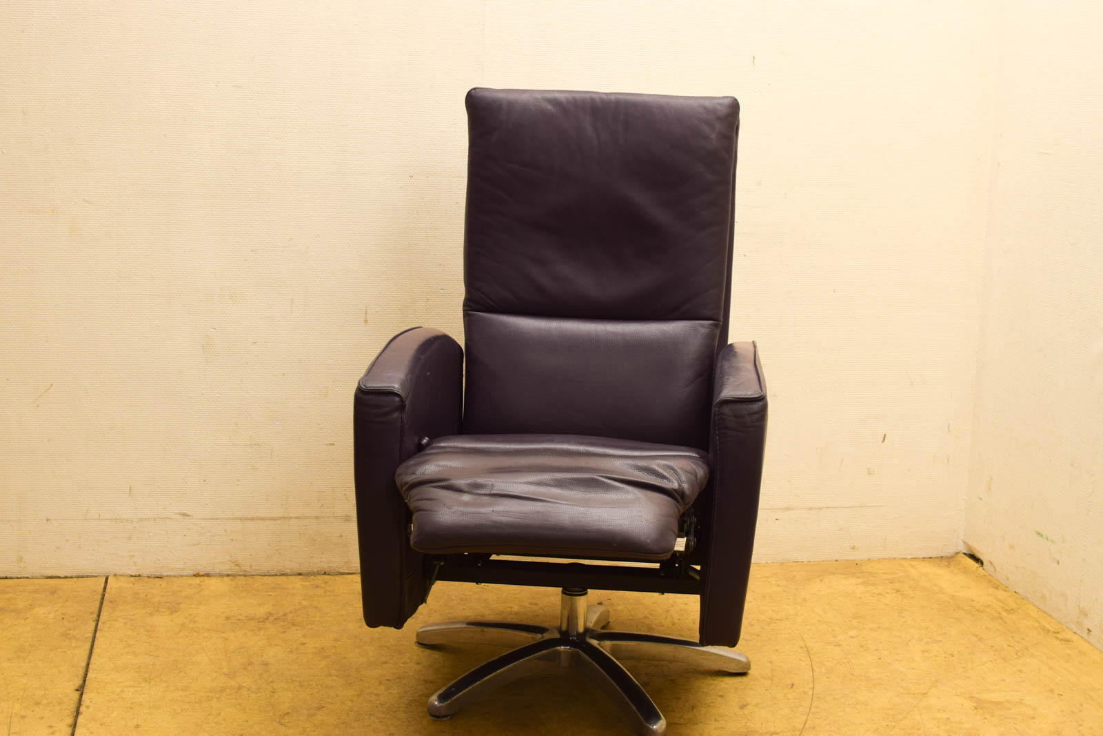 de voetgedeelte kan naar voren de fauteuil kan in het rond draaien is gebruikt en heeft gebruikssporen maar is nog heel en zit nog redelijk gemeten met de leunings breed 65 cm