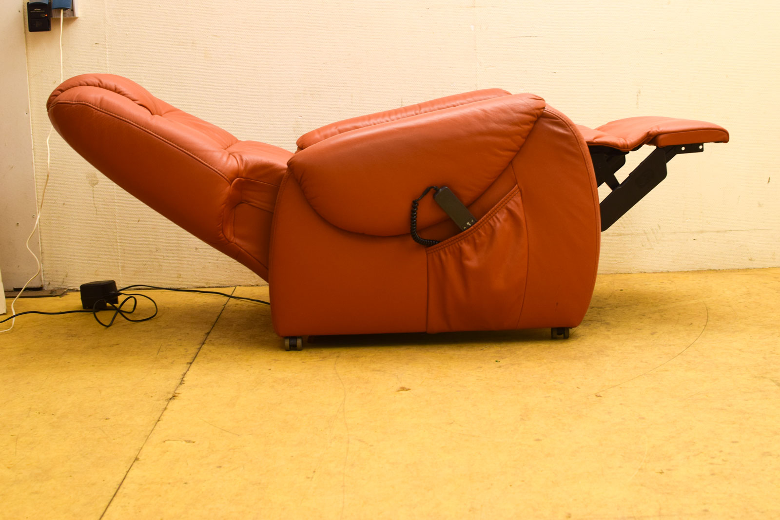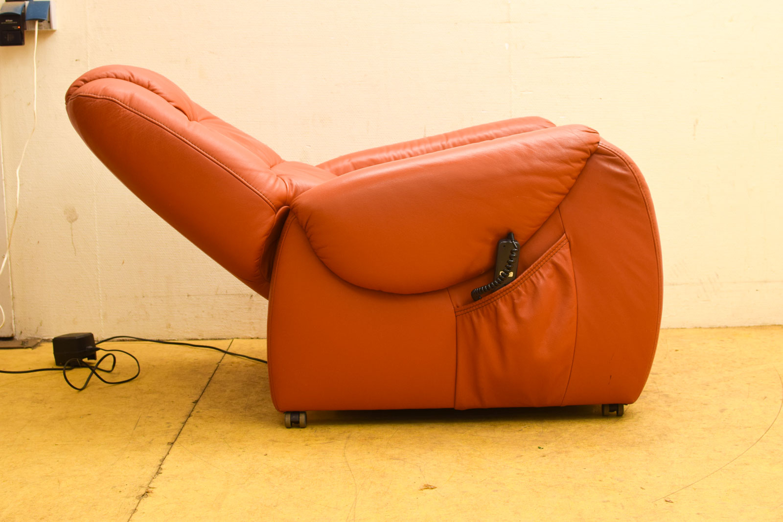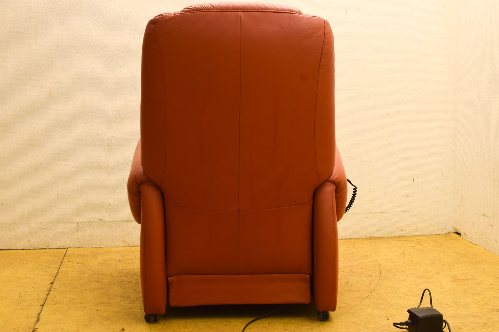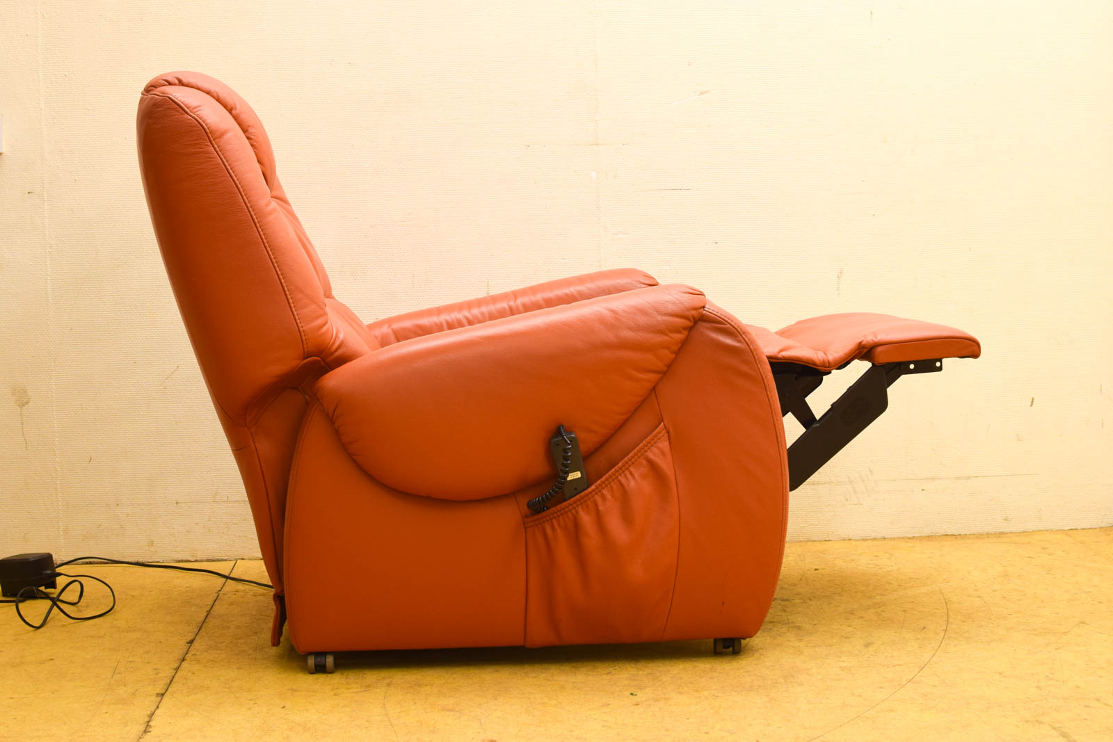 de stoel is heel en werkt kleur is bruin/oranje de stoel heeft gebruikssporen maar is nog heel gemeten met leunings 76 cm de stoel heeft wieltjes waardoor het makkelijk is om de stoel te verplaatsen