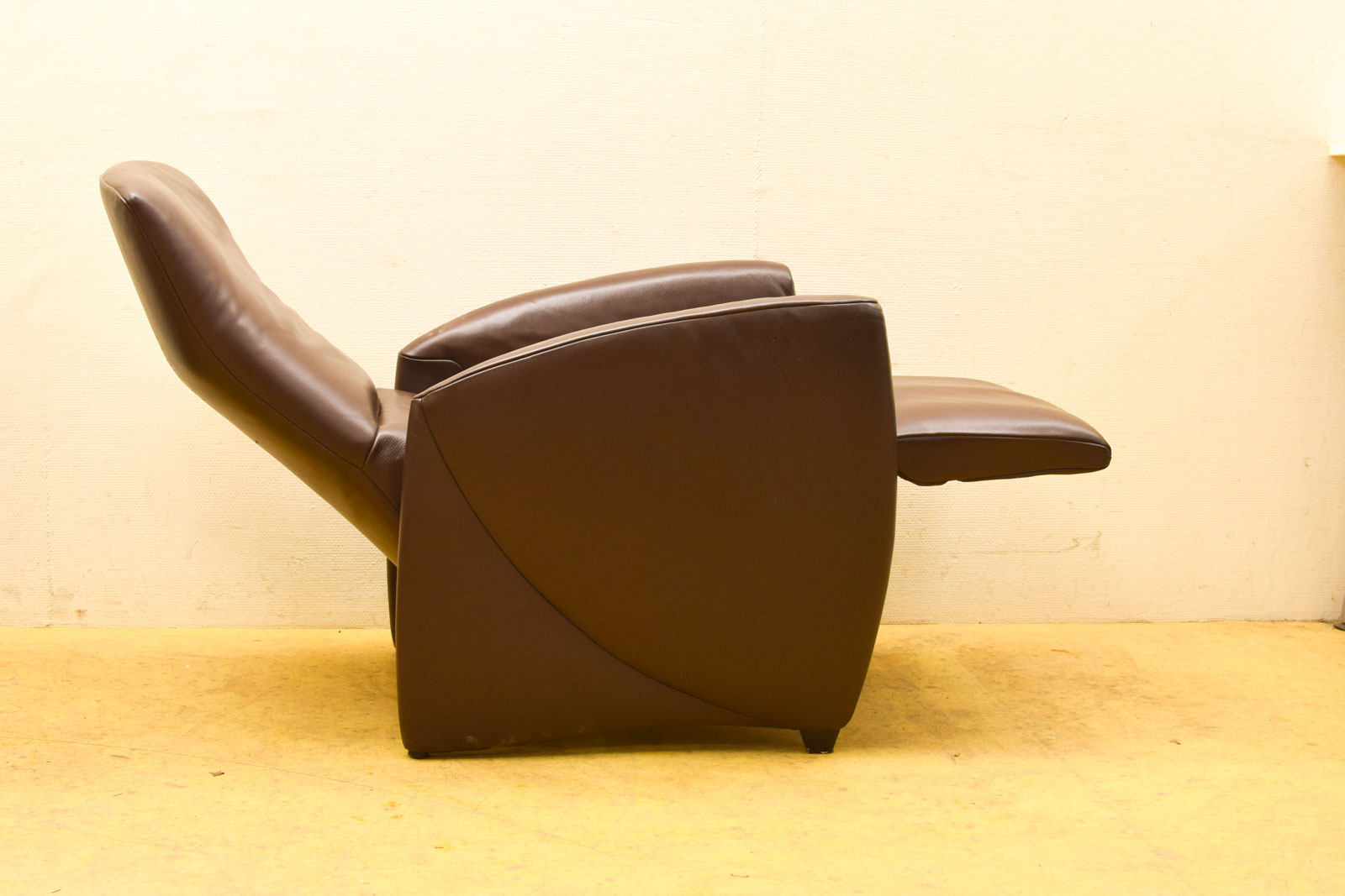 Deze bruine lederen relaxfauteuil is een praktische zit voor wie graag comfortabel ontspant. De fauteuil heeft een verstelbare rugleuning en een uitschuifbare beensteun, zodat je gemakkelijk in verschillende posities kunt zitten. Met armleuningen aan beide zijden en een stoere lijnvoering past deze relaxfauteuil in een modern of klassiek ingericht interieur.