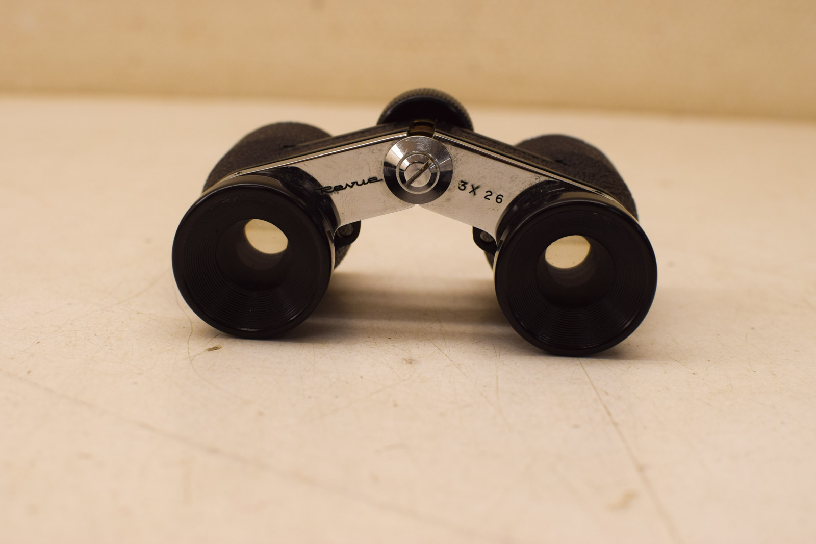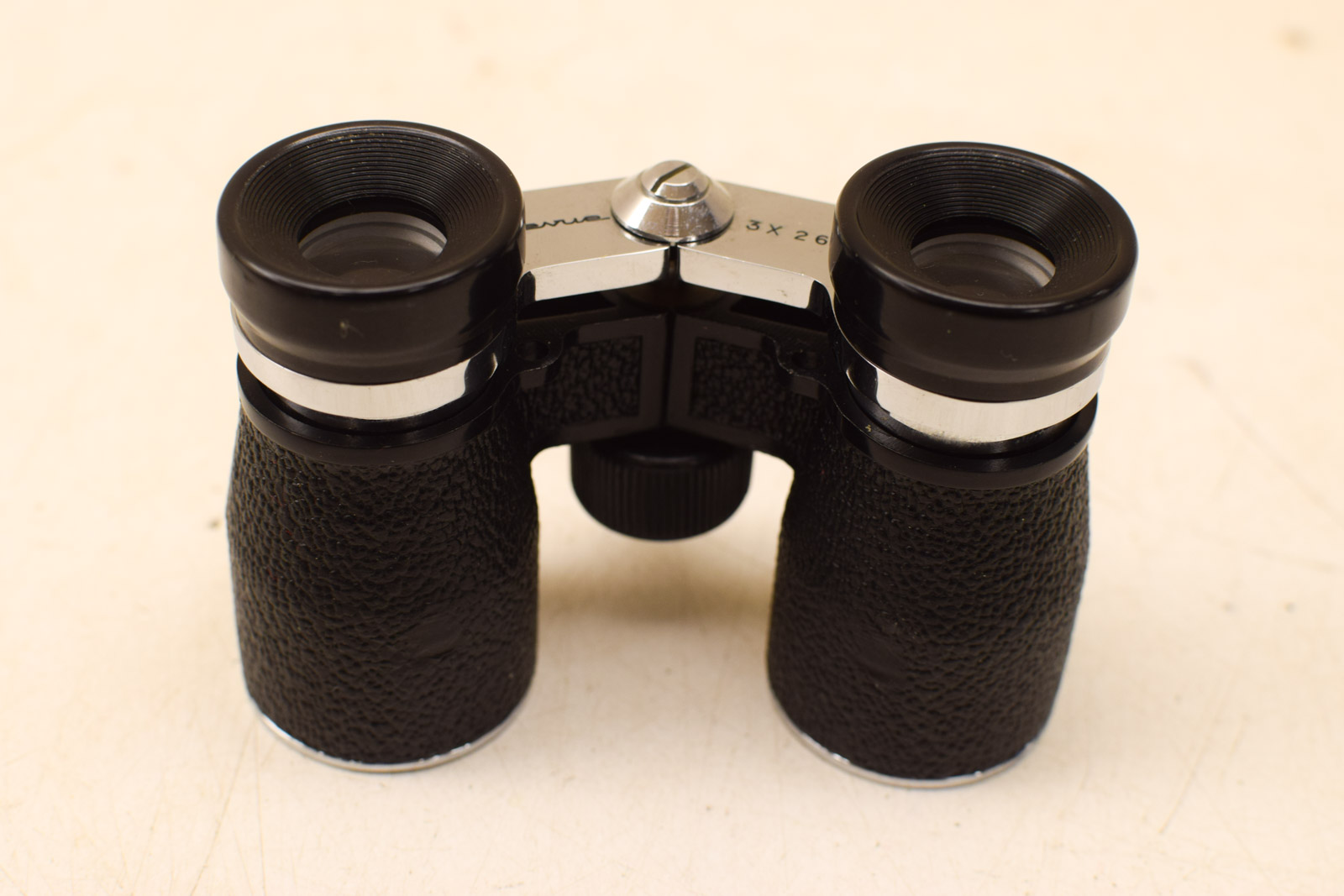 3×26 de verrekijker zit in een tasje breed 9,5 cm hoog 6 cm